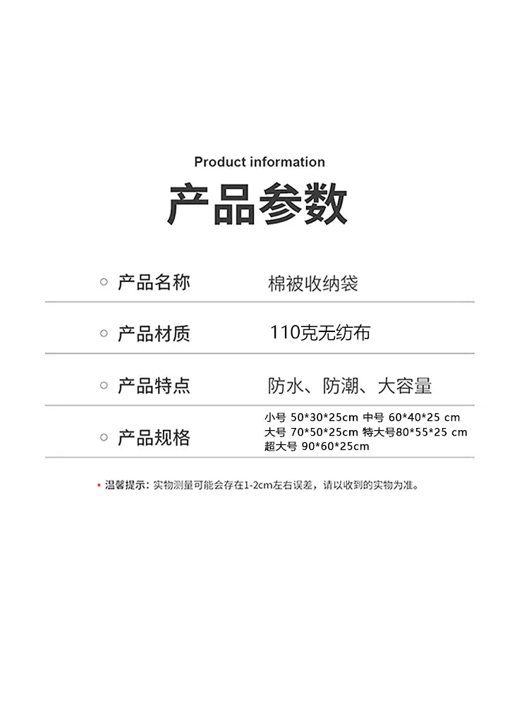 110g small size 50*30*25, 110g medium size 60*40*25, 110g large size 70*50*25, 110g Extra Large 80*55*25, 110g...