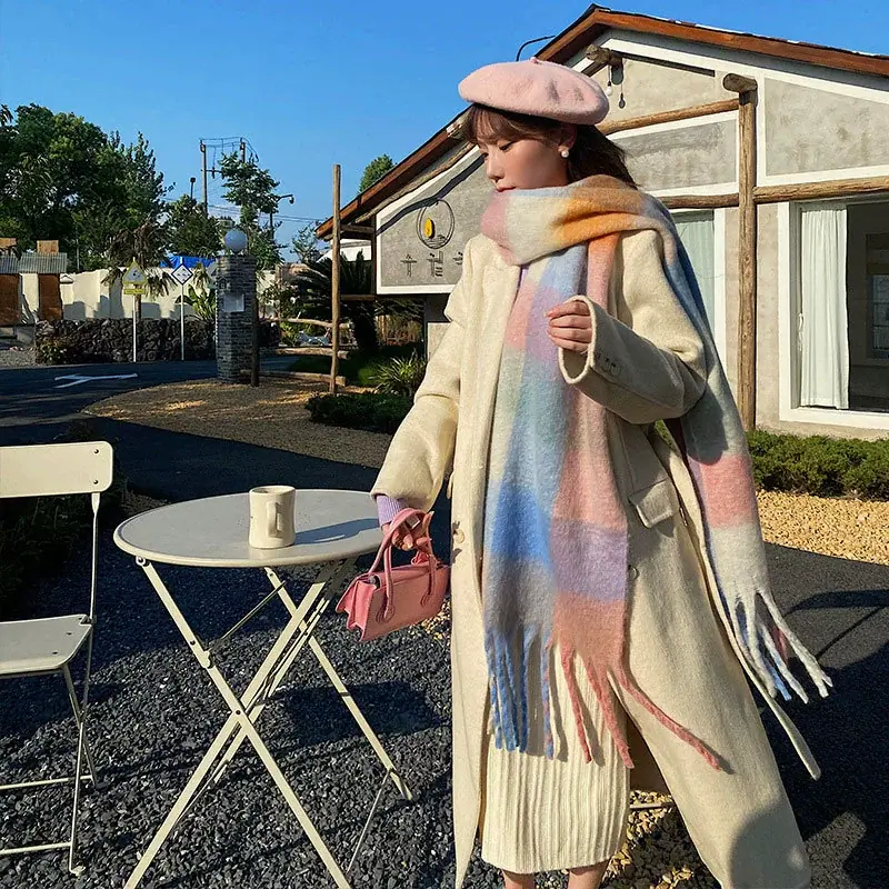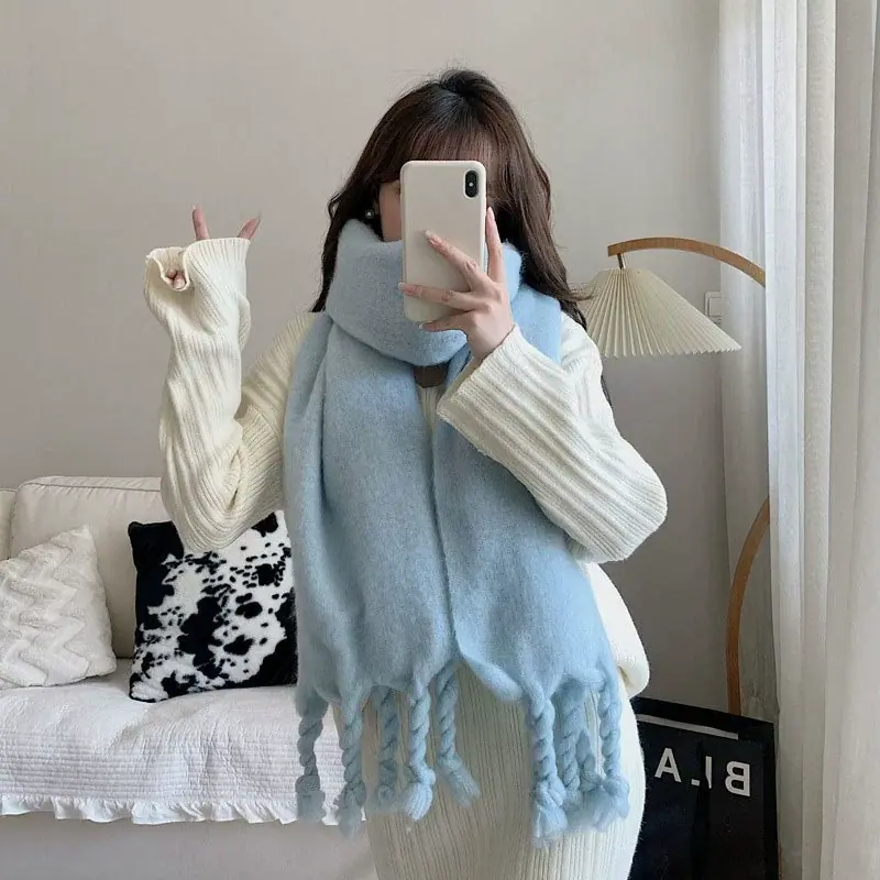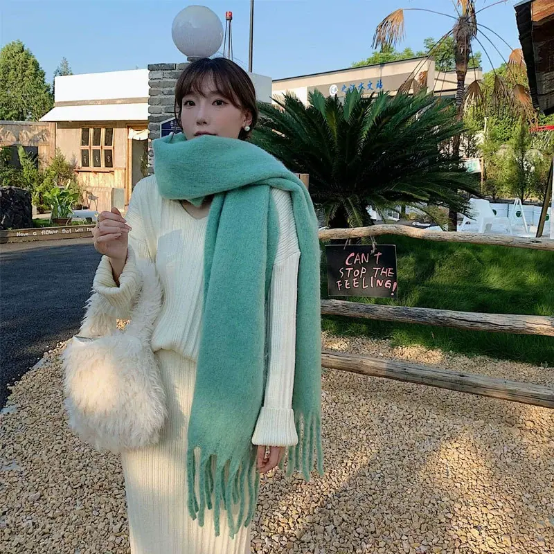 Xale grande coreano macio e glutinoso de cor sólida, estilo Zhao Liying, lenço grande de pelúcia feminino, moda, quente, macio, lenço grosso
