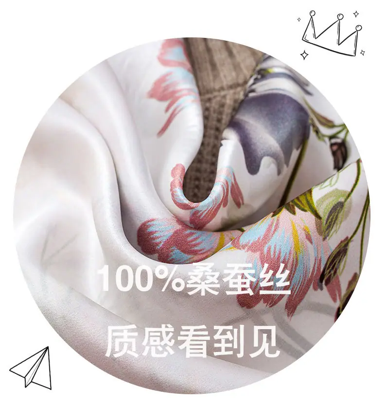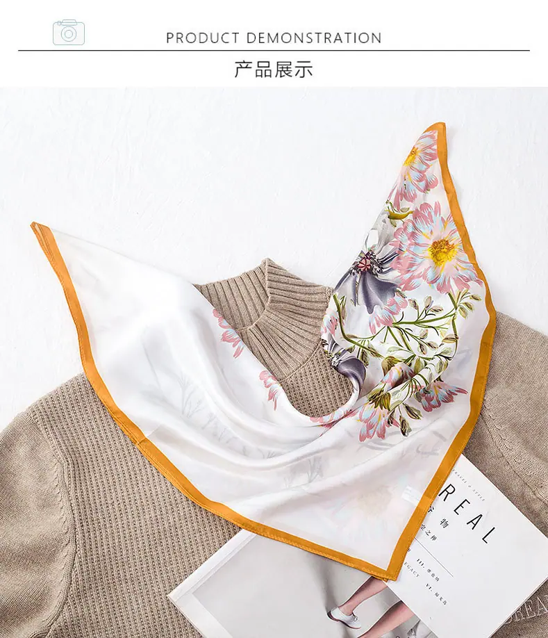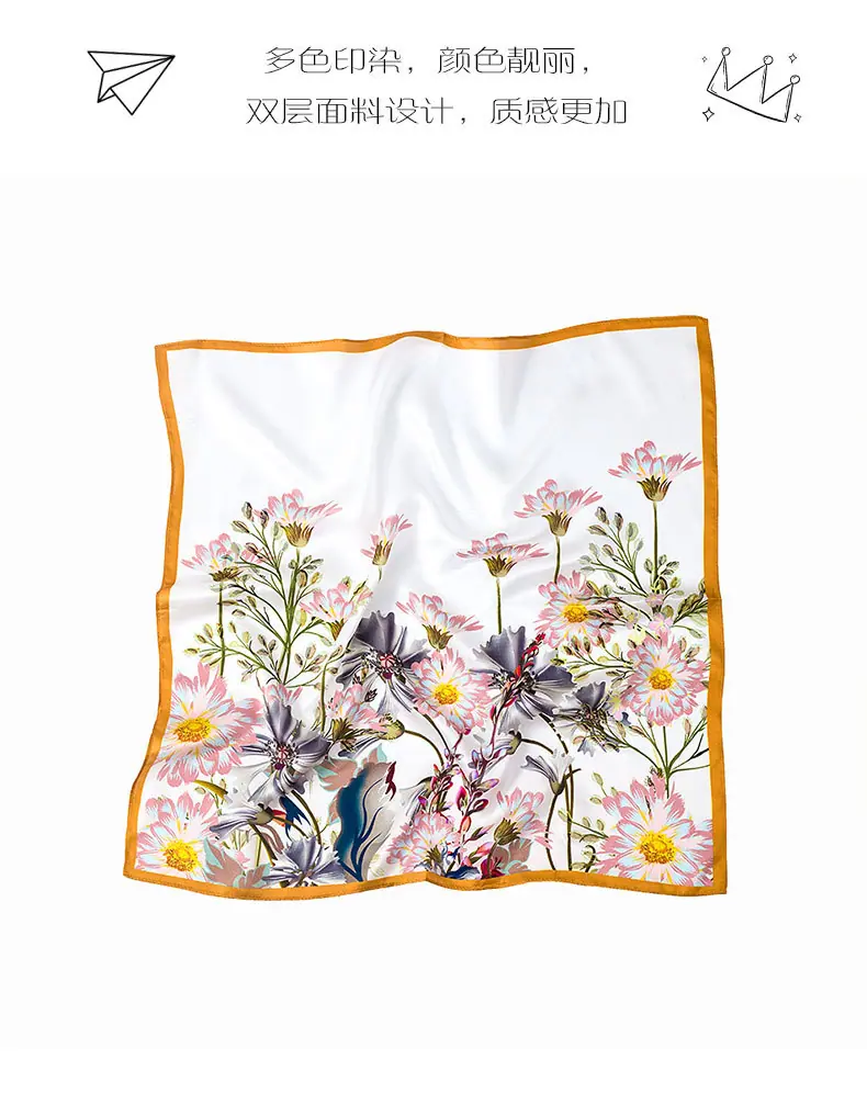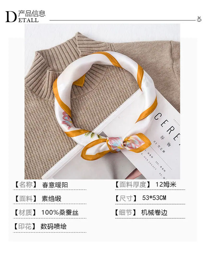 Lenço de Seda Floral Pastoral Lenço Quadrado Pequeno Feminino Seda de Amora Primavera e Outono Camisa Lenço Pequeno Coreano Gravata Bolsa