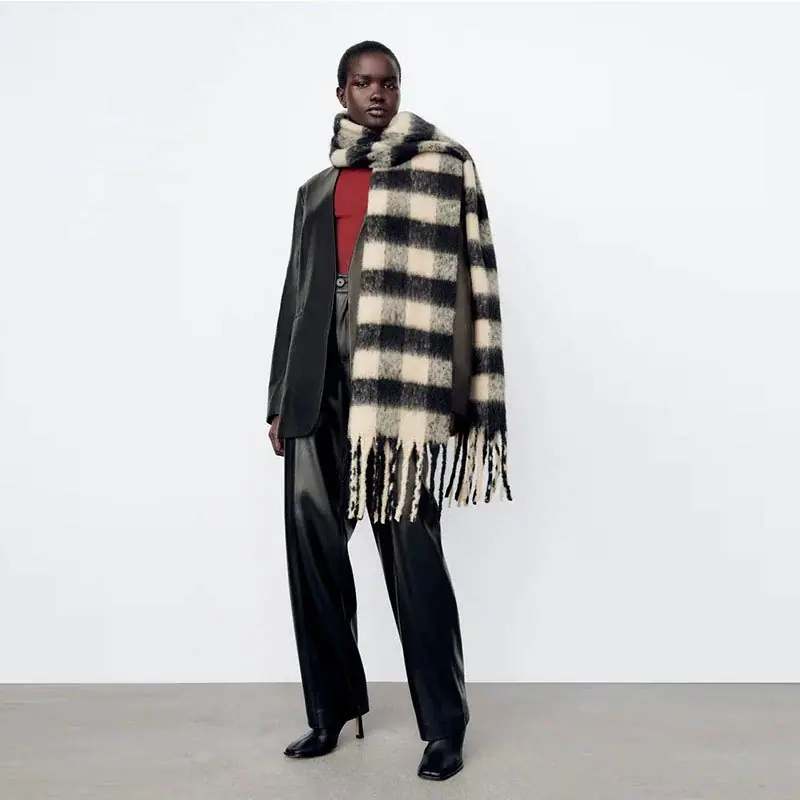 Cachecol xadrez clássico preto e branco Z casa cachecol macio fino inverno quente feminino xale longo de pescoço de uso duplo