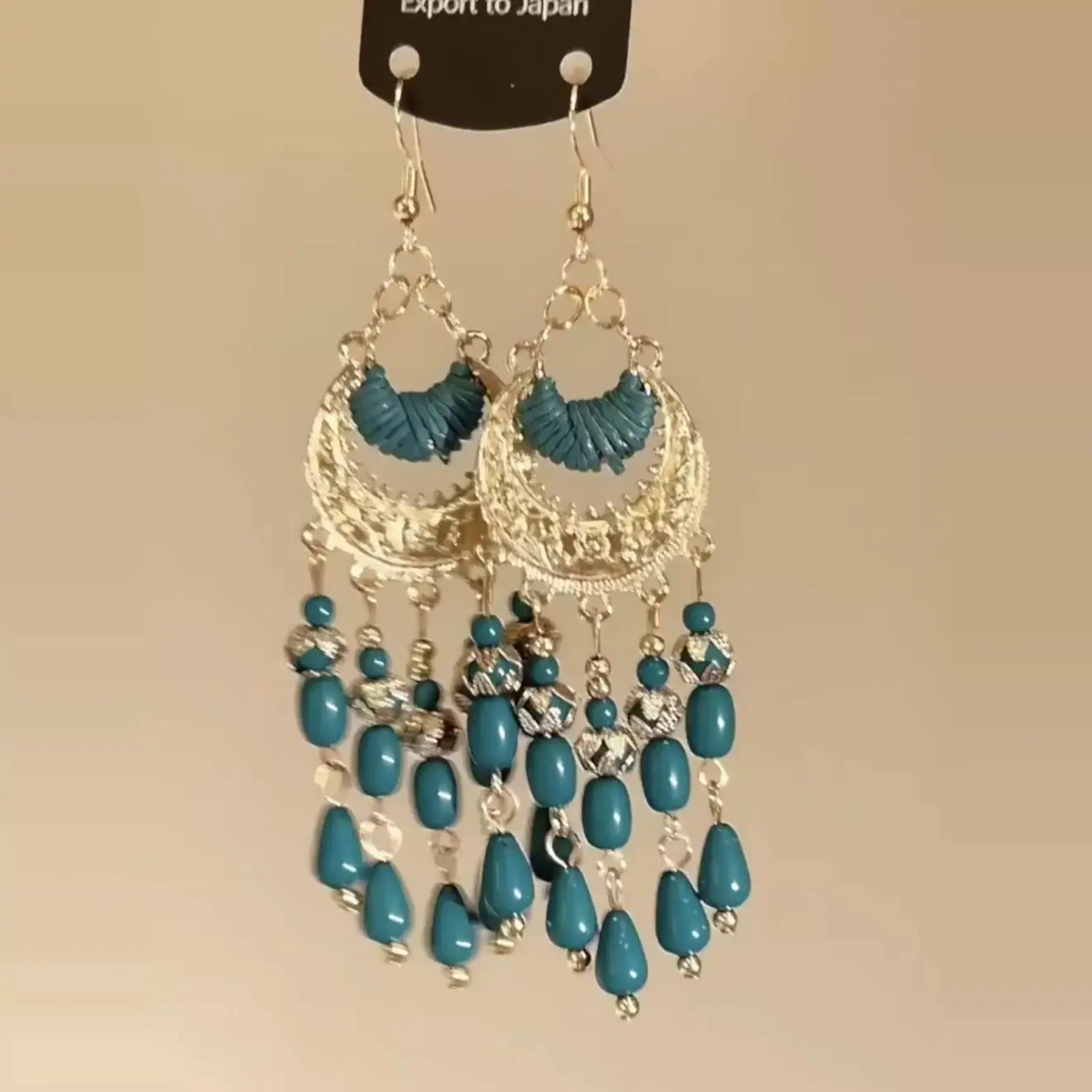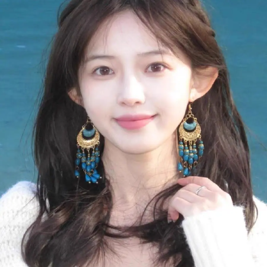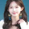 Brincos Étnicos Retrô Azul com Contas e Borlas Design de Nicho para Mulheres Férias em Yunnan Brincos de Pino Brincos Boêmios