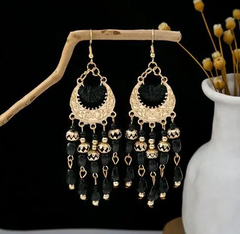 Bohemian Miyuki Seed Bead Tassel Ear Hooks - Black