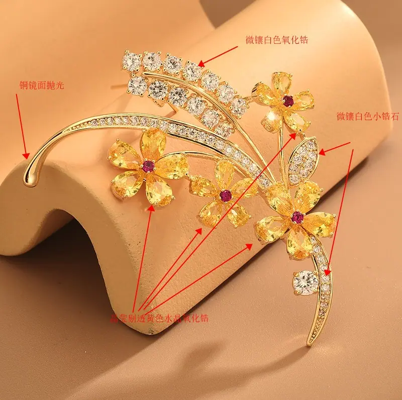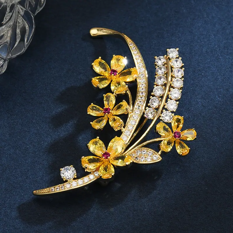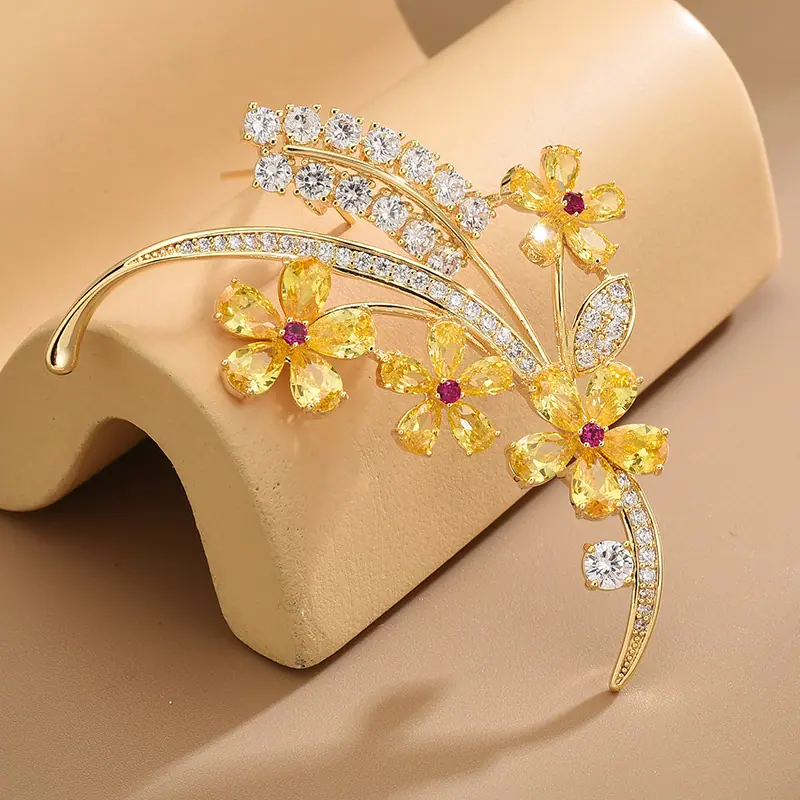 Broche nicho de alta qualidade flor zircônia colorida elegante flor corsage roupa feminina high-end acessórios de casaco criativos