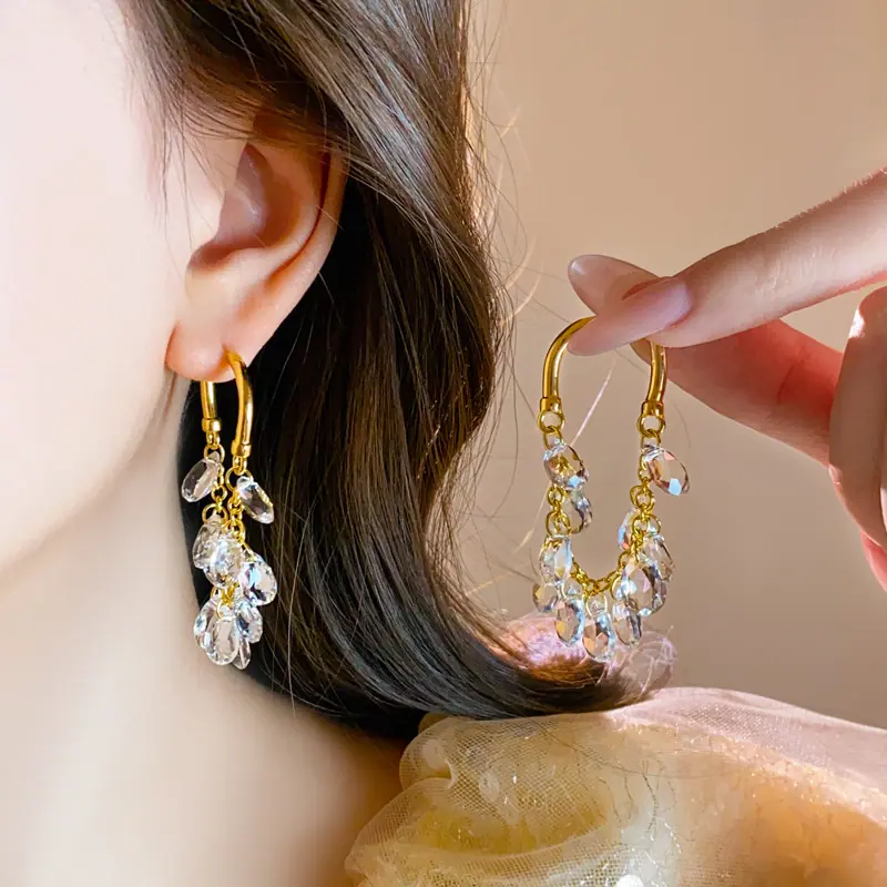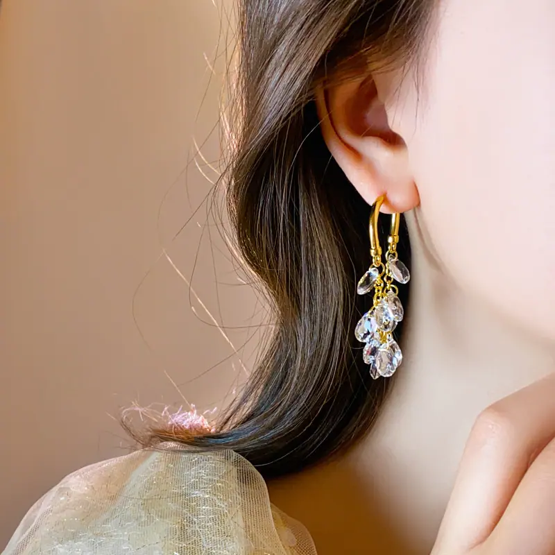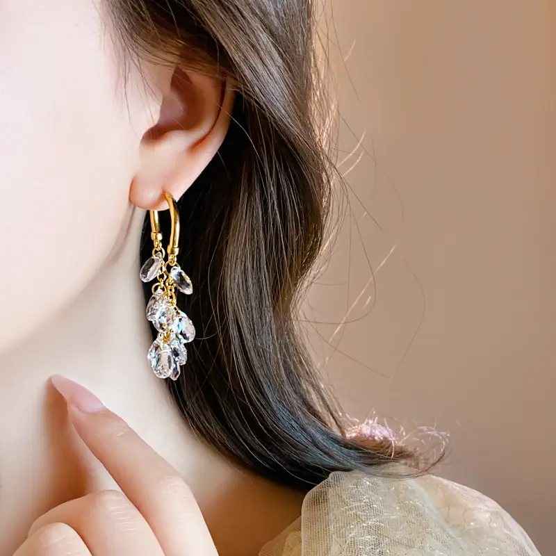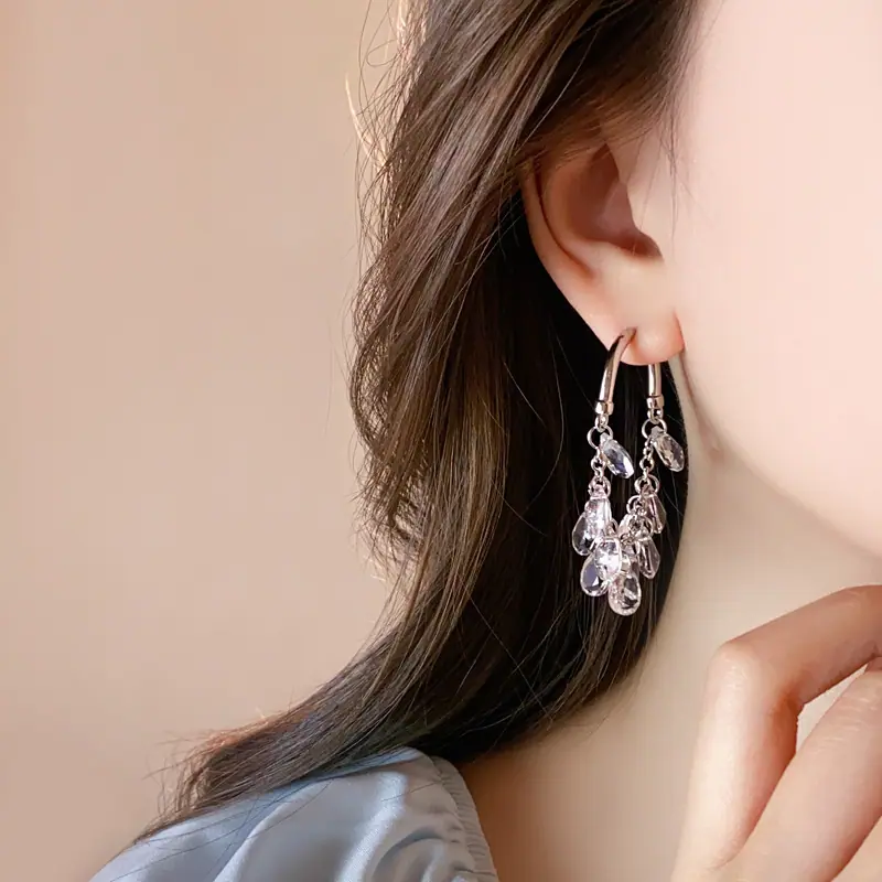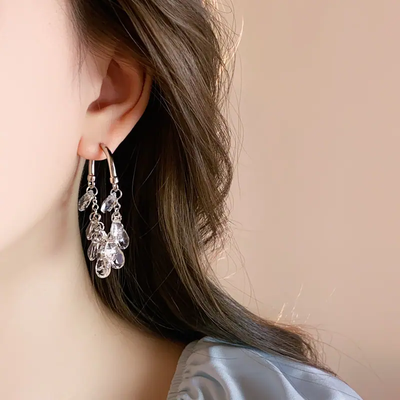 Brincos Longos de Borla de Cristal Temperamento Influenciador Moda Brincos de Pino Cacho de Uva Nicho Moda Única Brincos Estilo Frio