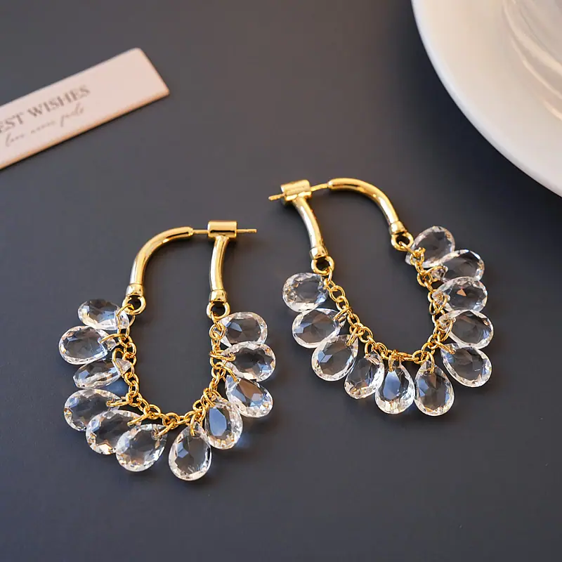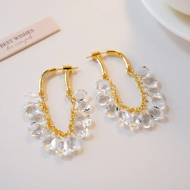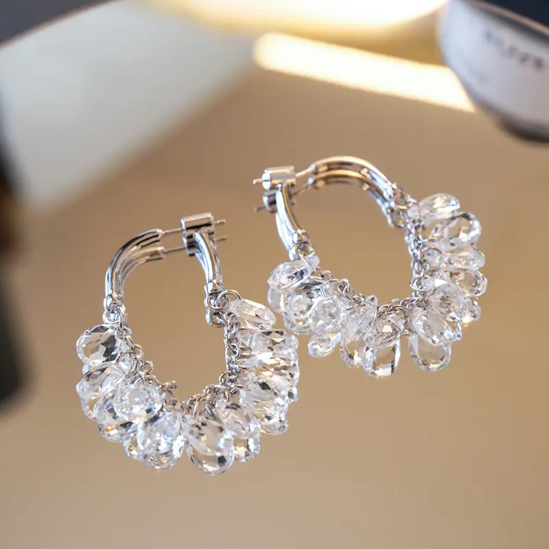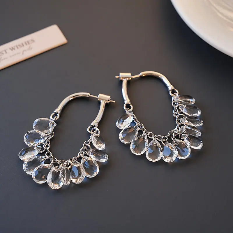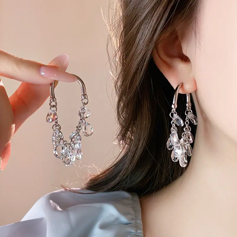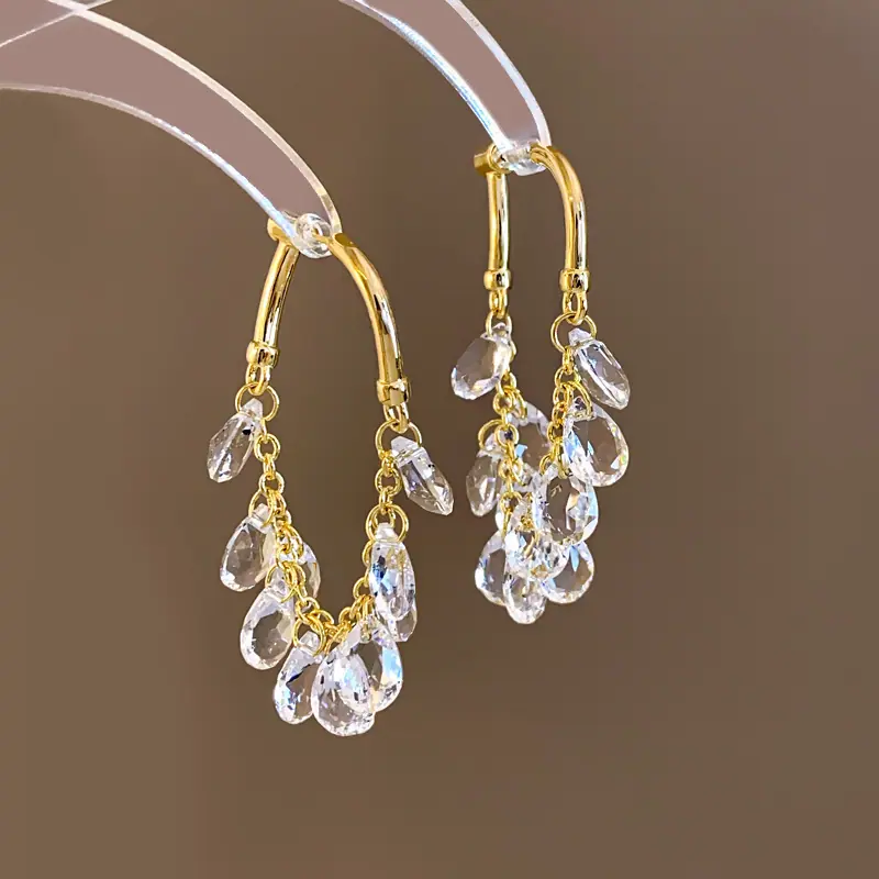 Brincos Longos de Borla de Cristal Temperamento Influenciador Moda Brincos de Pino Cacho de Uva Nicho Moda Única Brincos Estilo Frio