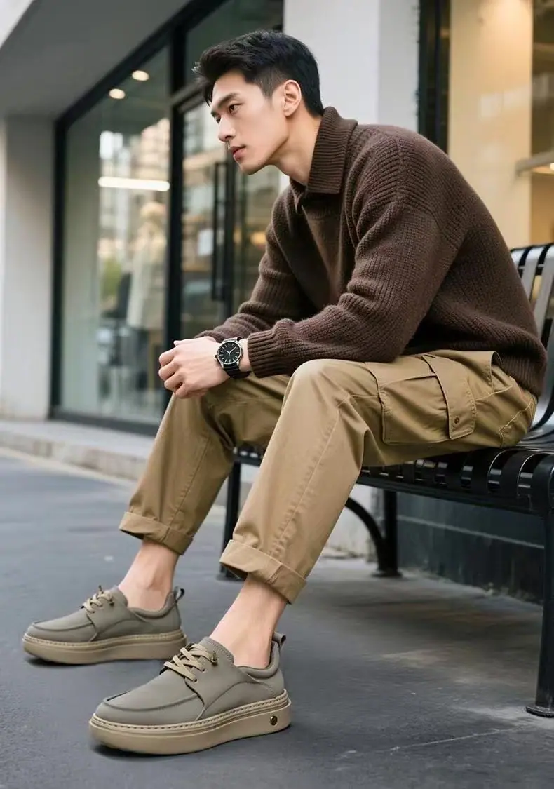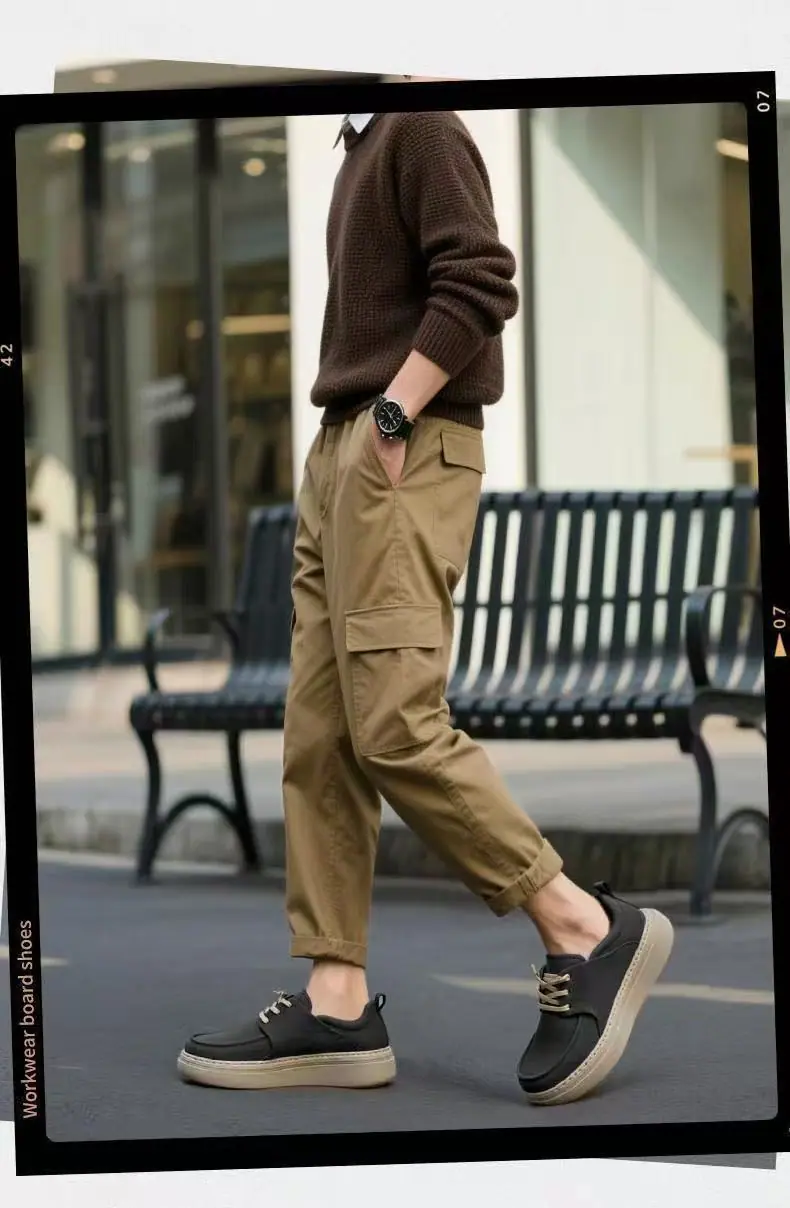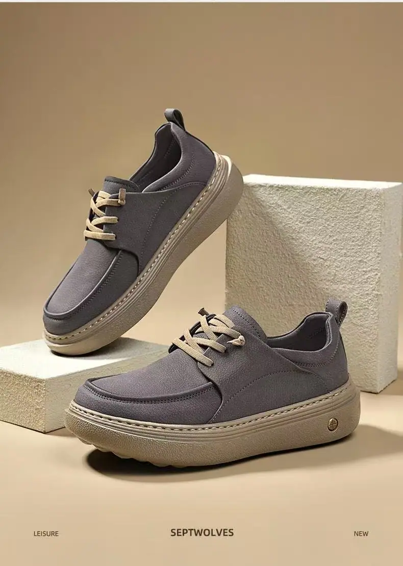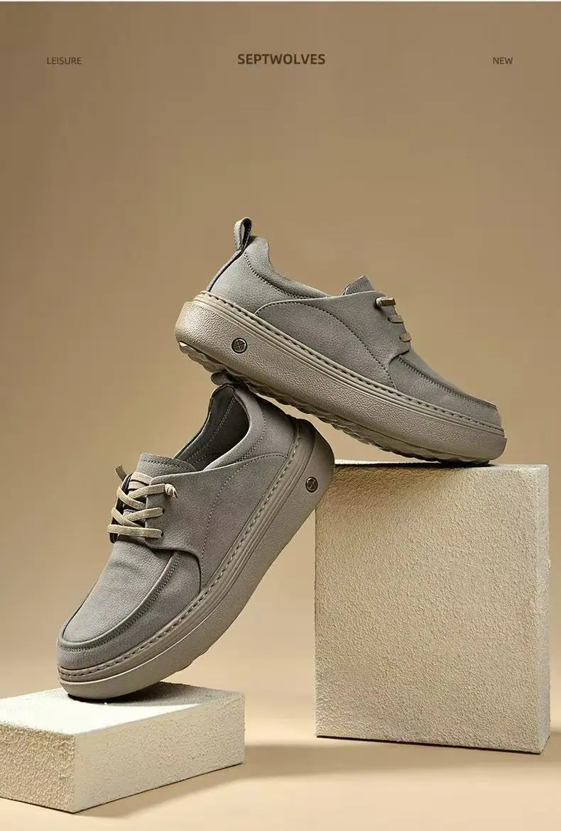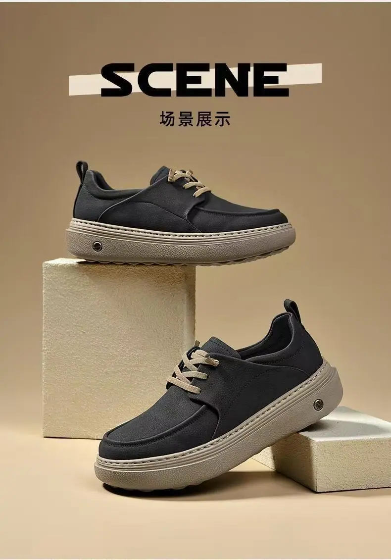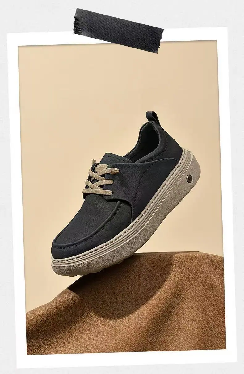 Sapatos de Couro Macio Pequeno Masculino Outono 2025 Novo Moderno Casual Sapatos de Couro Versátil Retrô Simples Sola Grossa Tênis para Negócios