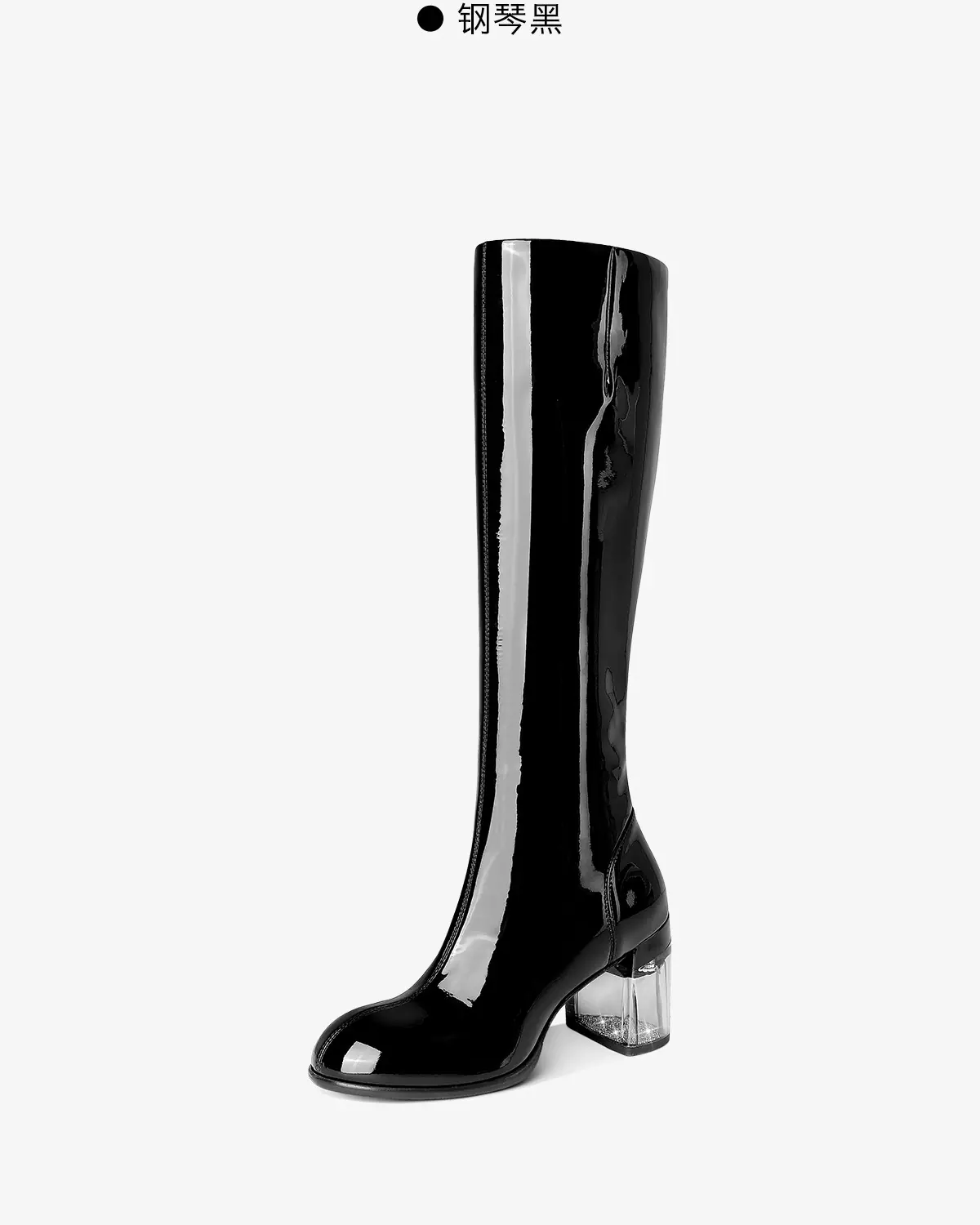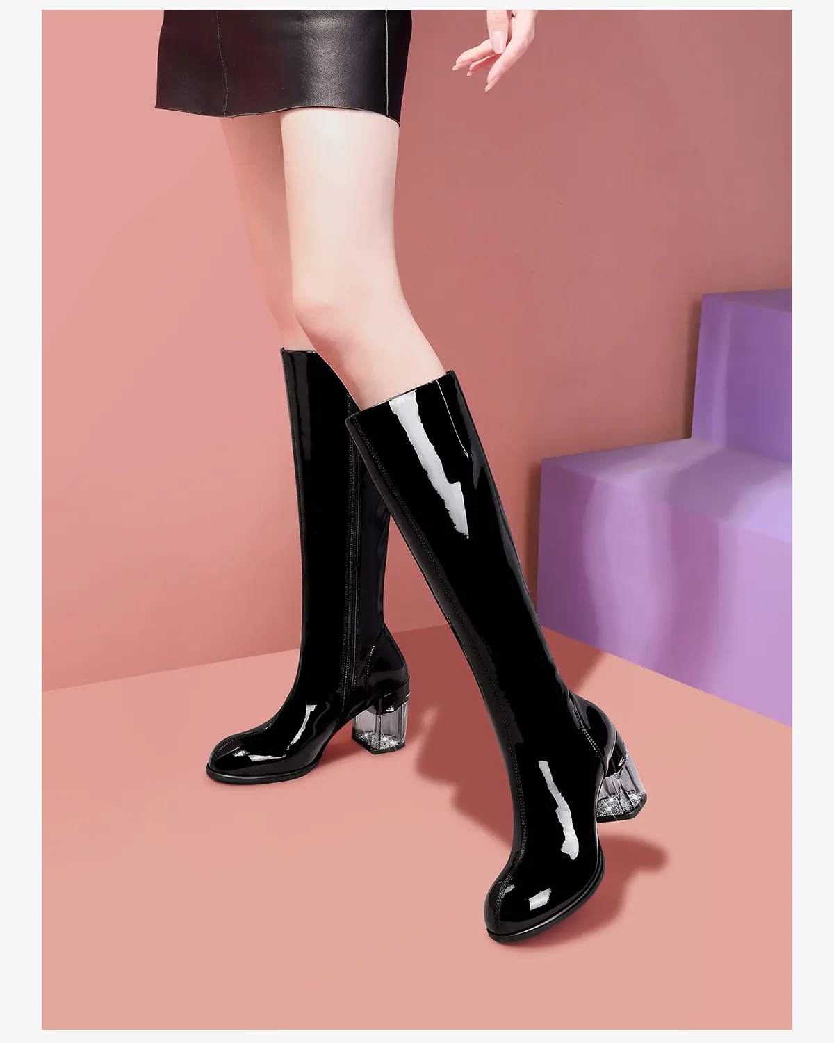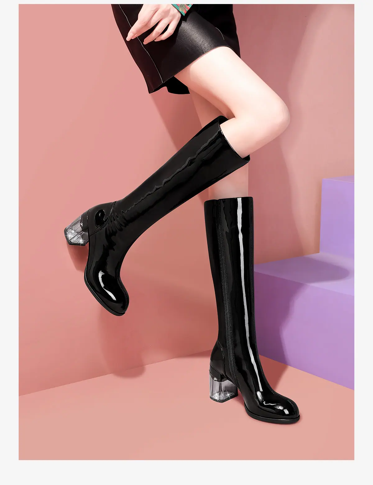 Compre Inverno 2025 Novo Europeu e Americano Transfronteiriço Comércio Exterior Tamanho Grande Zíper Lateral Brilhante Salto Grosso Cano Alto Moda Botas de Cavaleiro Atacado no atacado no Joom.pro