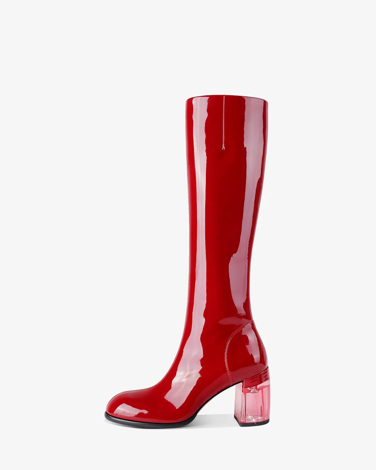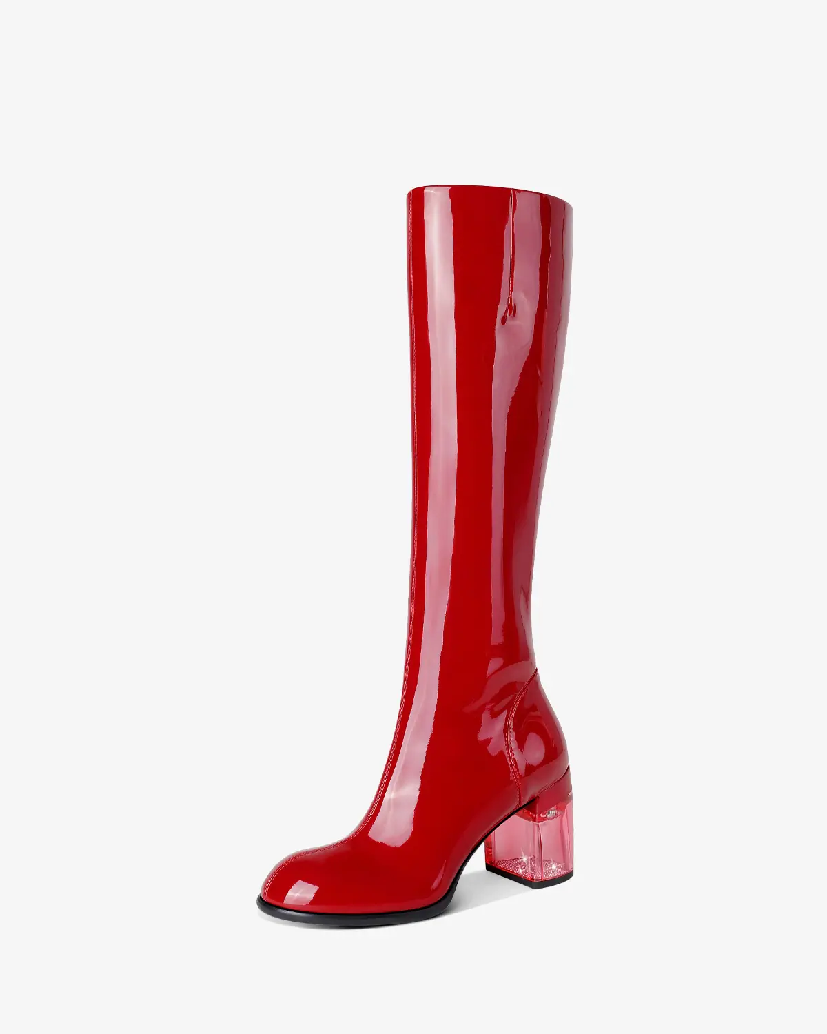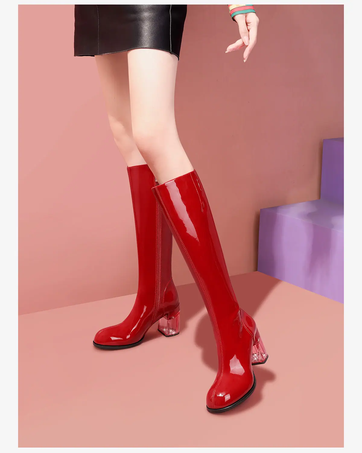 Compre Inverno 2025 Novo Europeu e Americano Transfronteiriço Comércio Exterior Tamanho Grande Zíper Lateral Brilhante Salto Grosso Cano Alto Moda Botas de Cavaleiro Atacado no atacado no Joom.pro