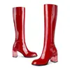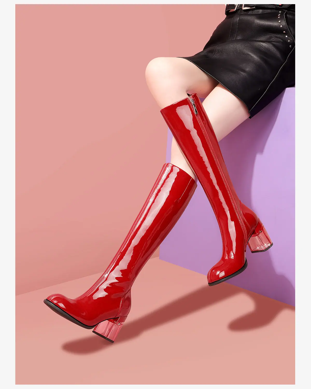 Inverno 2025 Novo Europeu e Americano Transfronteiriço Comércio Exterior Tamanho Grande Zíper Lateral Brilhante Salto Grosso Cano Alto Moda Botas de Cavaleiro Atacado