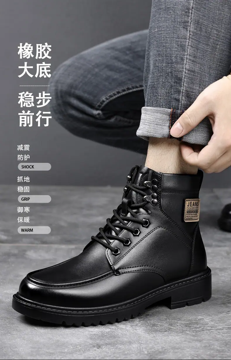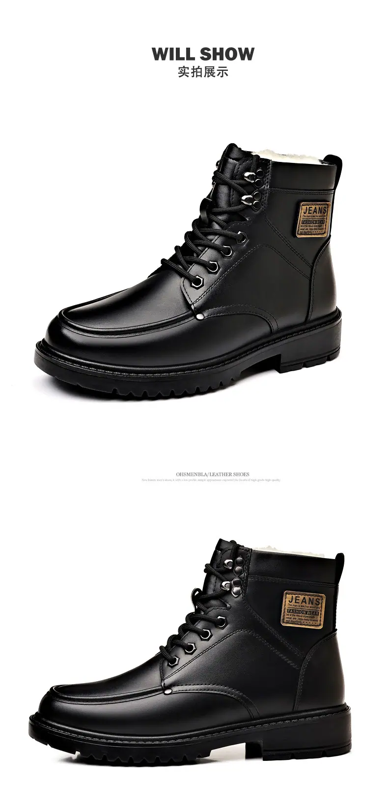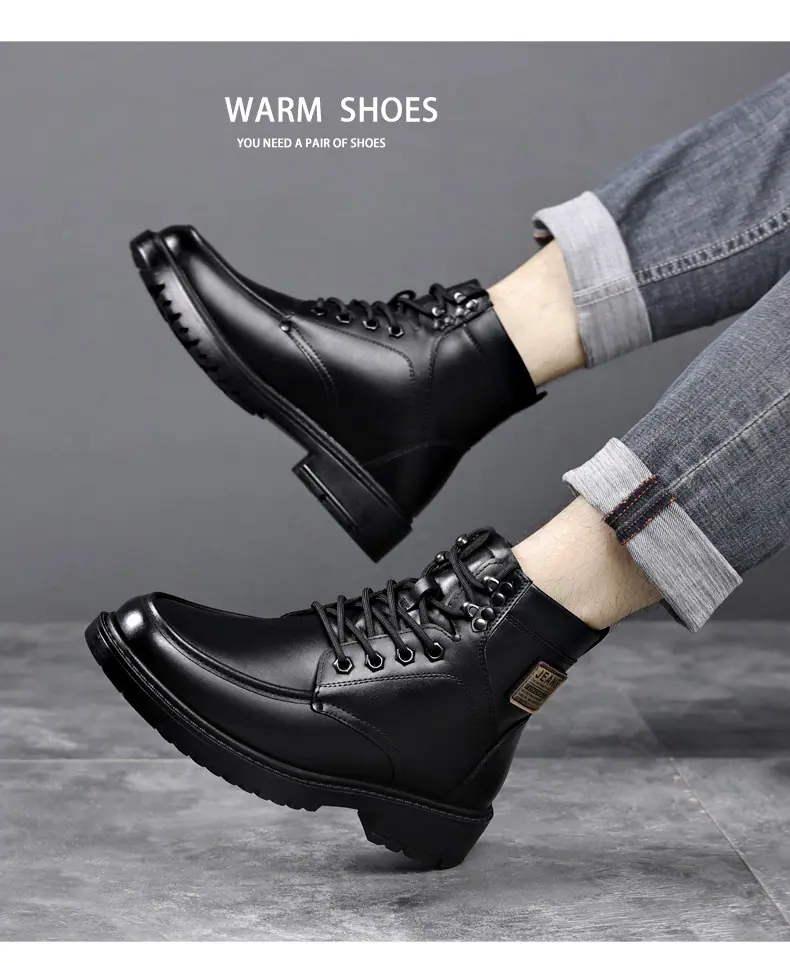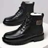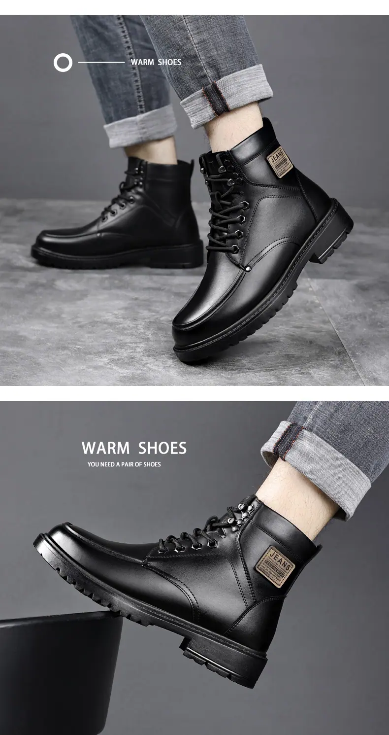 Botas de Algodão 2025 Inverno Novo Masculino Mais Veludo Quente Sapatos de Algodão Masculino Outdoor Casual Sapatos de Couro Tendência Cano Alto Botas Martin