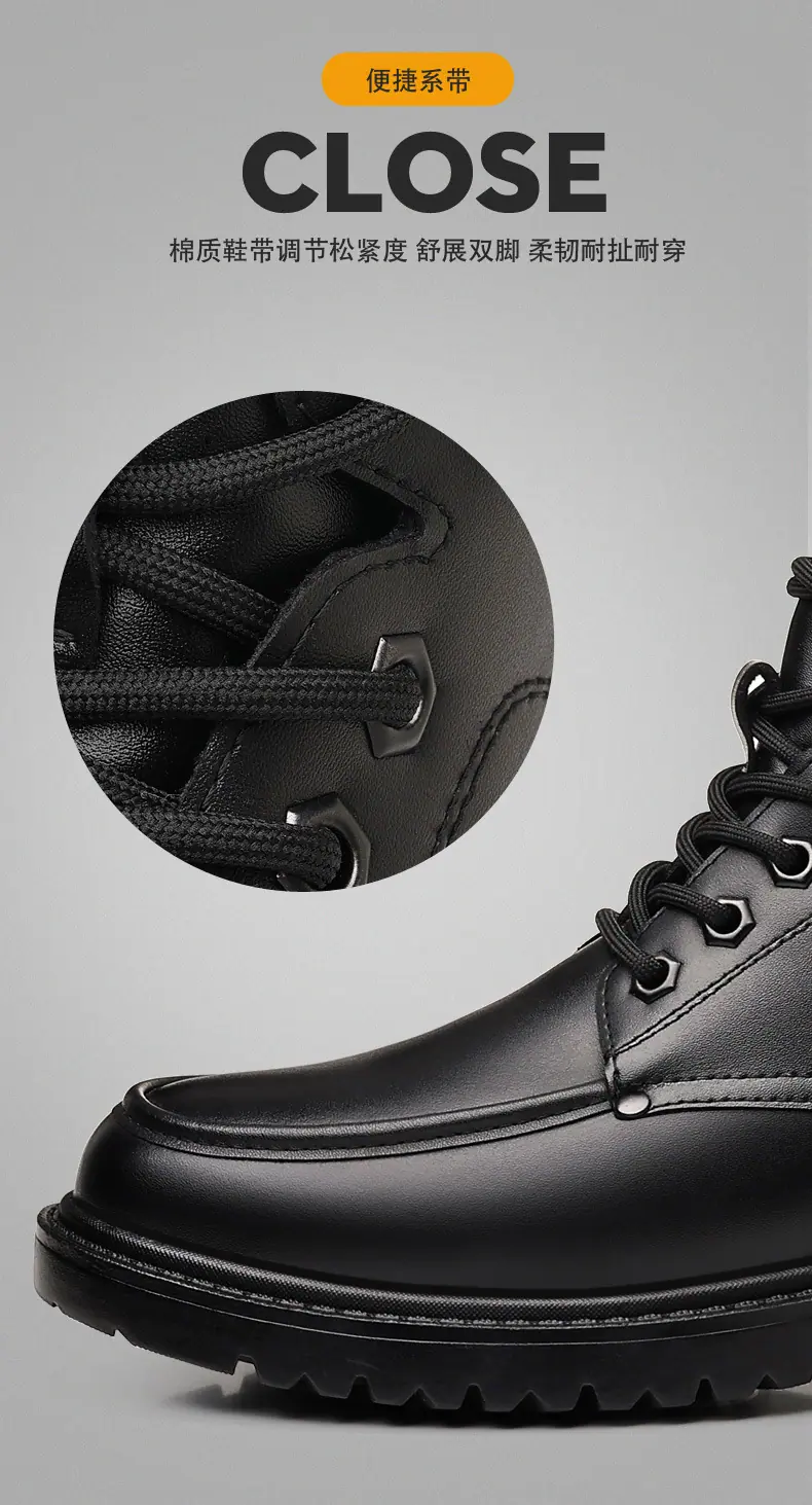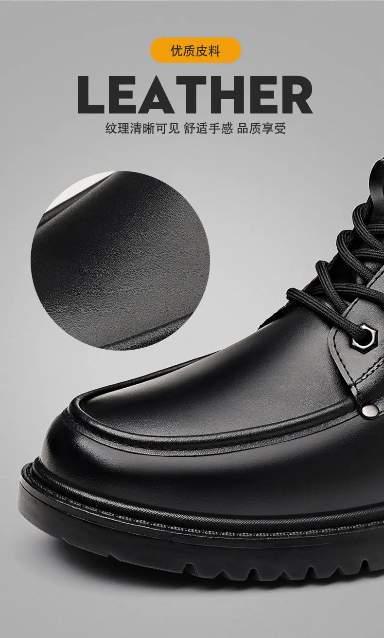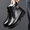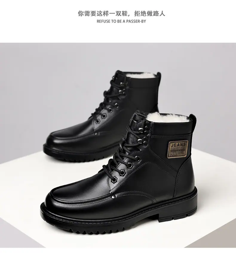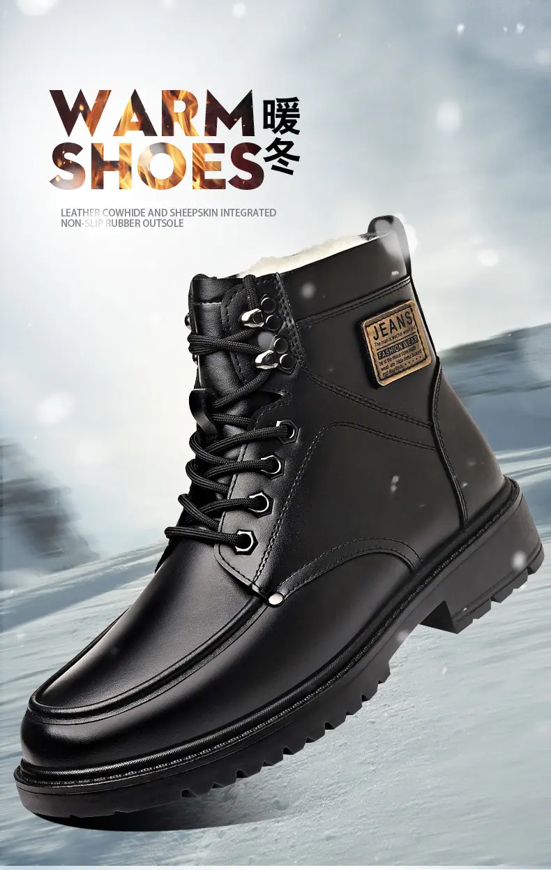 Botas de Algodão 2025 Inverno Novo Masculino Mais Veludo Quente Sapatos de Algodão Masculino Outdoor Casual Sapatos de Couro Tendência Cano Alto Botas Martin
