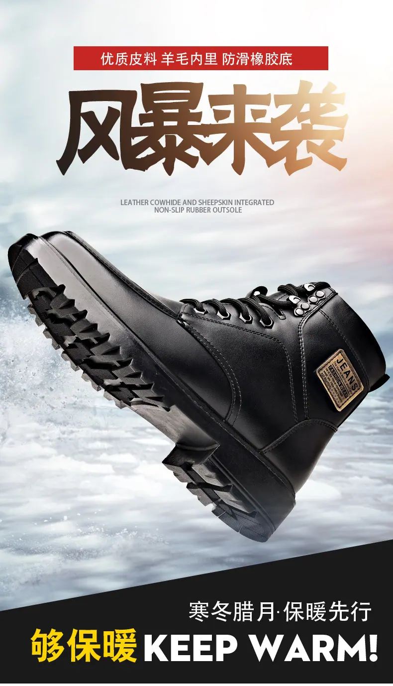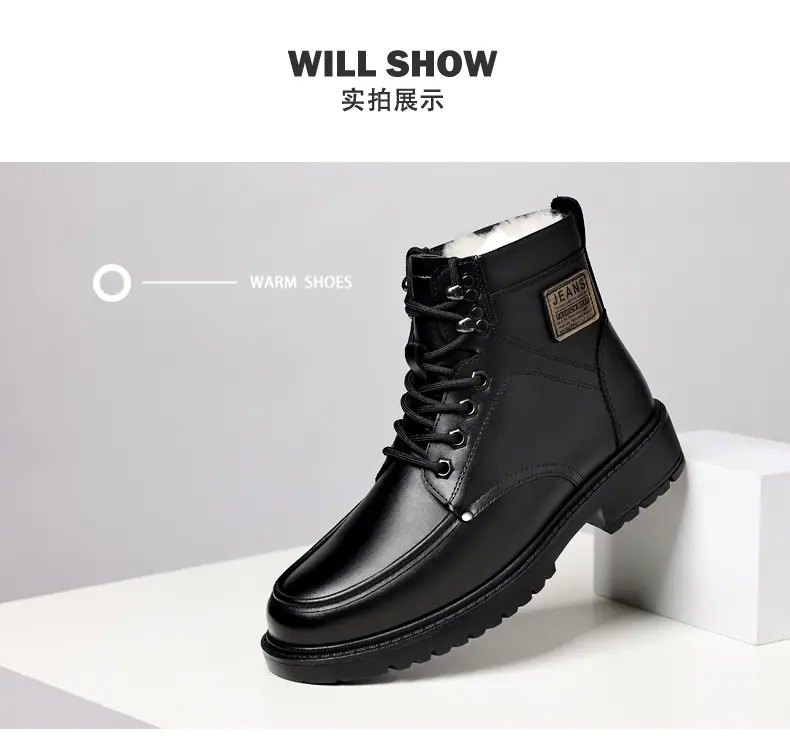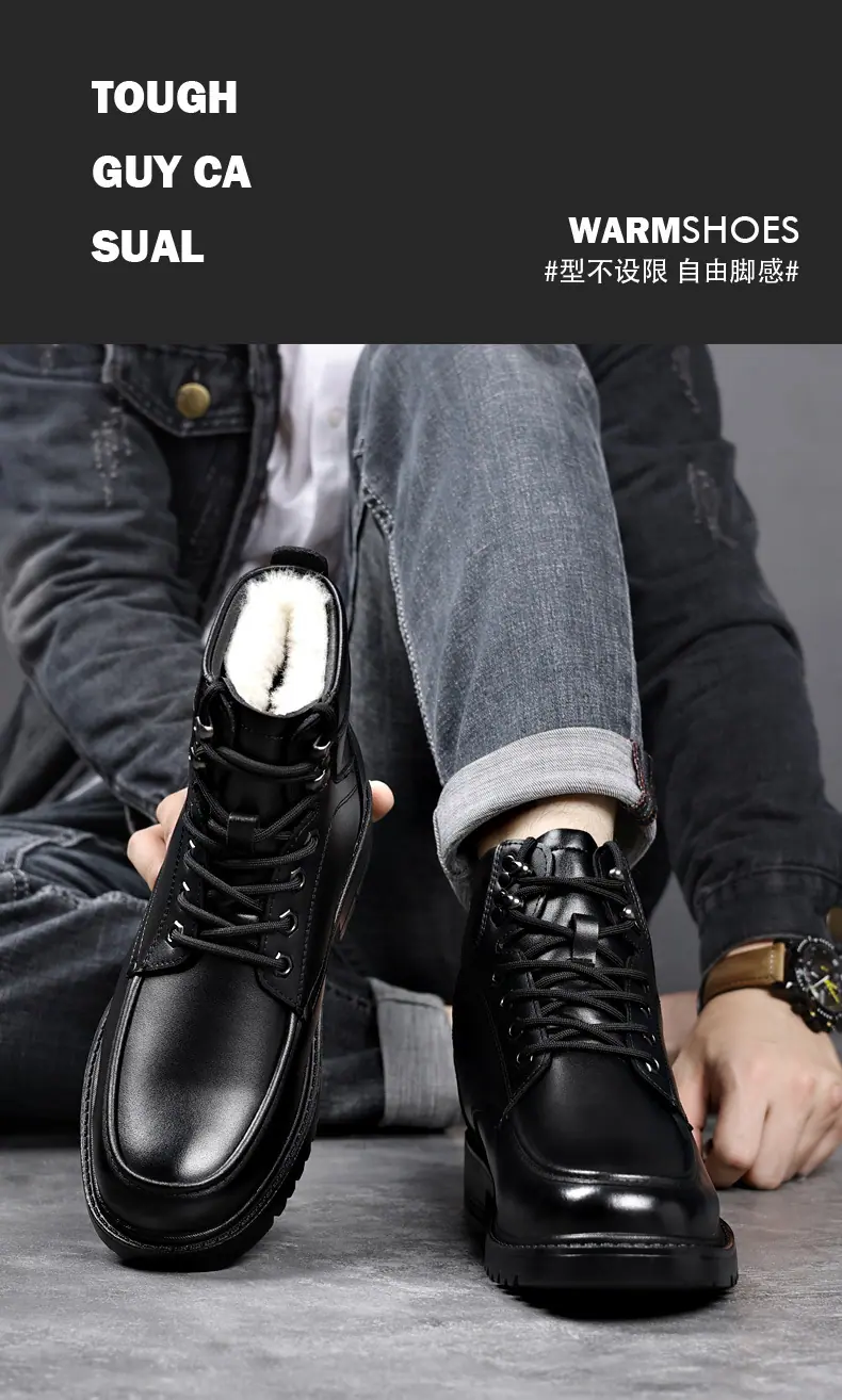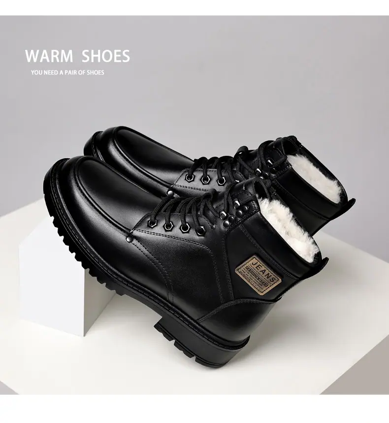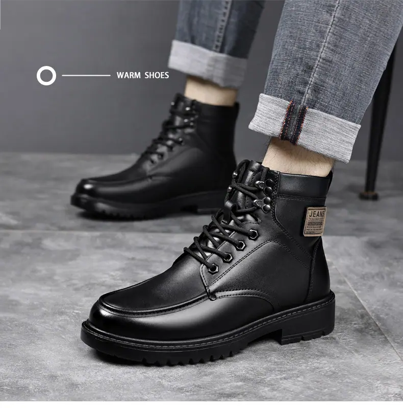 Compre Botas de Algodão 2025 Inverno Novo Masculino Mais Veludo Quente Sapatos de Algodão Masculino Outdoor Casual Sapatos de Couro Tendência Cano Alto Botas Martin no atacado no Joom.pro