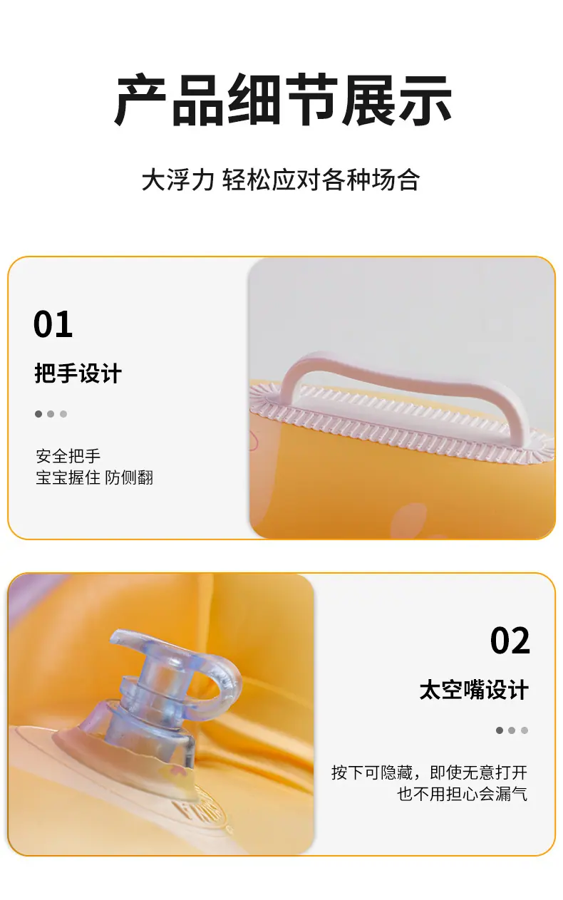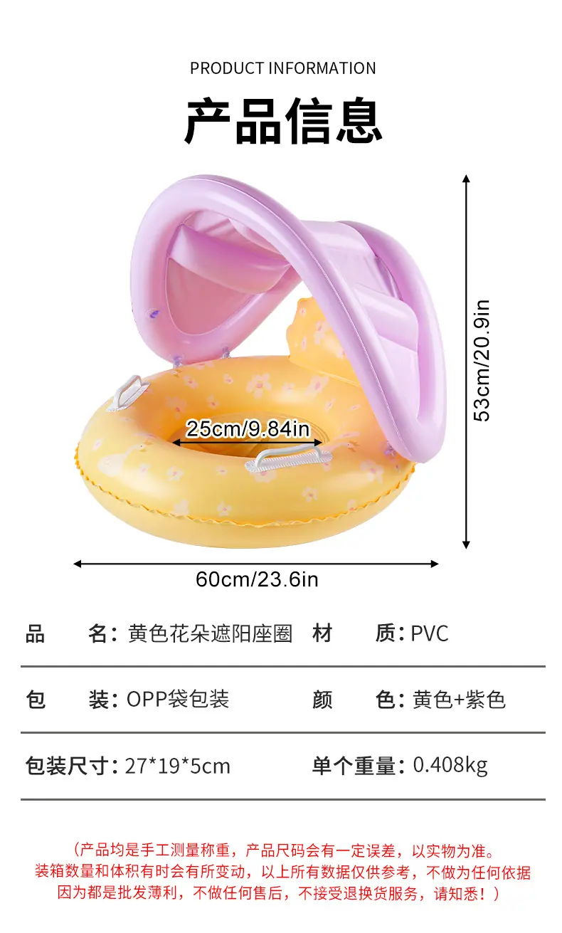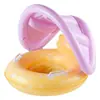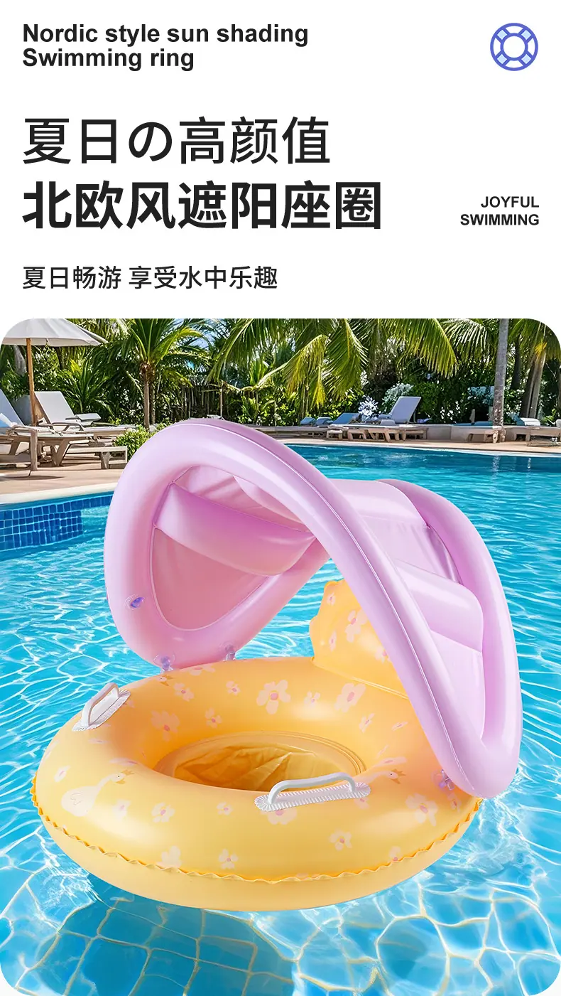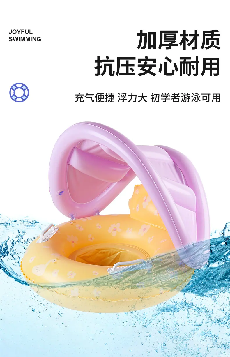Novo Assento Infantil Amarelo com Estampa de Flor e Proteção Solar com Alça e Encosto Confiável Assento Inflável para Água para Bebê Atacado