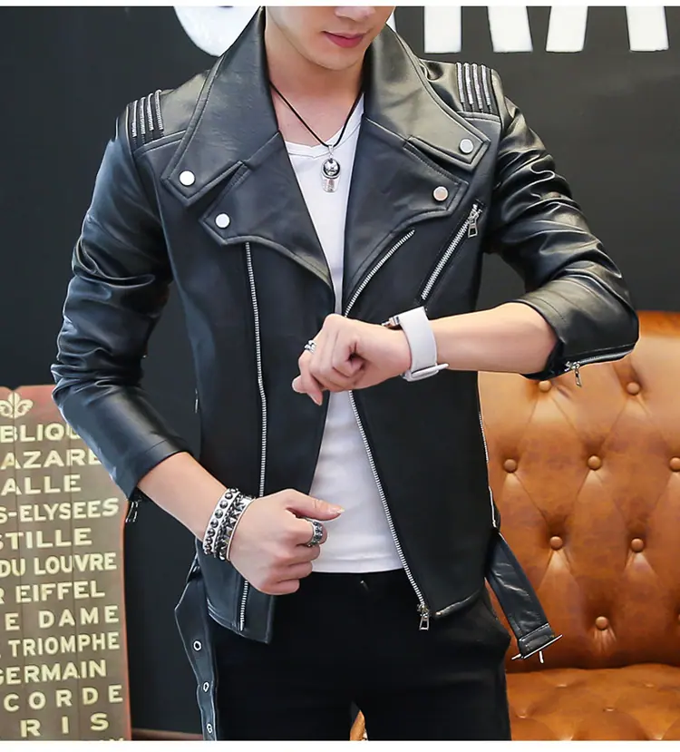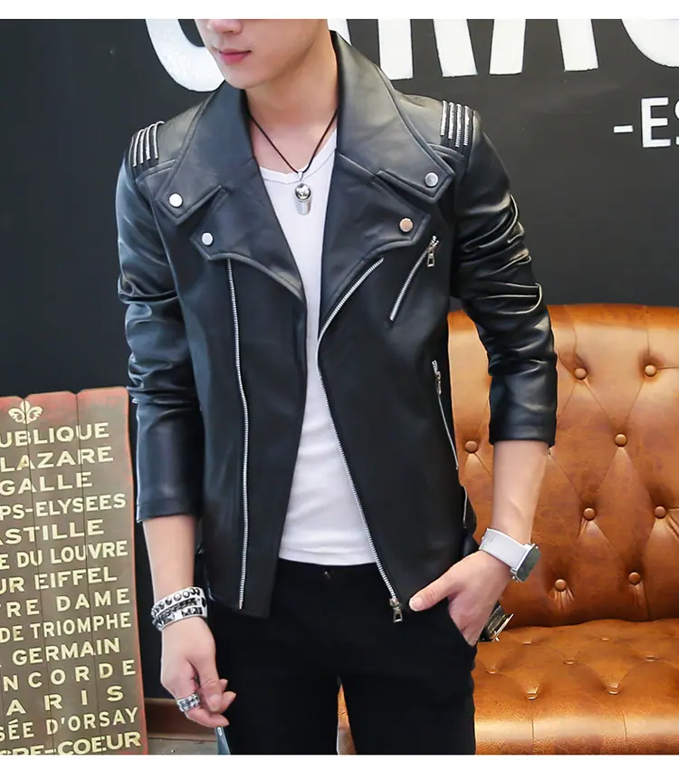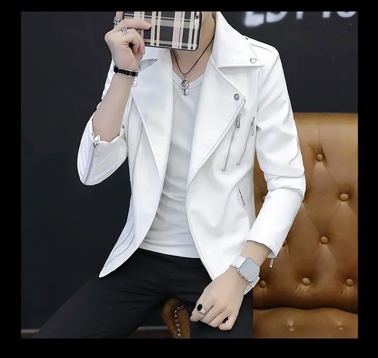 Roupas Masculinas Novas Jaqueta de Couro Casual Masculina Juvenil Personalizada Curta Couro PU Jaqueta de Couro da Moda Masculina Top