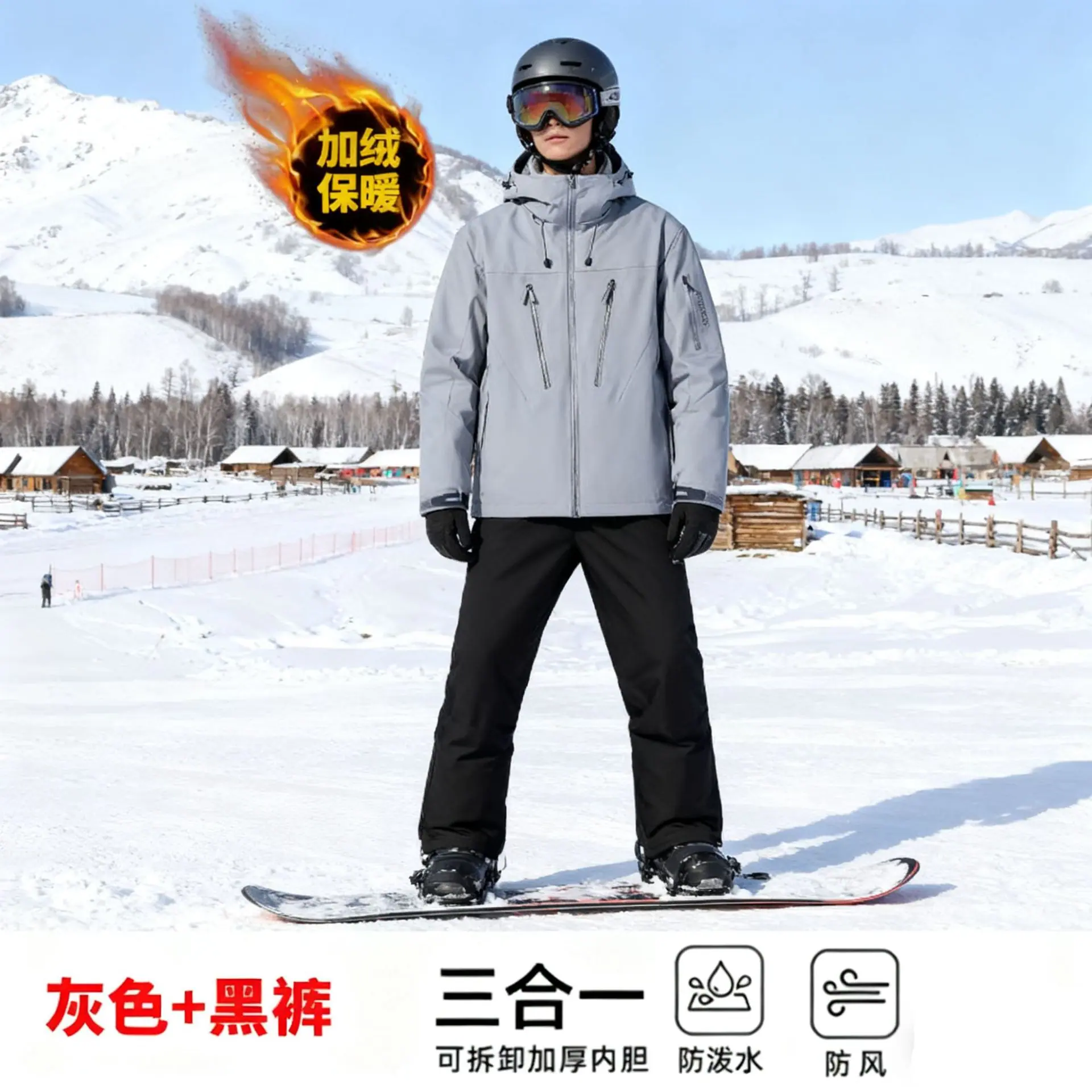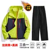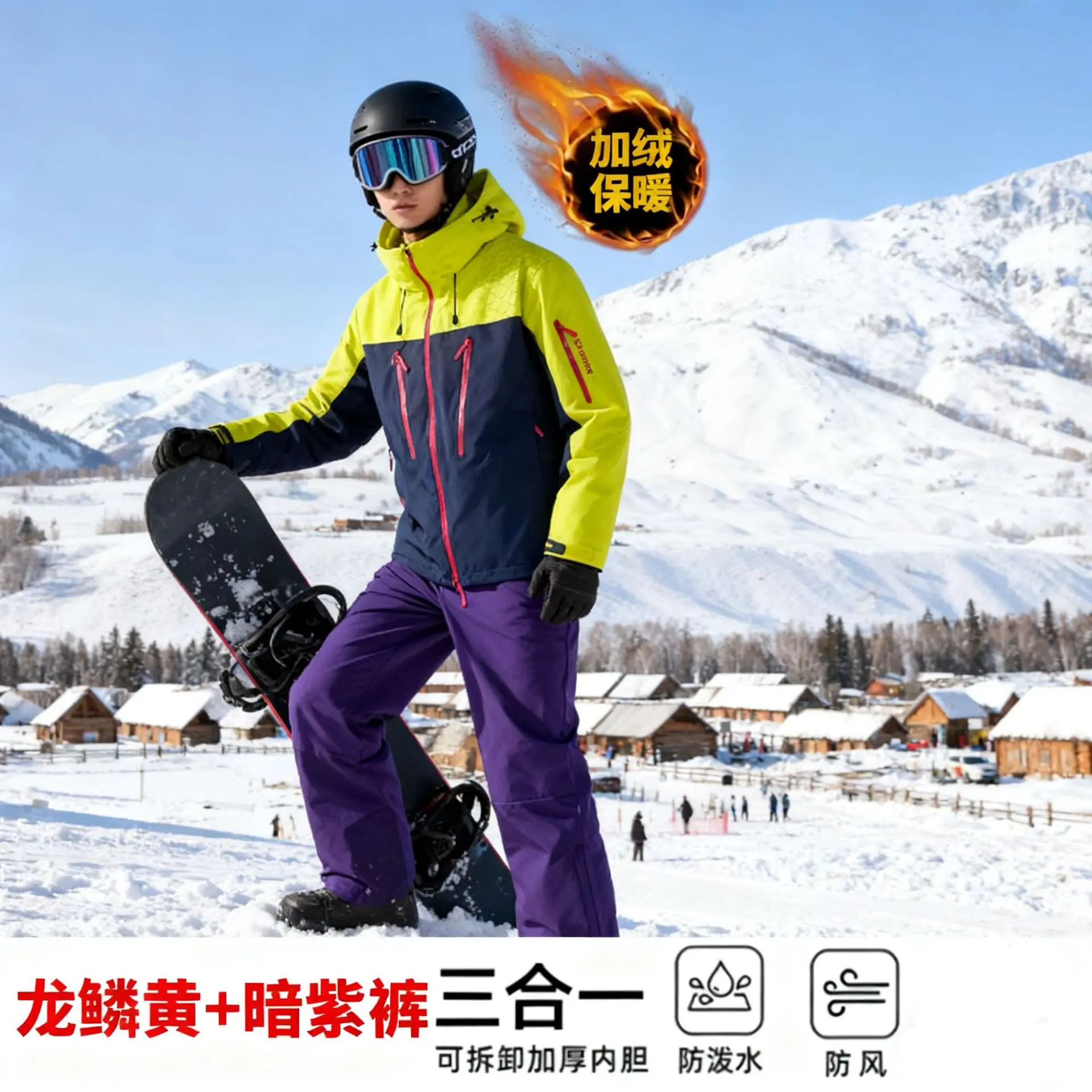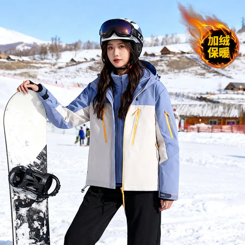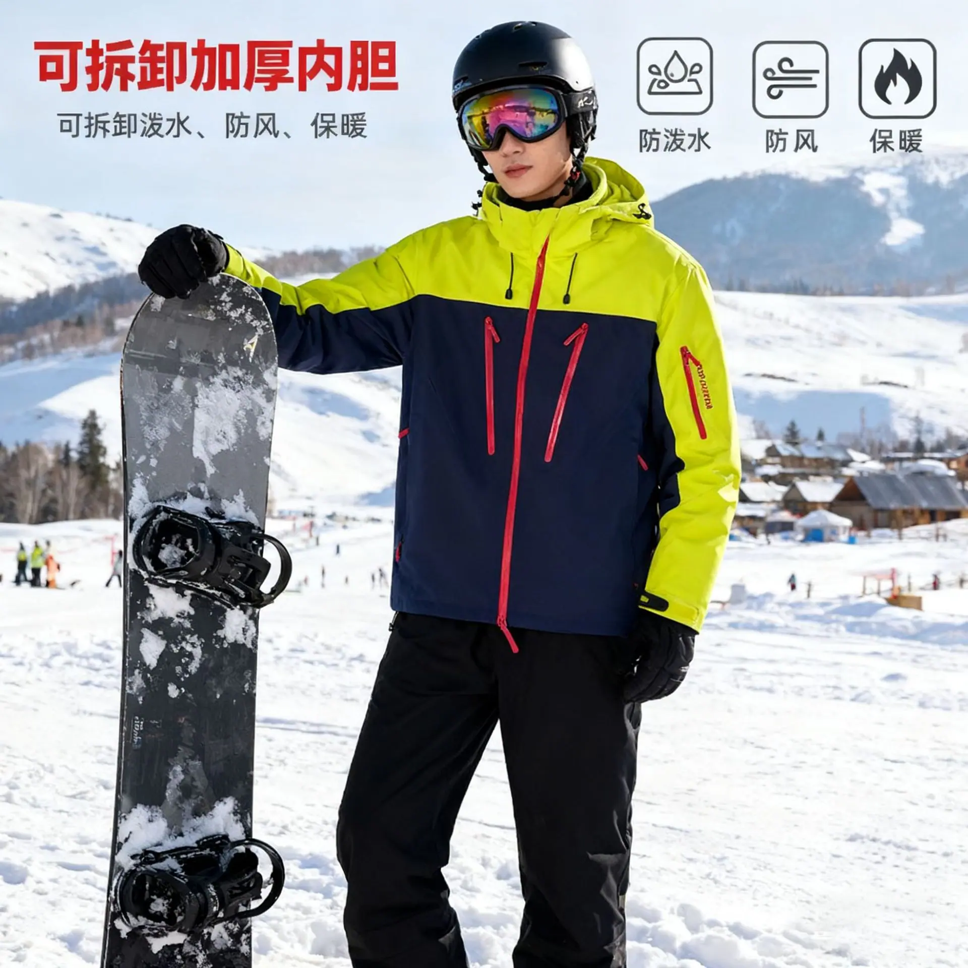Conjunto de Roupa de Esqui Colorblock Corta-vento Impermeável Alternativo de Marca da Moda Masculino Feminino 3 em 1 Jaqueta Tempestade Camada Interna Roupa de Neve Calça de Neve