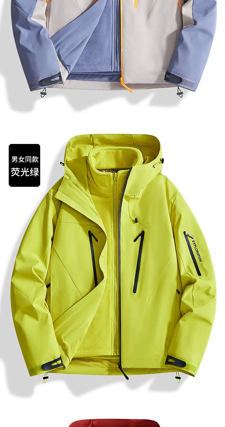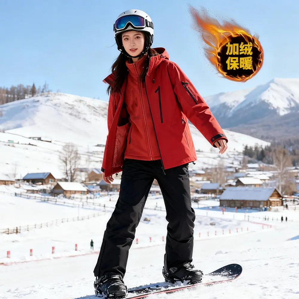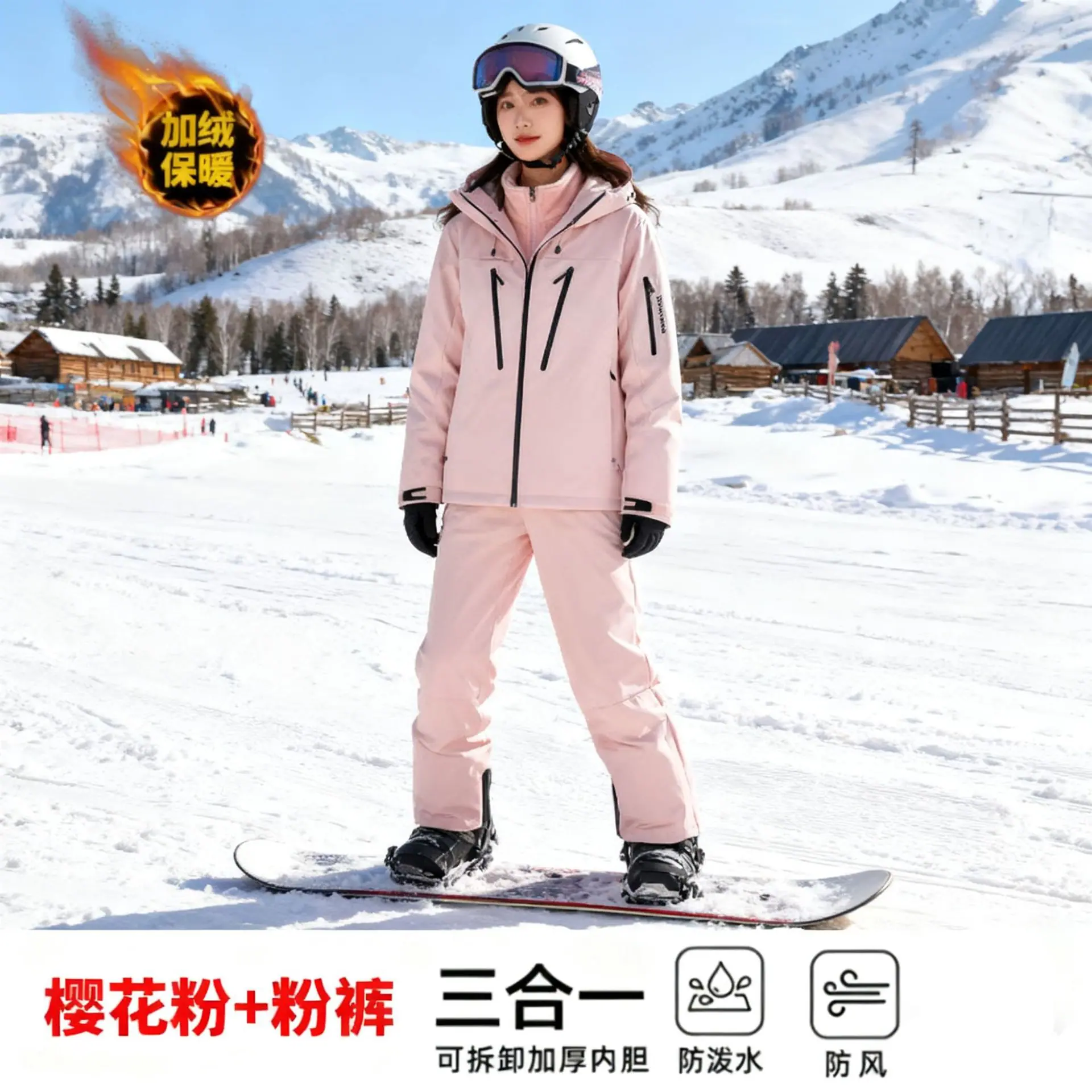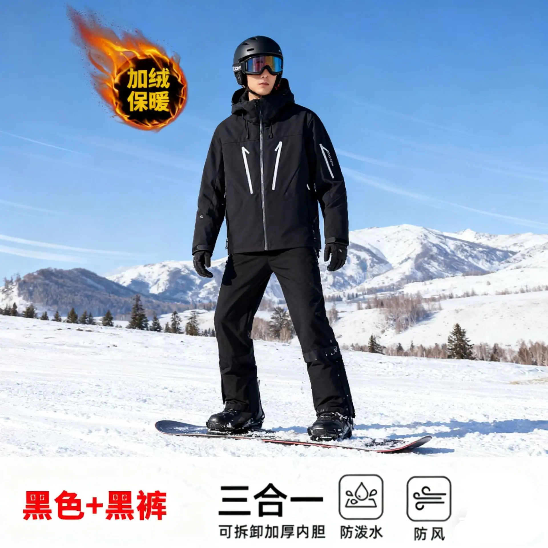 Conjunto de Roupa de Esqui Colorblock Corta-vento Impermeável Alternativo de Marca da Moda Masculino Feminino 3 em 1 Jaqueta Tempestade Camada Interna Roupa de Neve Calça de Neve