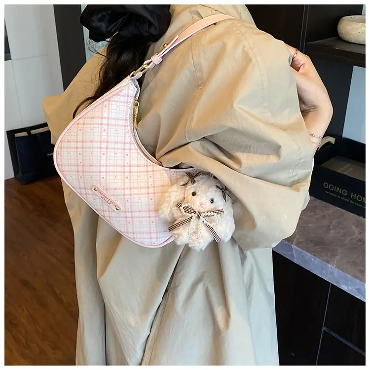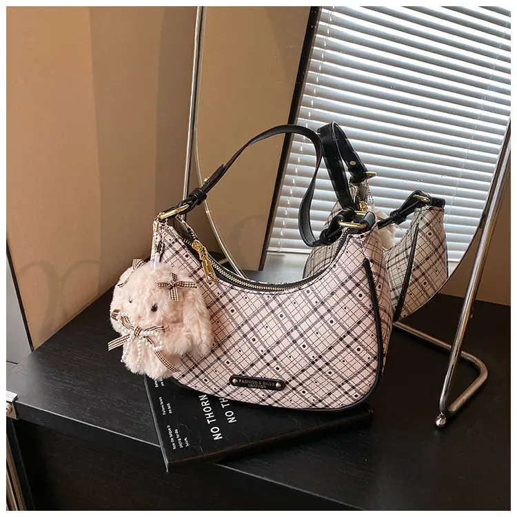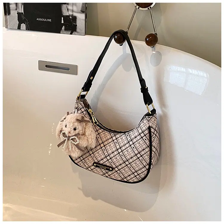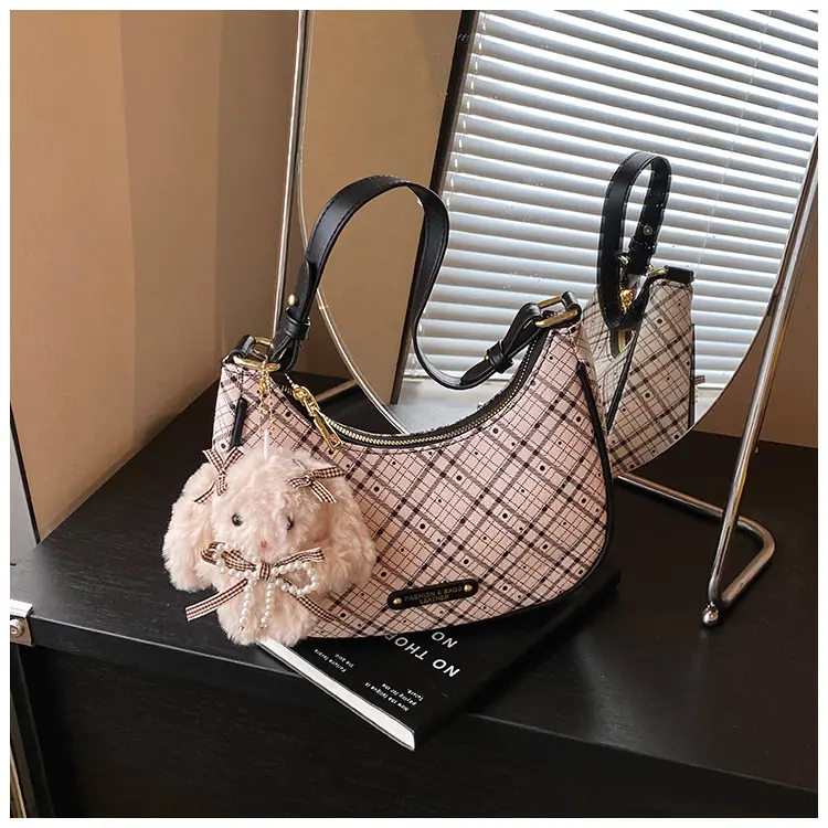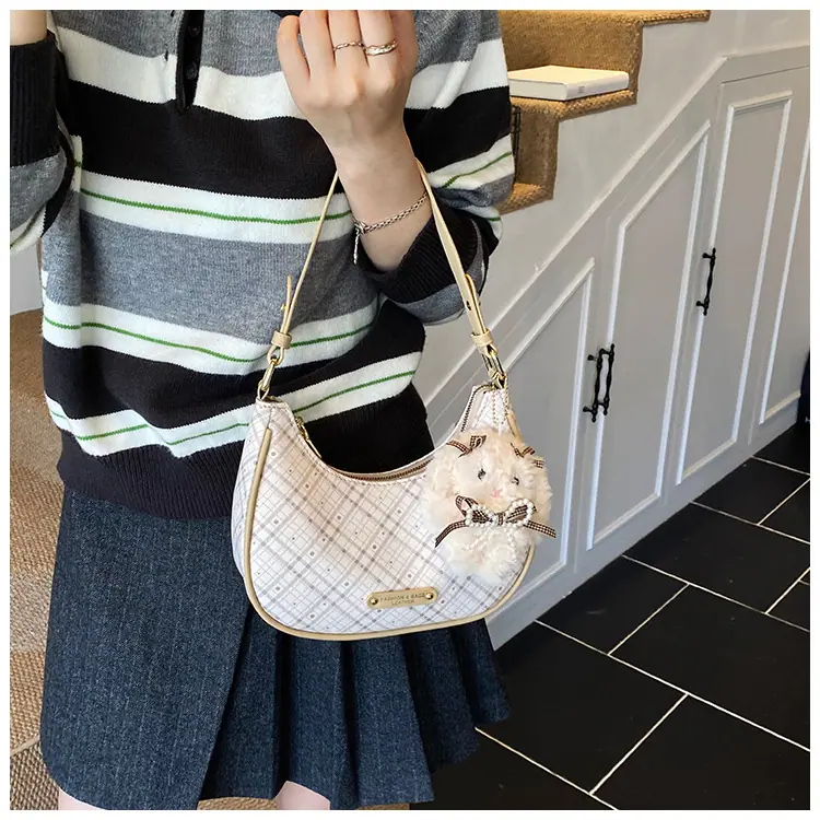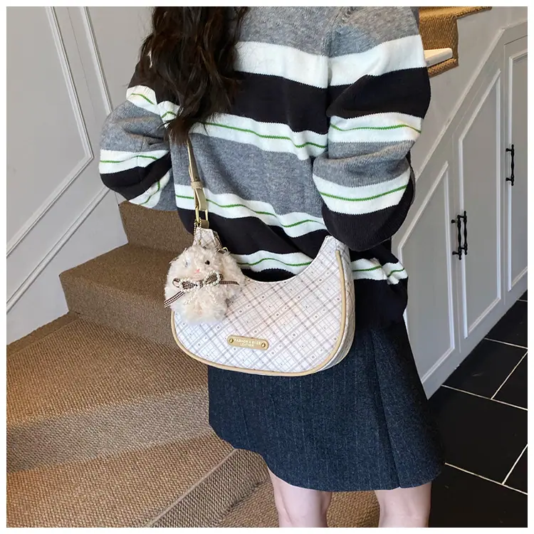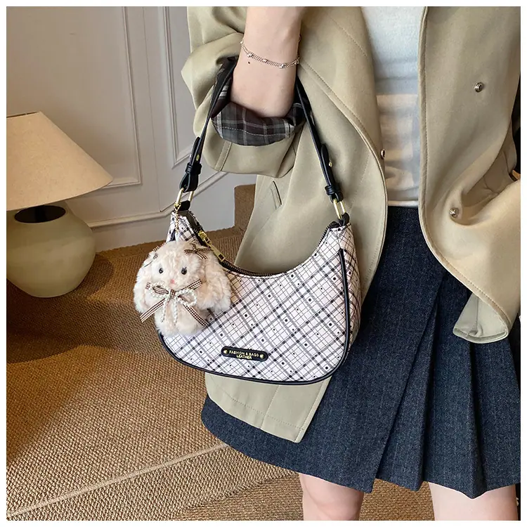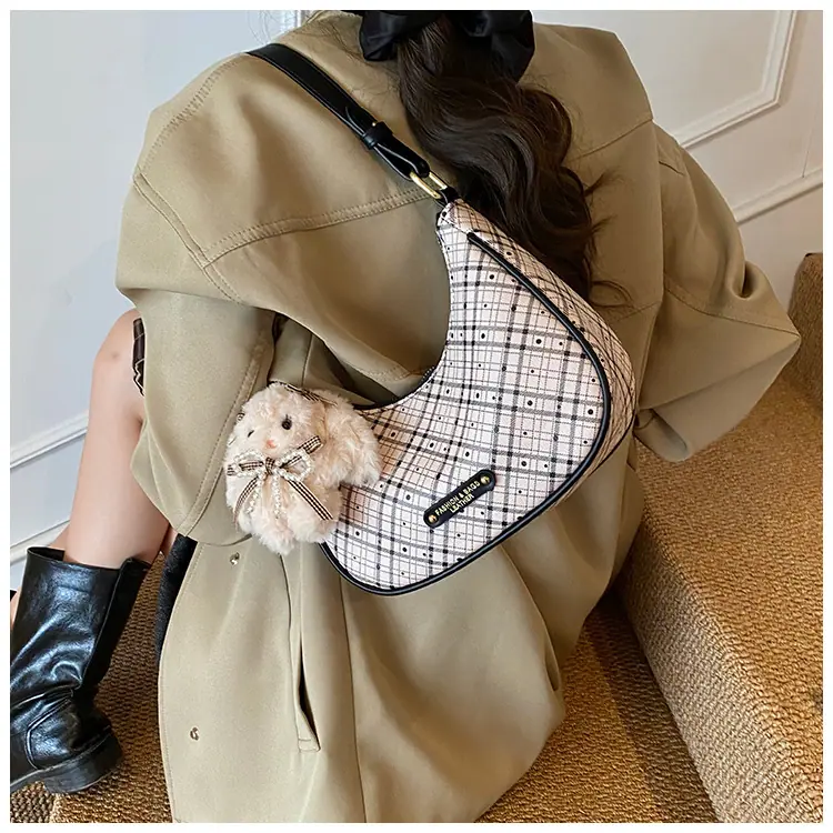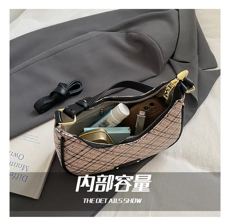 Bolsa xadrez retrô de alta qualidade transfronteiriça mulheres 2025 nova nicho versátil ombro único axila bolsa para o dia a dia transversal