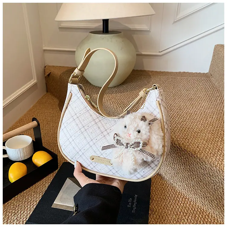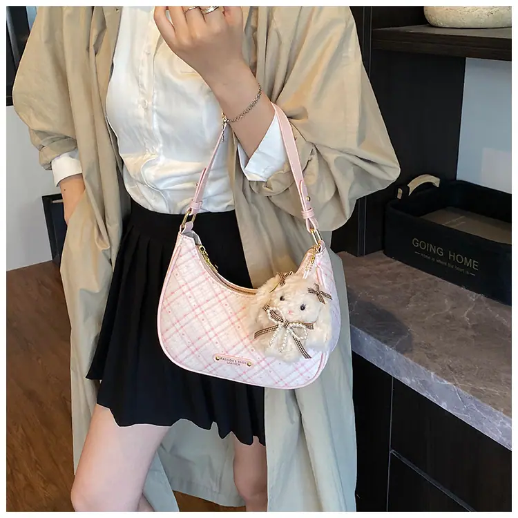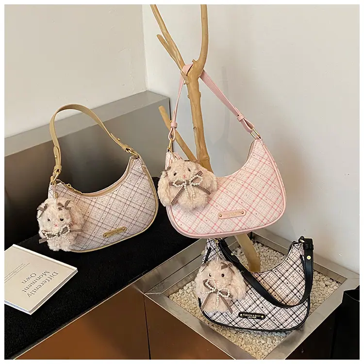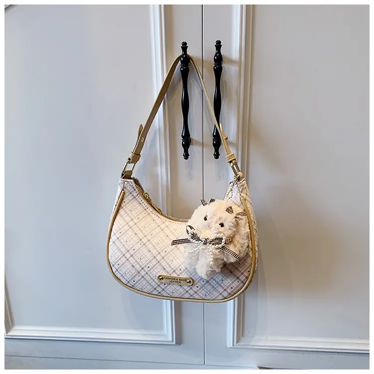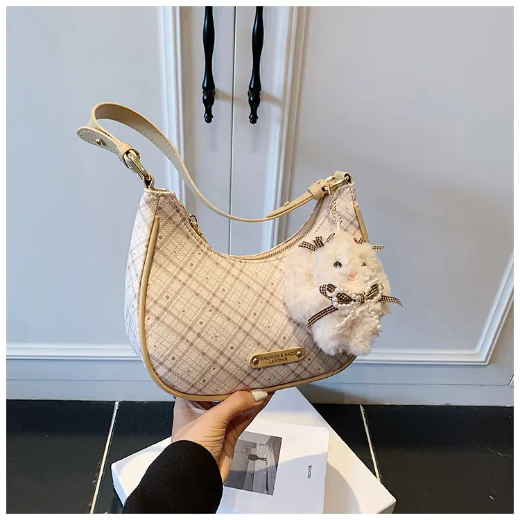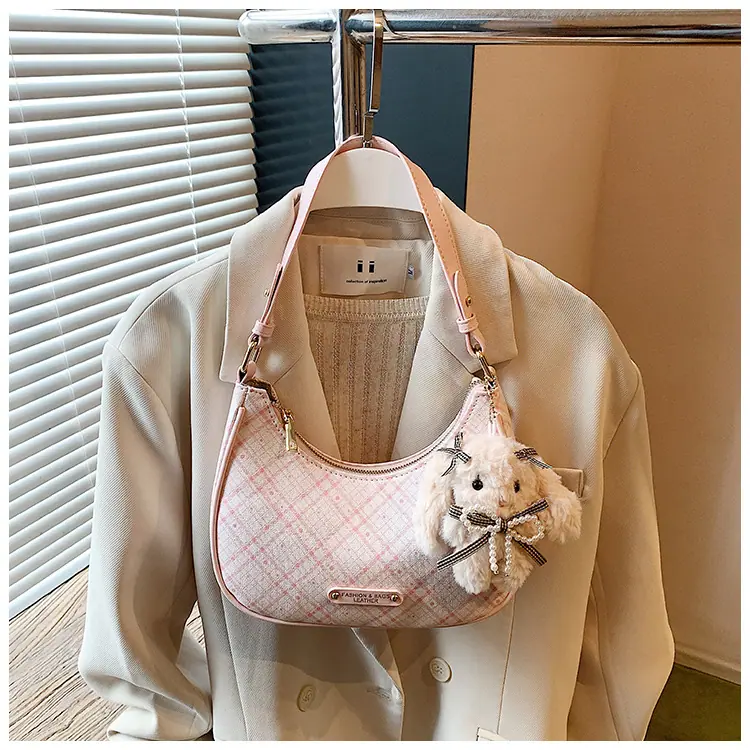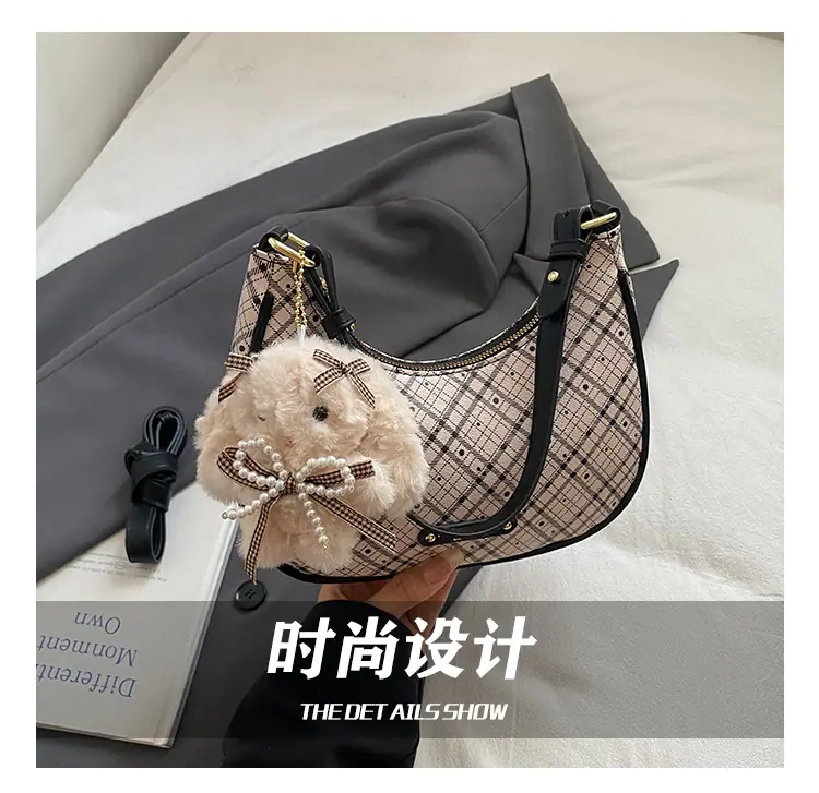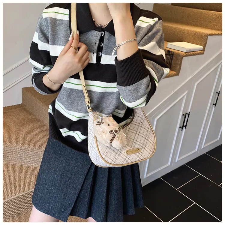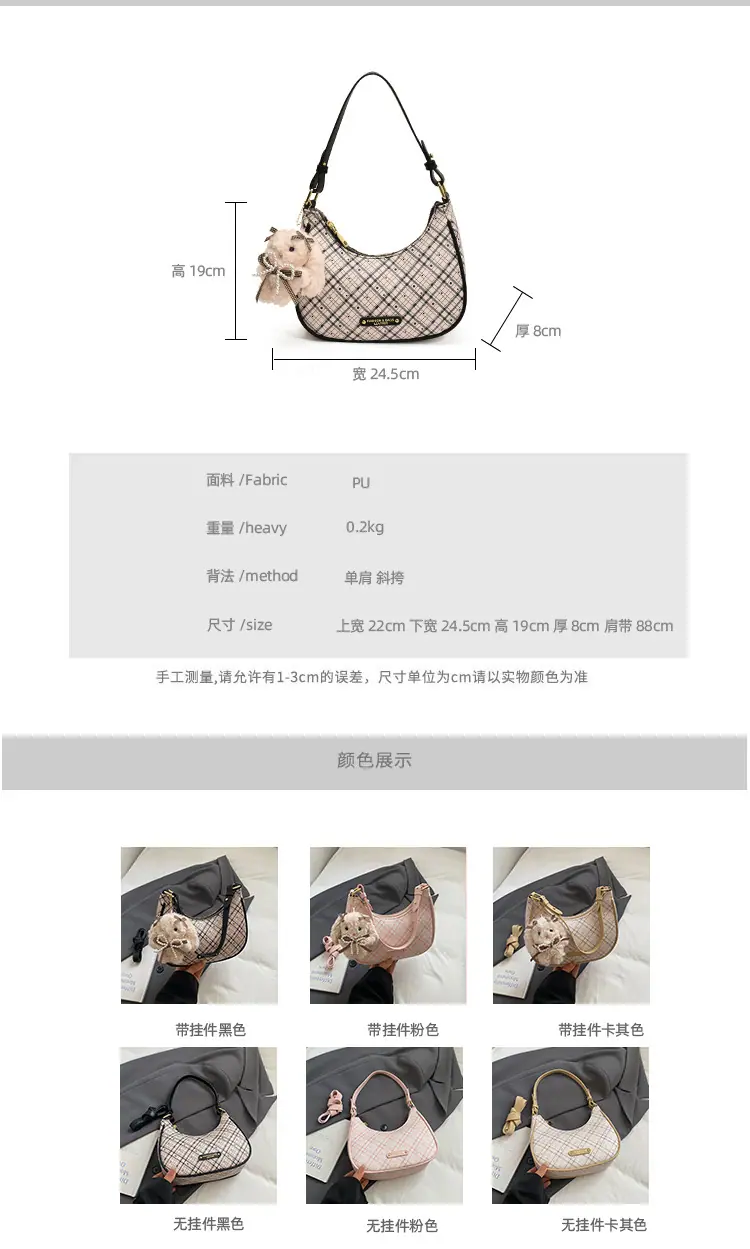 Bolsa xadrez retrô de alta qualidade transfronteiriça mulheres 2025 nova nicho versátil ombro único axila bolsa para o dia a dia transversal