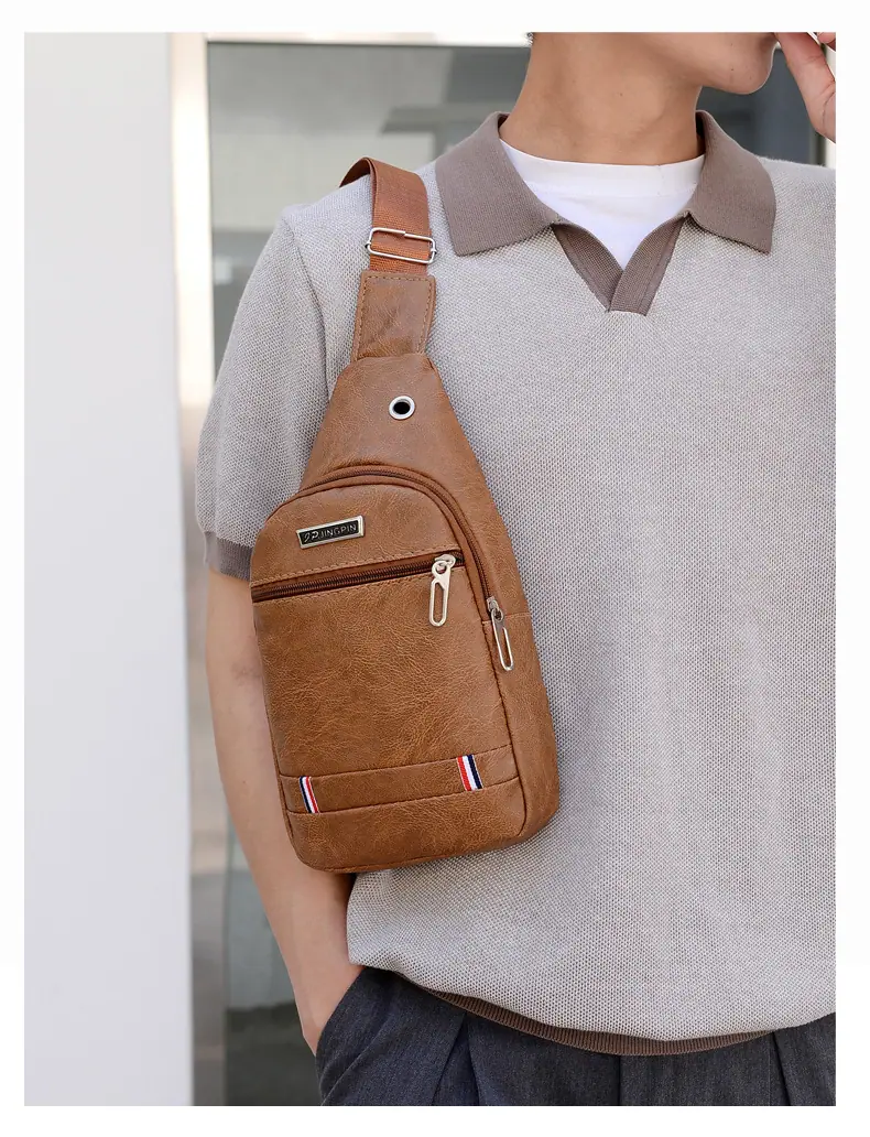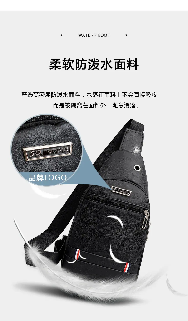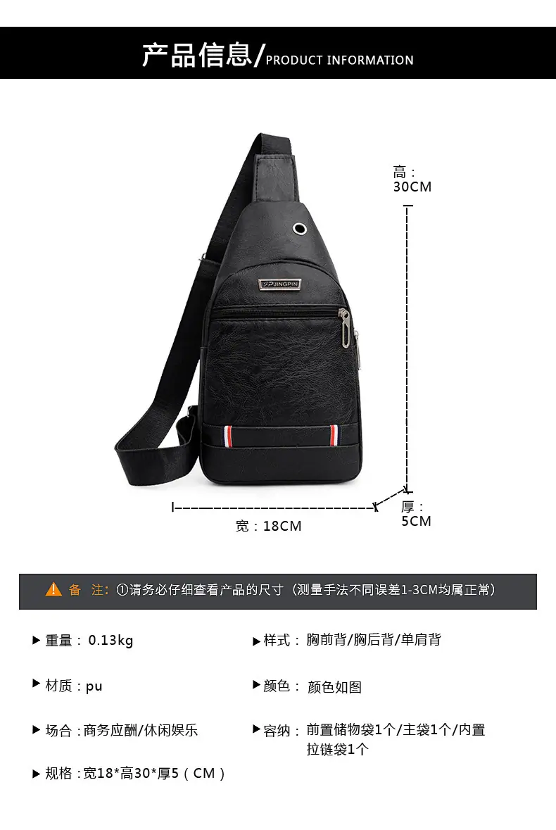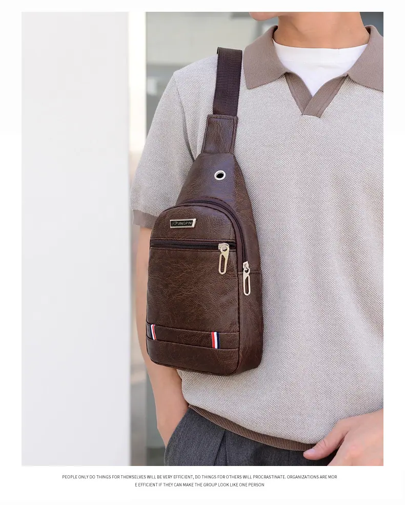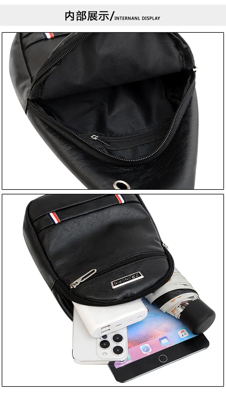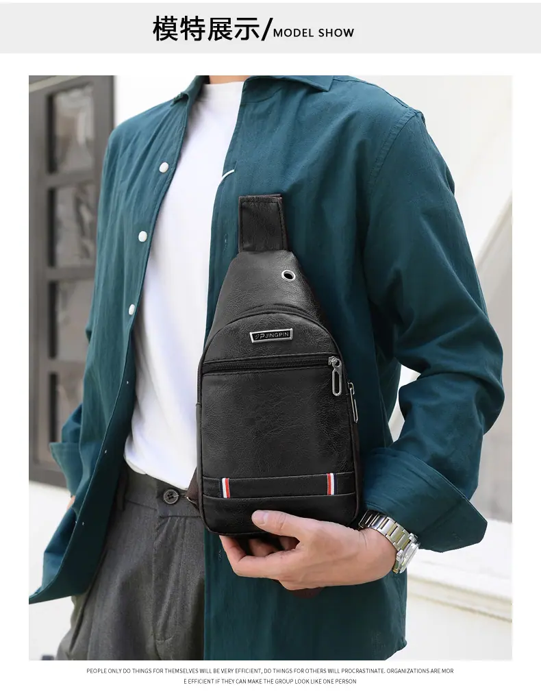 Novo PU masculino à prova d'água peito bolsa de negócios casual bolsa de ombro bolsa mensageiro de grande capacidade moda bolsa de telefone móvel portátil