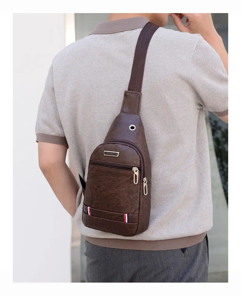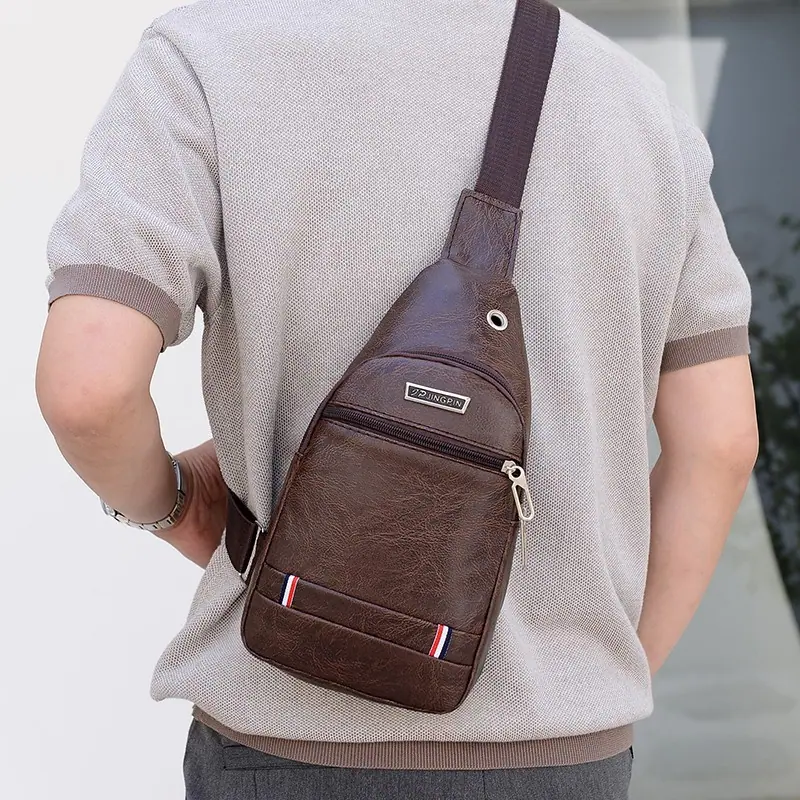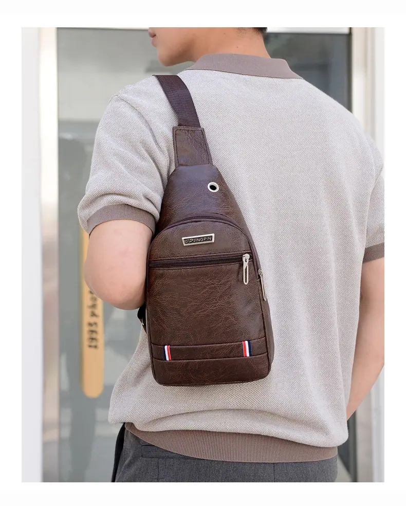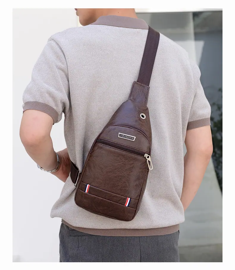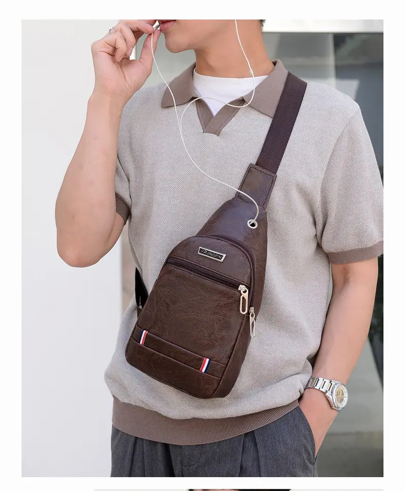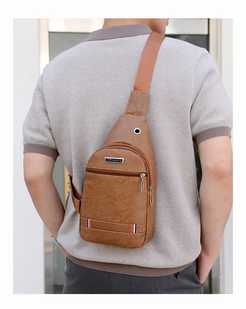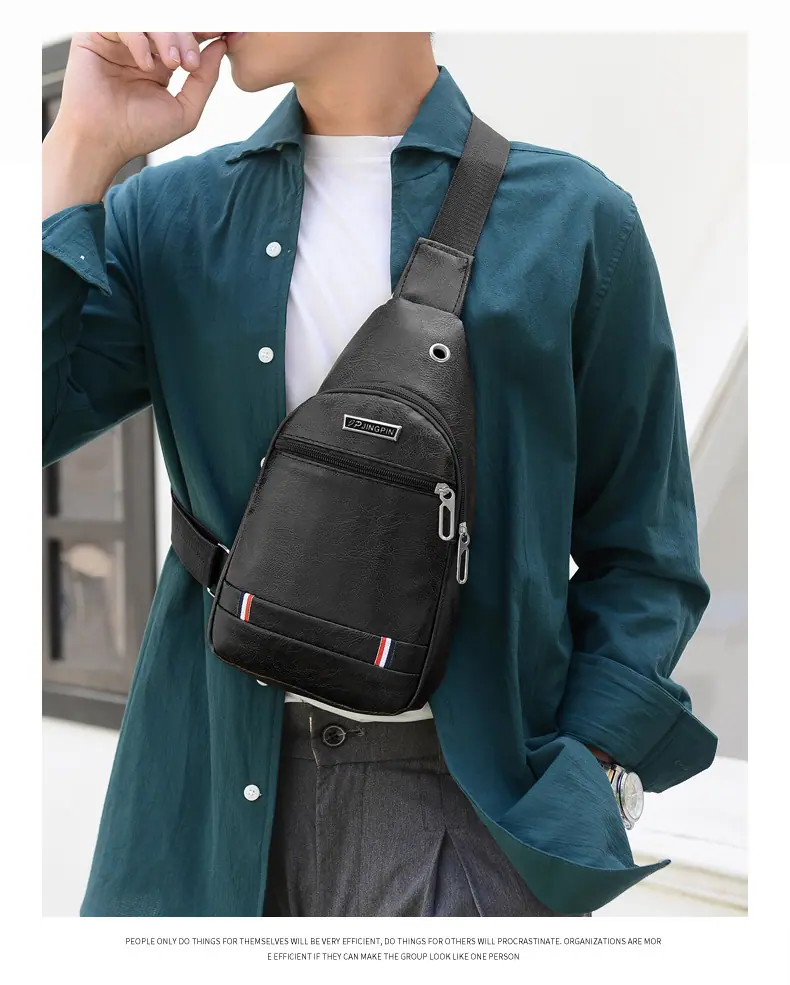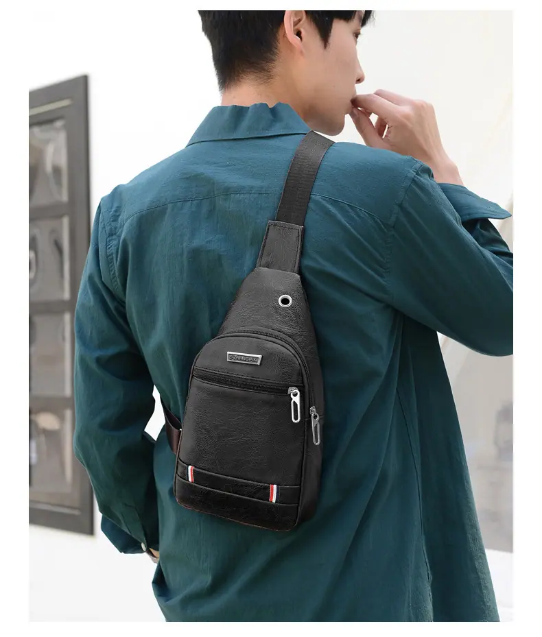 Novo PU masculino à prova d'água peito bolsa de negócios casual bolsa de ombro bolsa mensageiro de grande capacidade moda bolsa de telefone móvel portátil
