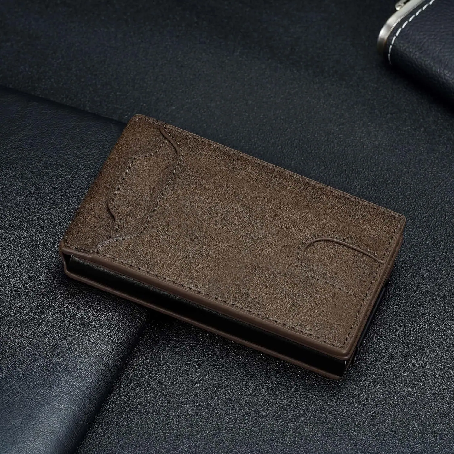Carteira Personalizada Transfronteiriça Flip com Vários Porta-cartões RIFD Antifurto Couro Clipe de Dinheiro para Negócios Couro Genuíno Carteira Masculina