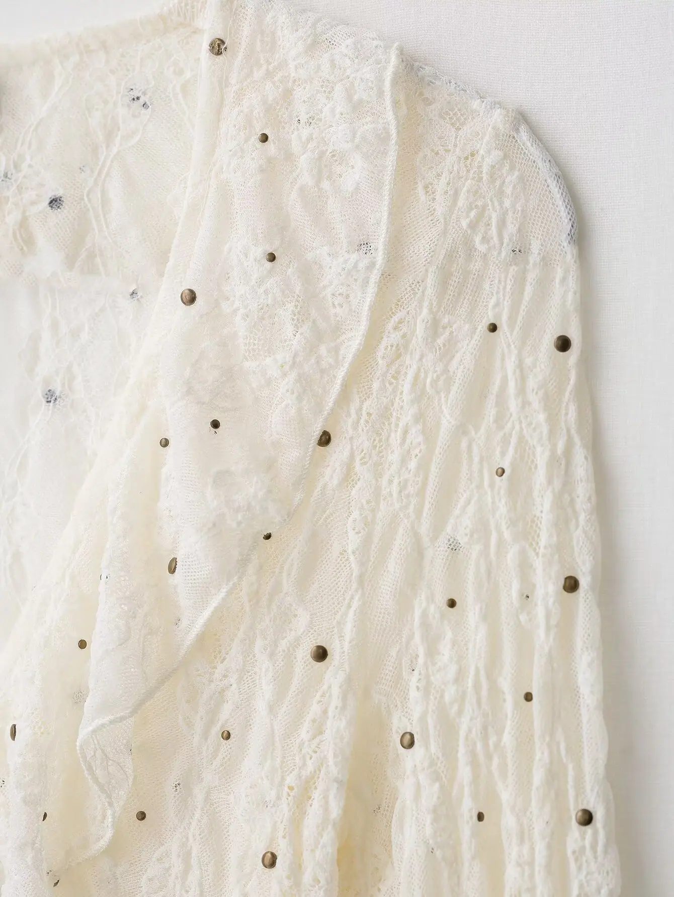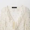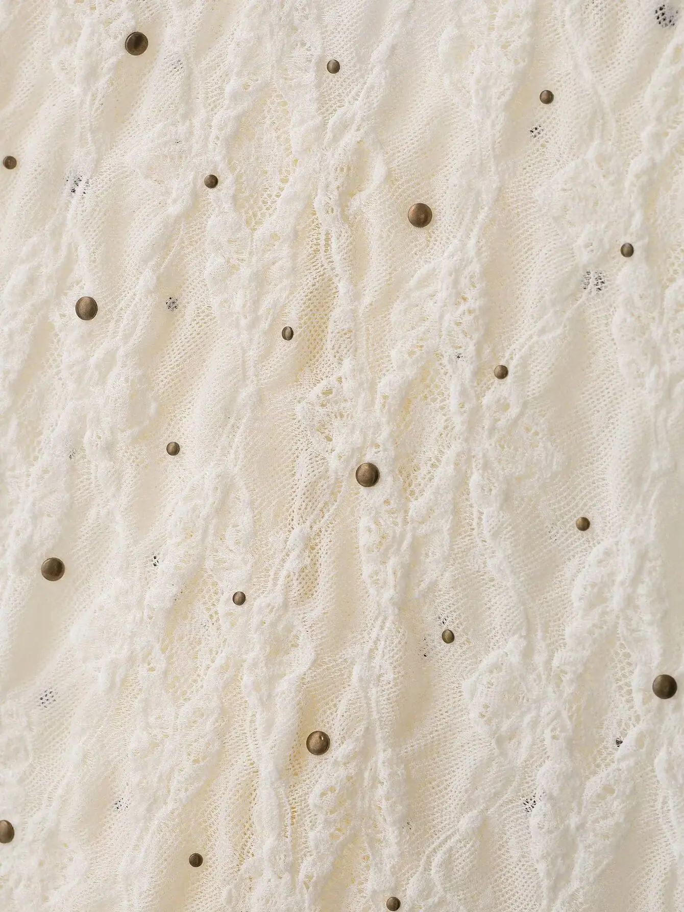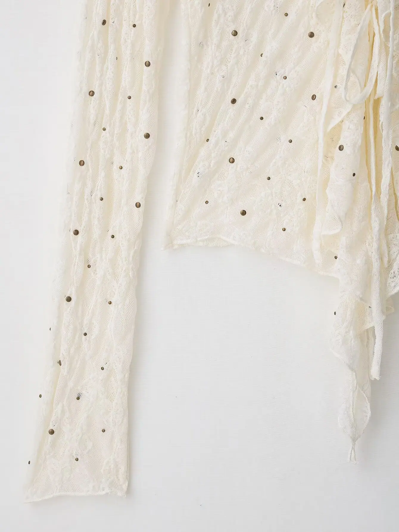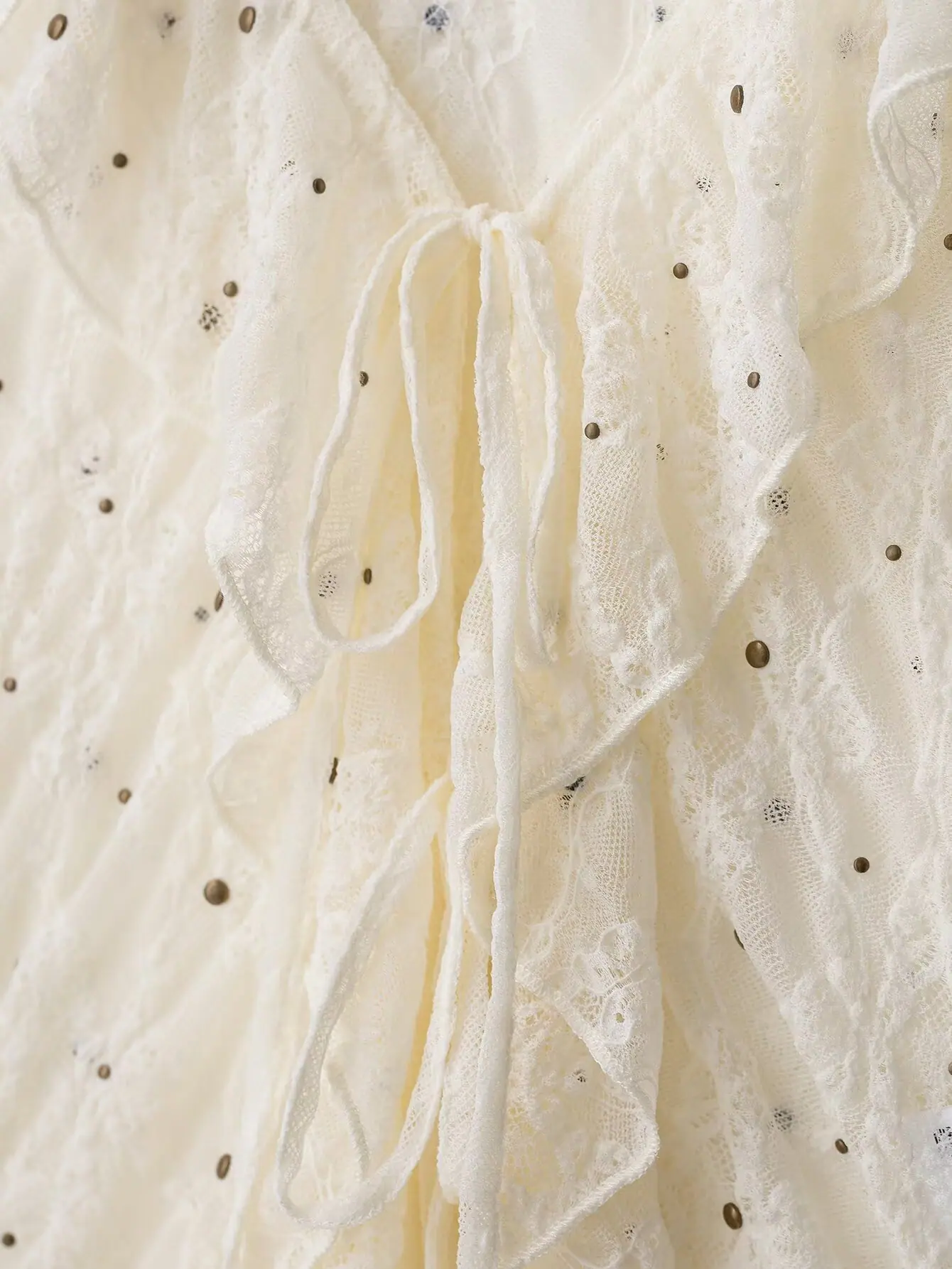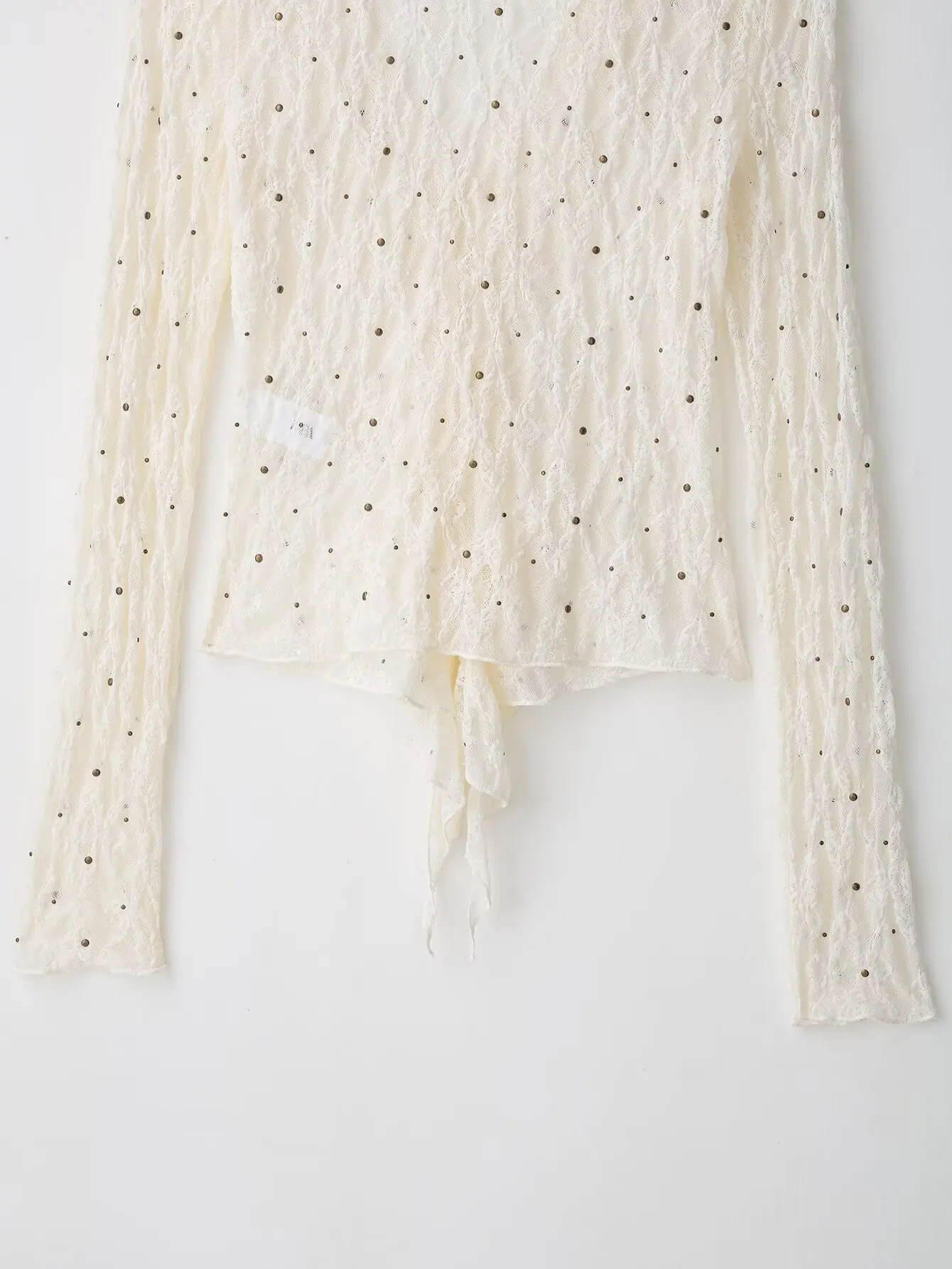Outono 2025 Nova Roupa Feminina Estilo Europeu e Americano Moda Temperamento Rebite Gola Babado Renda Plissada Manga Longa Top Feminino