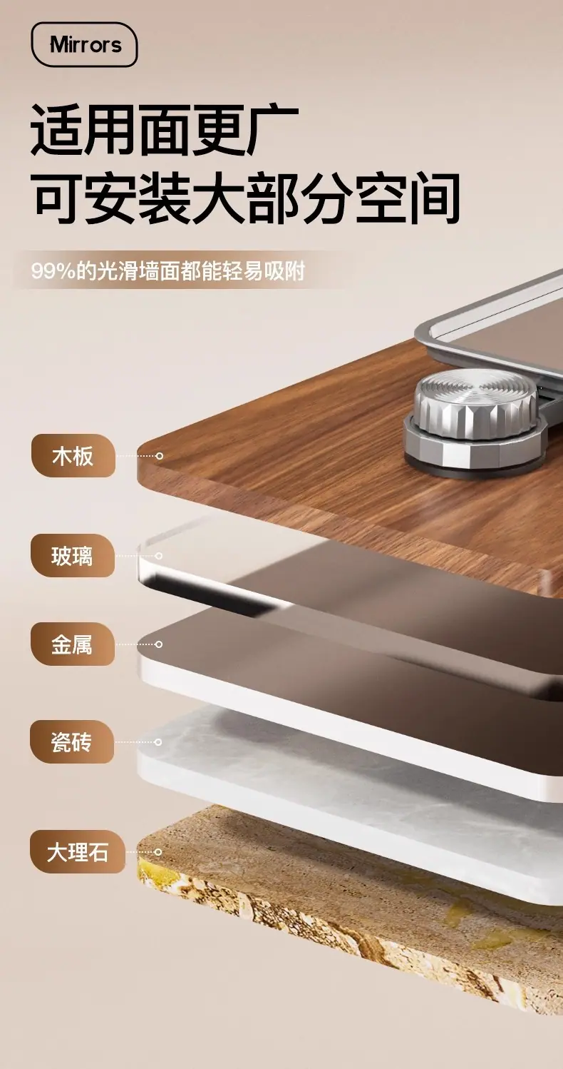 Milk White (Square) Explosion-Proof Mirror丨Super Strong Suction