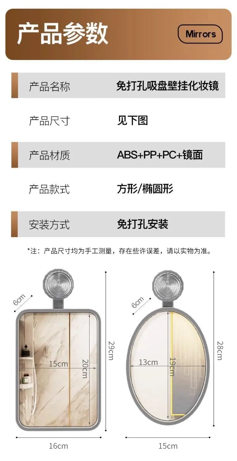 Milk White (Square) Explosion-Proof Mirror丨Super Strong Suction, Milk White (Oval) Explosion-proof Mirror丨Super Strong Suction