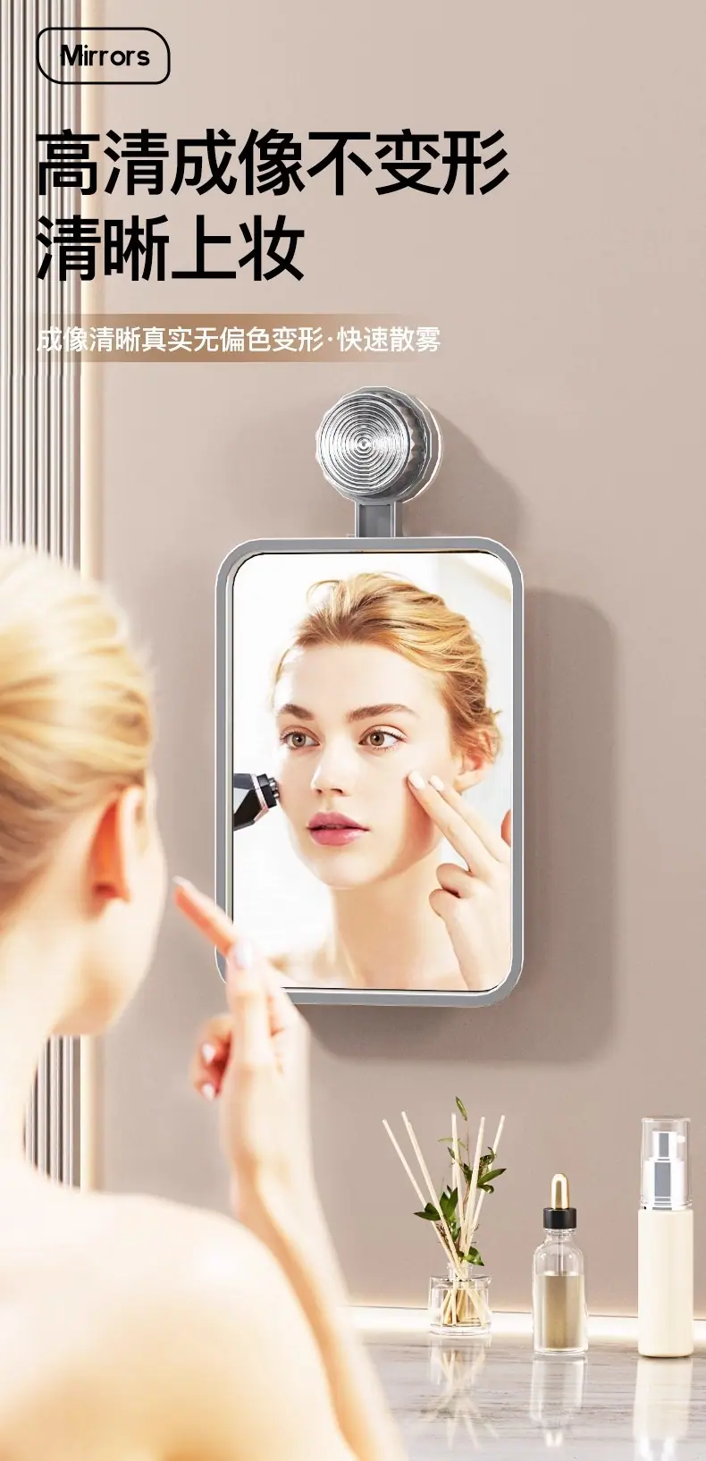 Espelho de Maquiagem com Ventosa e Prateleira Espelho de Parede para Banheiro Sem Furos Armazenamento para Vaso Sanitário Alta Definição À Prova d'Água Espelho de Vaidade