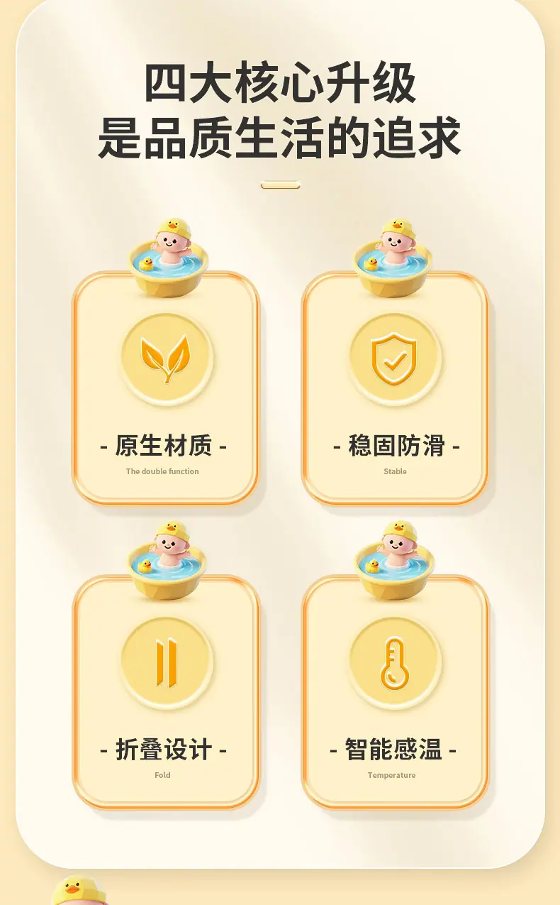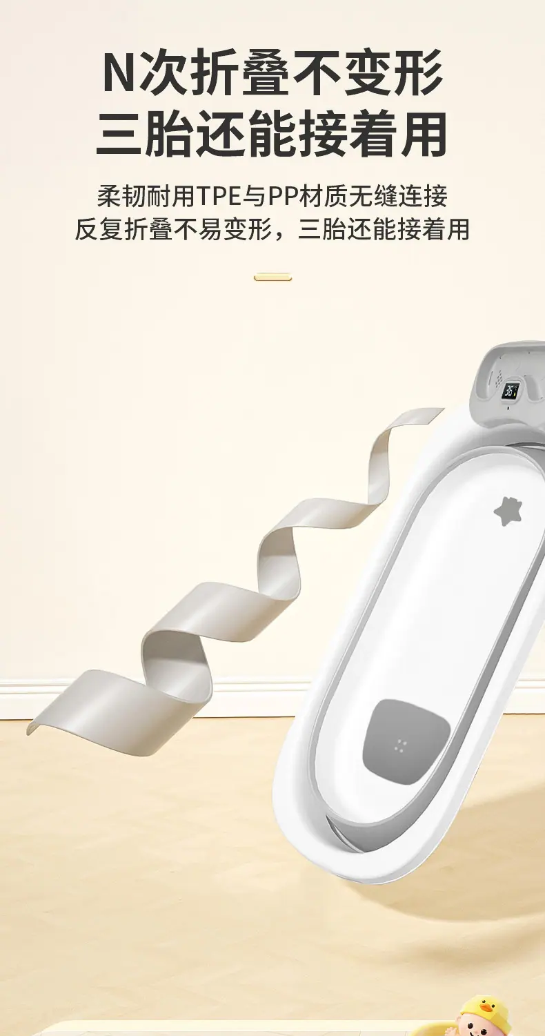 Banheira de Bebê Pode Sentar e Deitar, Artefato de Banho Doméstico para Bebê, Banheira para Recém-Nascido, Banheira de Bebê Dobrável Sensível à Temperatura