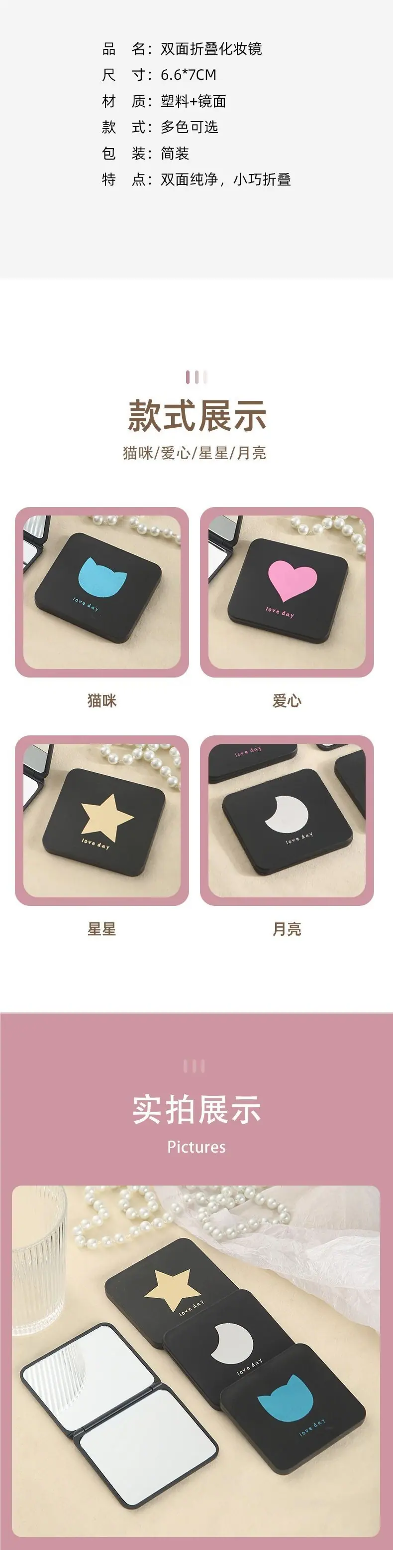 Espelho pequeno mini portátil mini espelho de maquiagem dupla face portátil dormitório estudantil portátil portátil espelho dobrável casa feminino