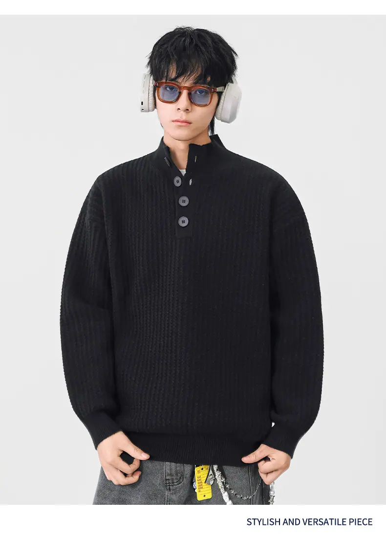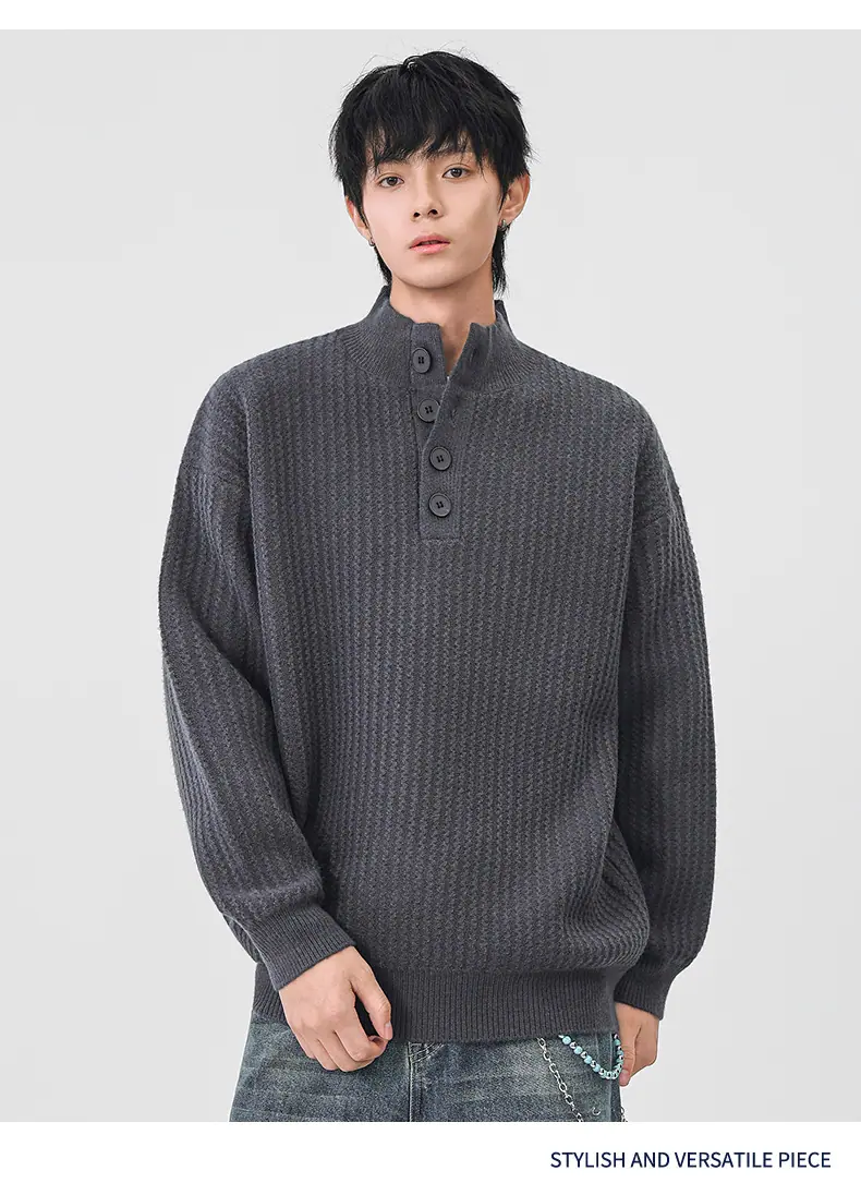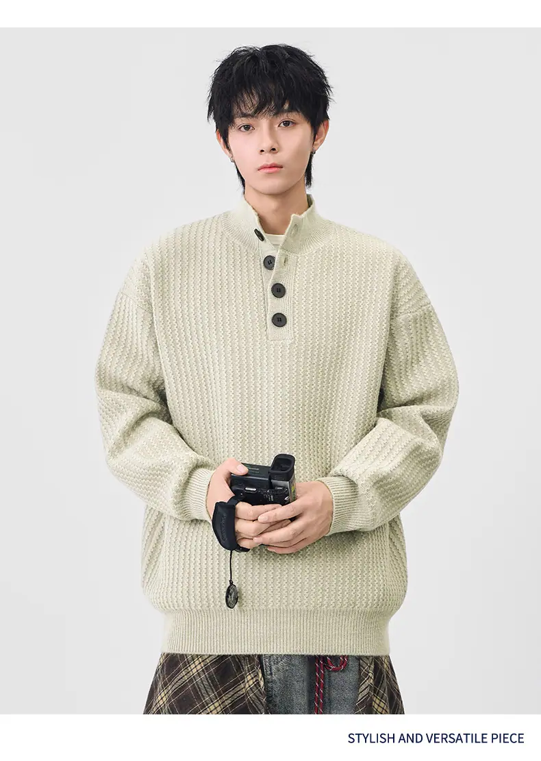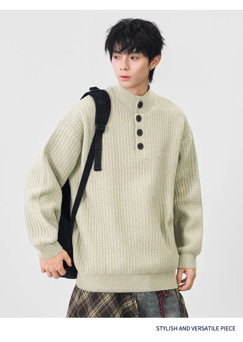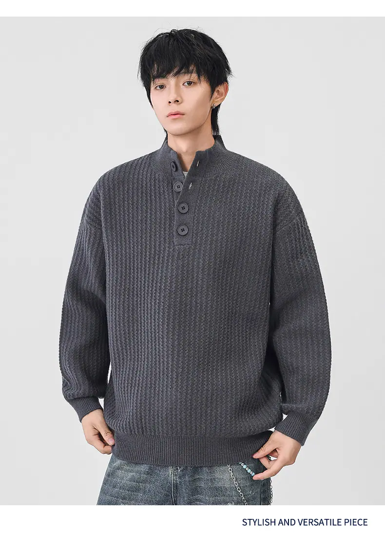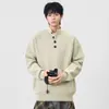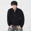 Tricô Masculino 2025 Outono/Inverno Novo Pulôver Gola Alta Pulôver com Botões Suéter Versátil Tendência Solta Japonesa Espesso