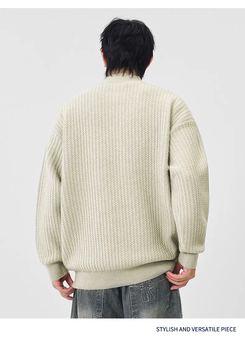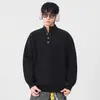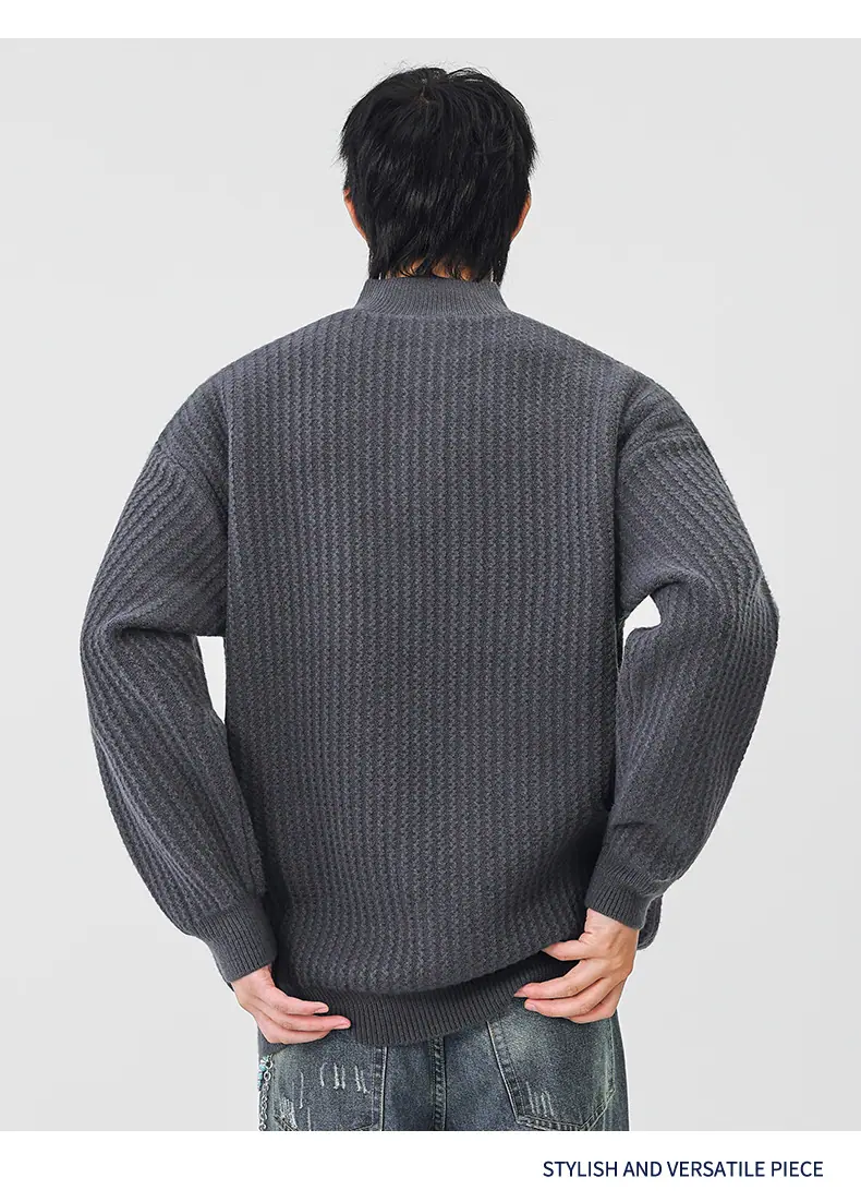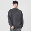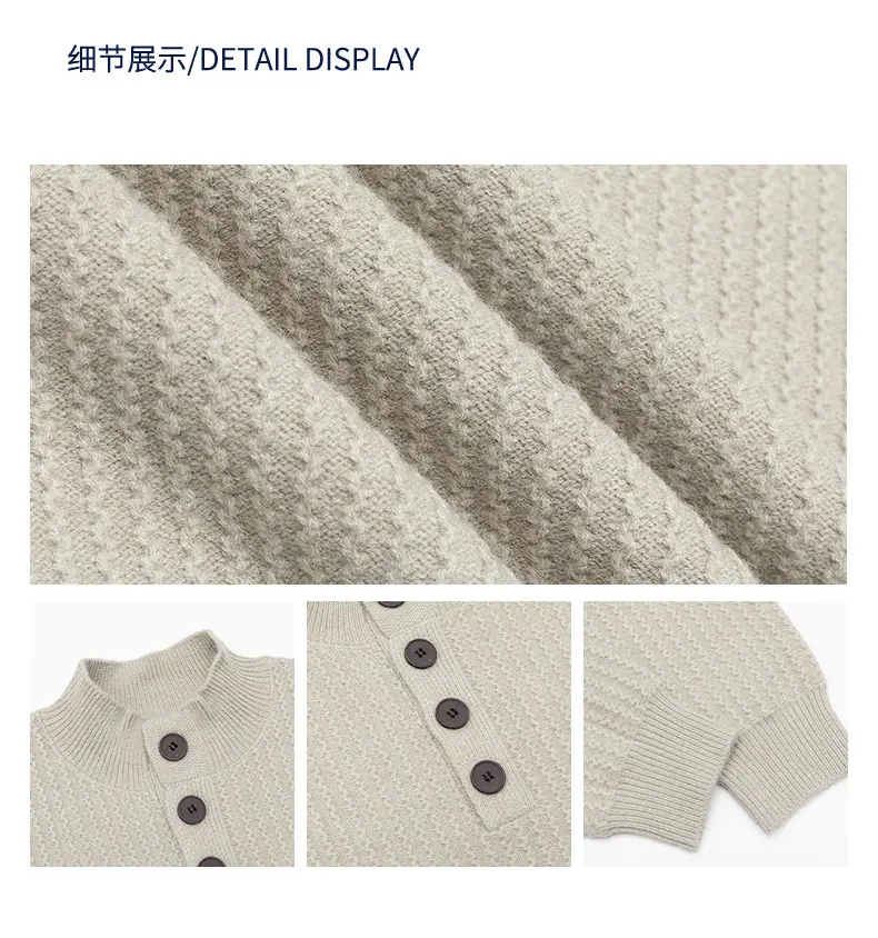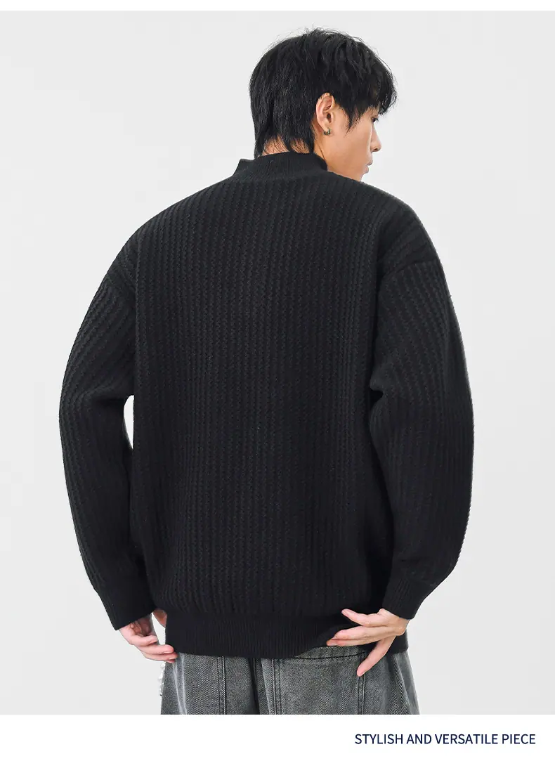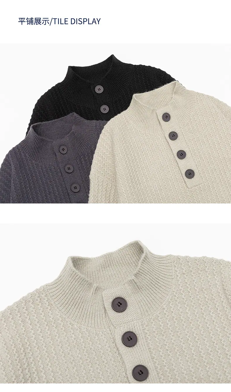 Tricô Masculino 2025 Outono/Inverno Novo Pulôver Gola Alta Pulôver com Botões Suéter Versátil Tendência Solta Japonesa Espesso