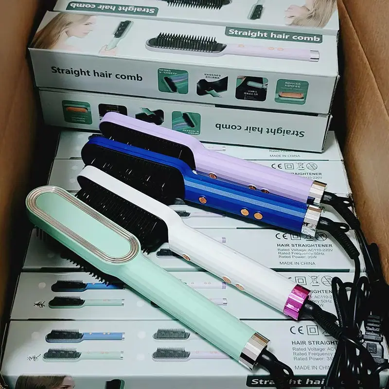 Compre Novo Estilo Pente Alisador de Cabelo Conveniente Íon Negativo Alisador de Cabelo Cabelo Cacheado Dupla Finalidade Elétrico Pente Modelador de Cabelo Fivela Interna Modelador de Cabelo Preguiçoso no atacado no Joom.pro