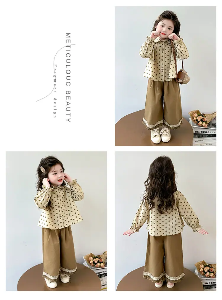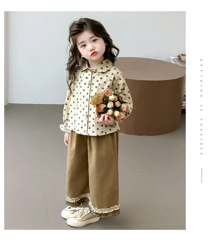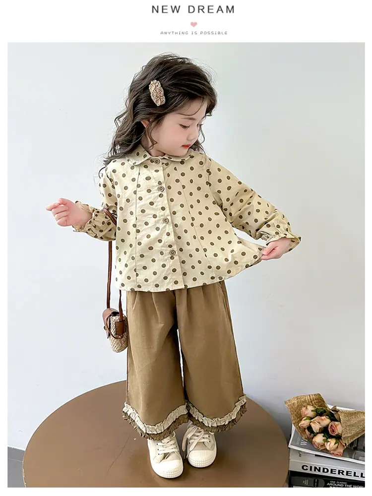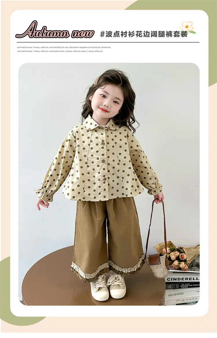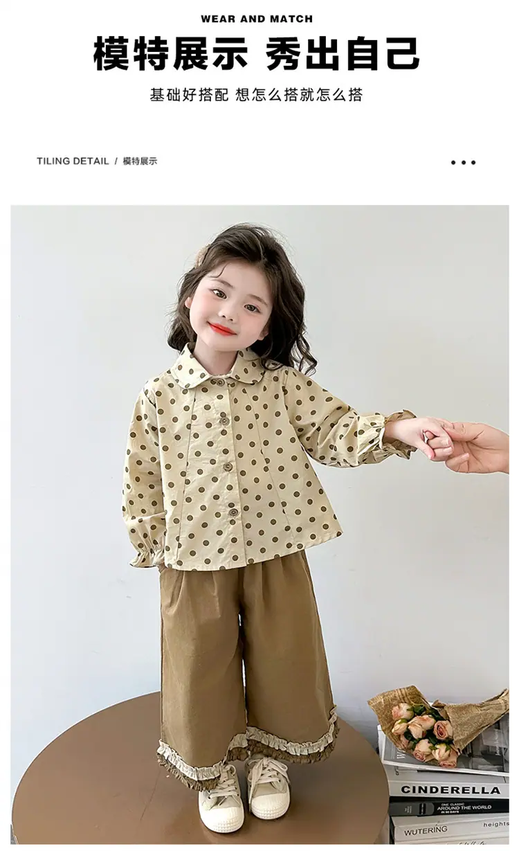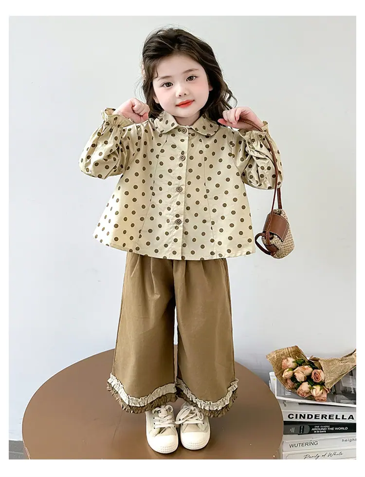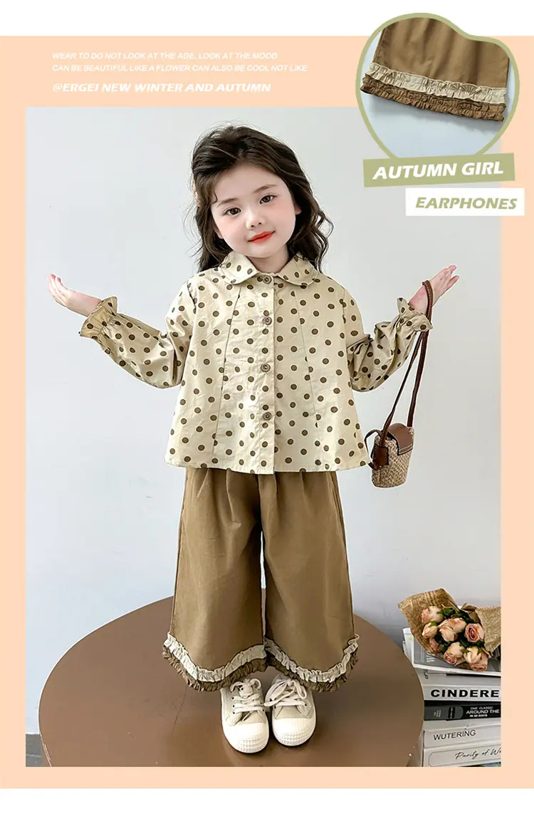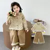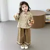 Conjunto Infantil para Meninas Primavera Outono 2025 Novo Camisa Infantil Fashion Outono Roupa Elegante de Outono para Bebê Menina Conjunto de Duas Peças
