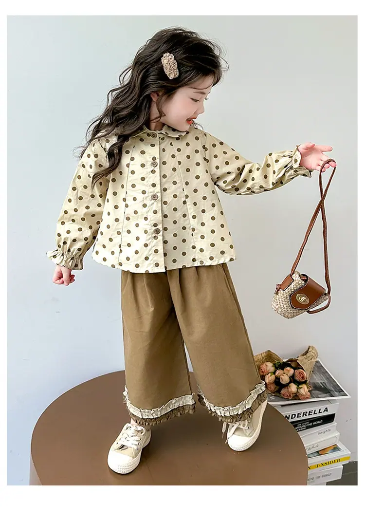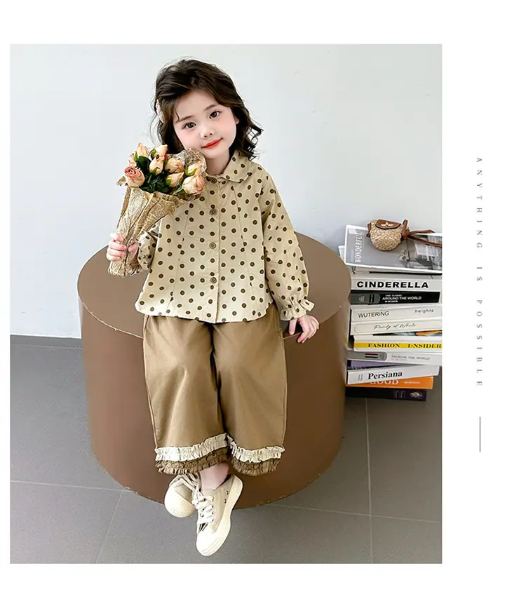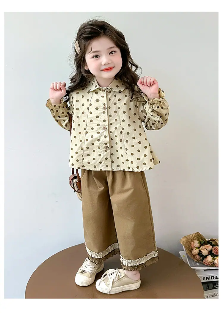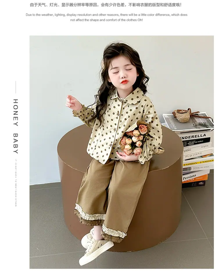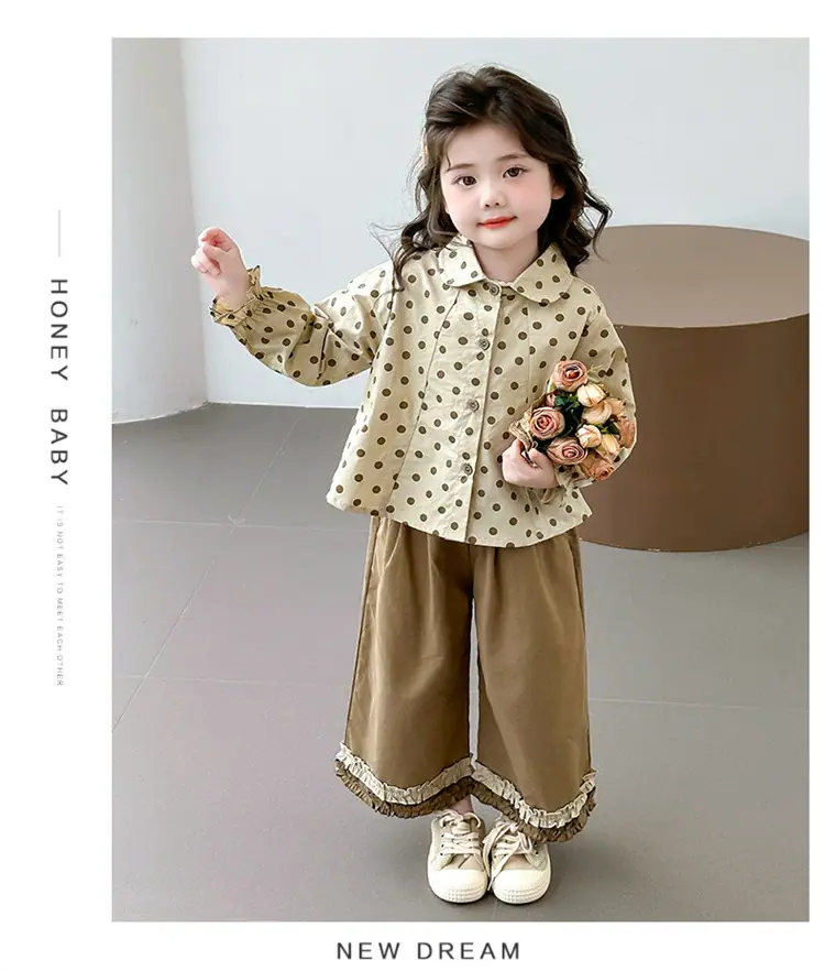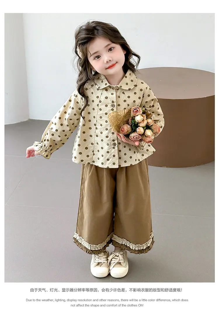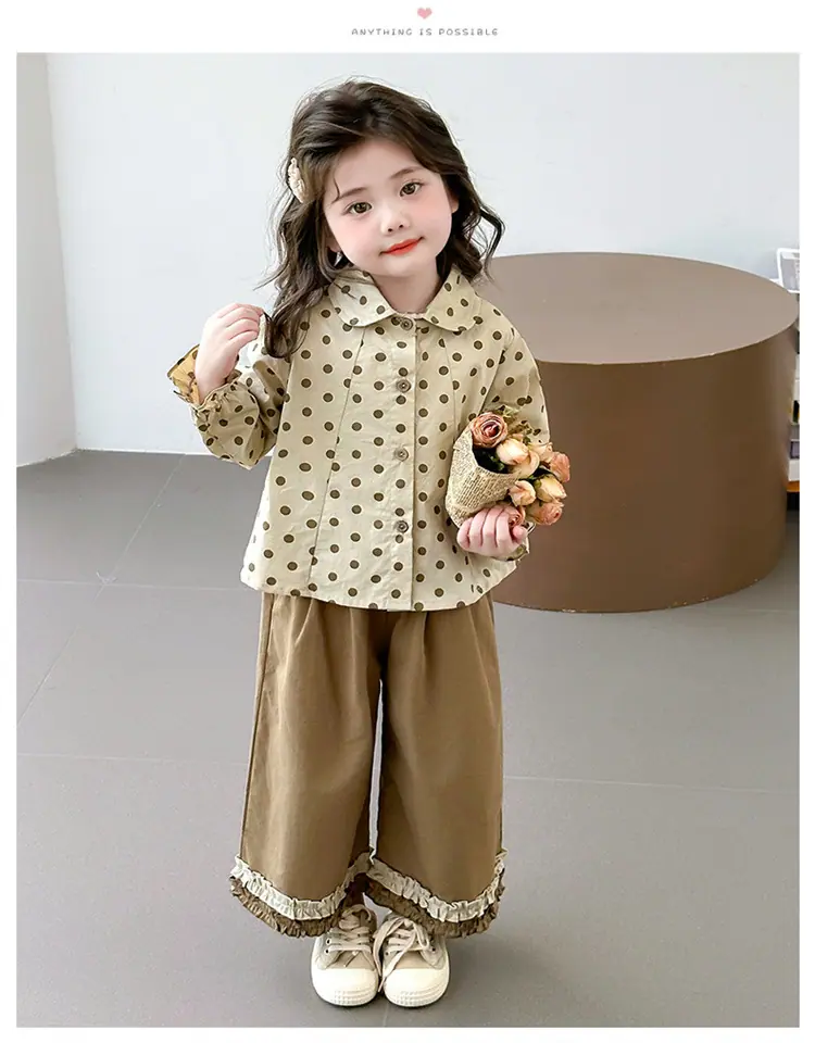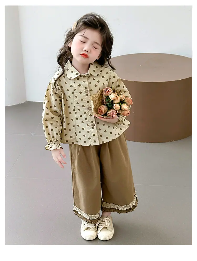 Conjunto Infantil para Meninas Primavera Outono 2025 Novo Camisa Infantil Fashion Outono Roupa Elegante de Outono para Bebê Menina Conjunto de Duas Peças
