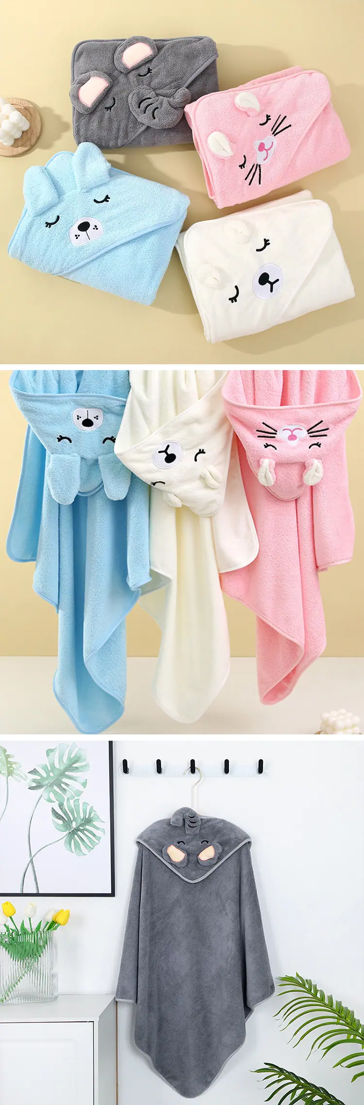 Compre Edredom de desenho animado de lã coral, toalha de banho infantil com capuz, saco para bebê, toalha de banho, manta para bebê, saco macio e absorvente, solteiro no atacado no Joom.pro