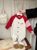 Cardigã Tricotado Vermelho Festivo para Bebê Outono e Inverno Estilo Bebê Suéter Bordado Roupa Completa para Recém-Nascido Lua Cheia Cem Dias Engatinhar