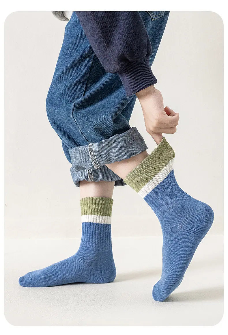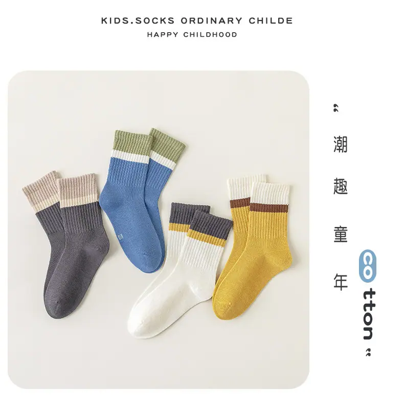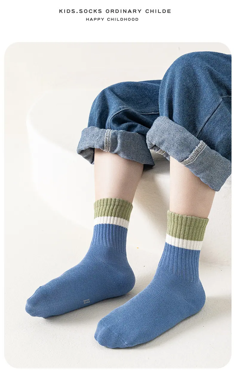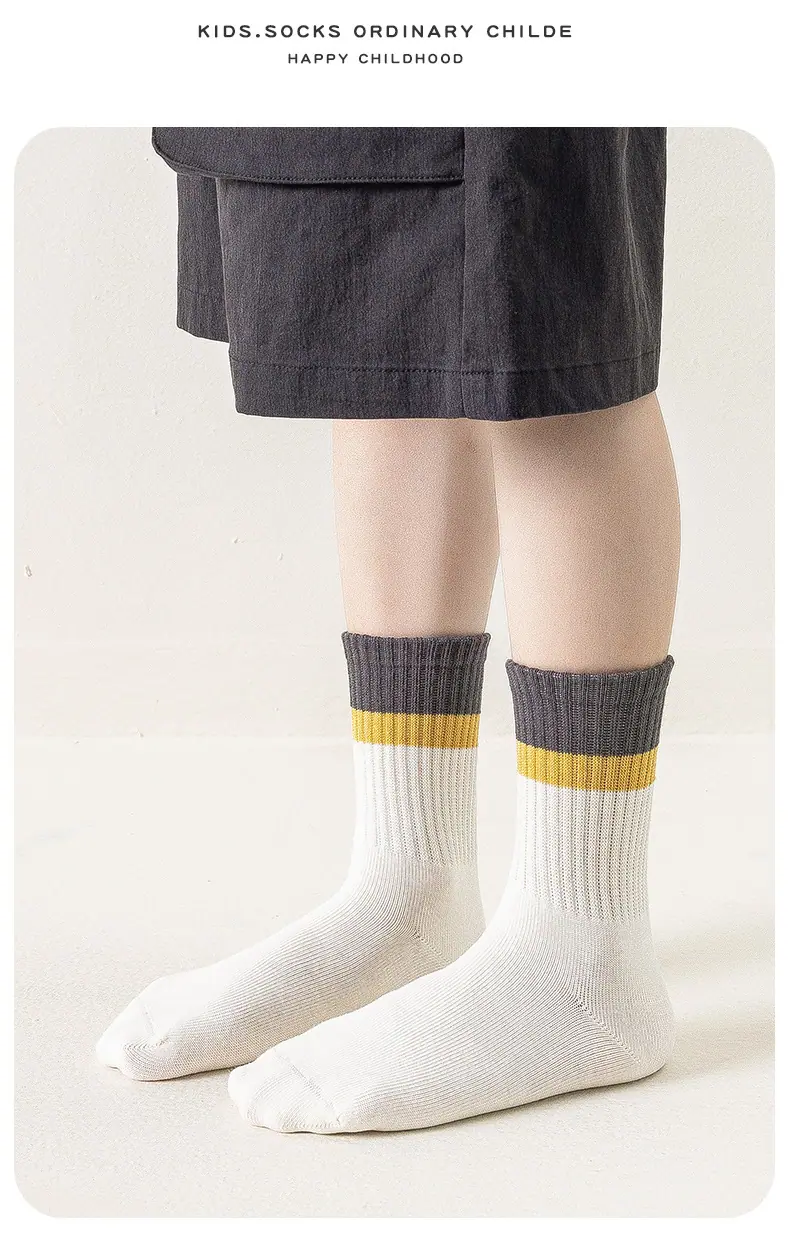 Meias Infantis Sem Costura de Algodão Puro Novas Outono/Inverno 2025 Classe A Meias Esportivas de Algodão Respiráveis Color Block para Crianças Médias e Grandes Meninos
