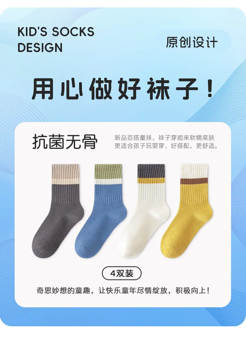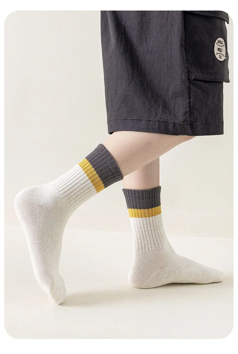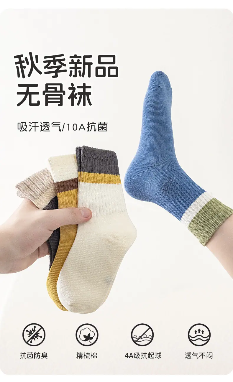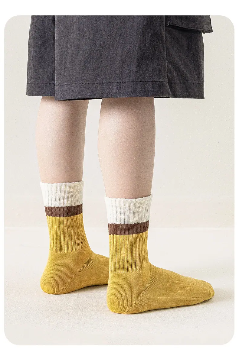 Meias Infantis Sem Costura de Algodão Puro Novas Outono/Inverno 2025 Classe A Meias Esportivas de Algodão Respiráveis Color Block para Crianças Médias e Grandes Meninos
