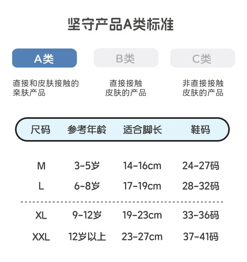 M (3-5 years old), L (6-8 years old), XL (9-12 years), XXL (Age 12+)