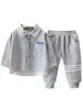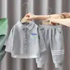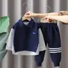 Roupa Infantil Meninos Outono Conjunto de Camisa 2025 Novo Bebê Infantil Casual Outono Conjunto de Duas Peças Roupa de Bebê Primavera e Outono