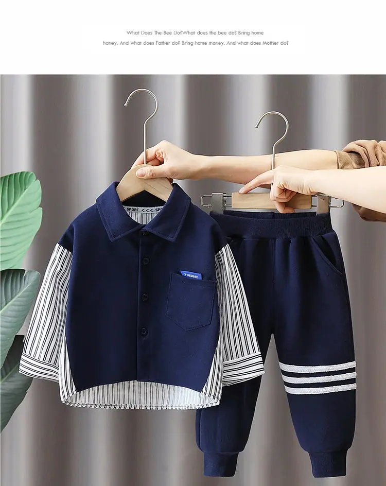 Compre Roupa Infantil Meninos Outono Conjunto de Camisa 2025 Novo Bebê Infantil Casual Outono Conjunto de Duas Peças Roupa de Bebê Primavera e Outono no atacado no Joom.pro