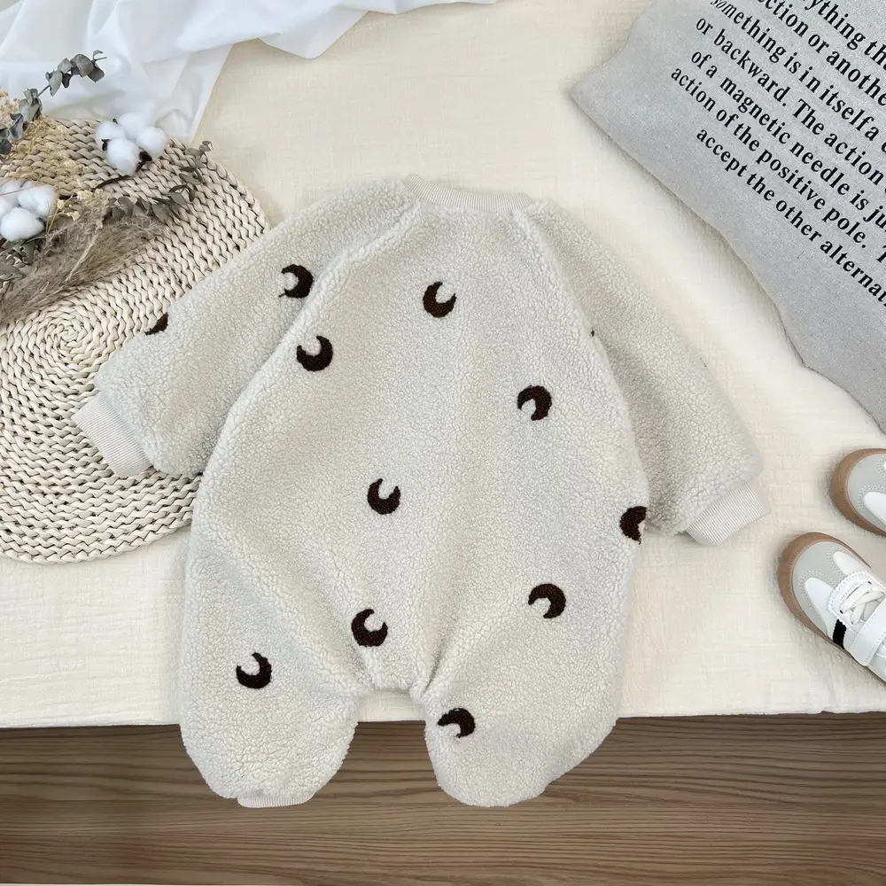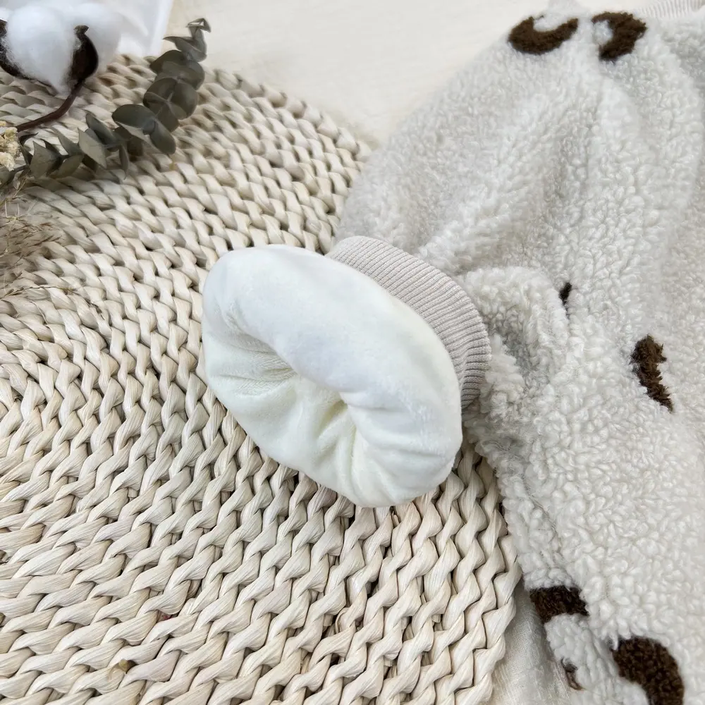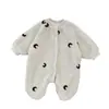 Macacão Bordado para Bebê Forrado com Lã Estilo Coreano para Passeio Macacão Grosso para Homens e Mulheres Bebê Recém-Nascido Inverno Quente Bebê