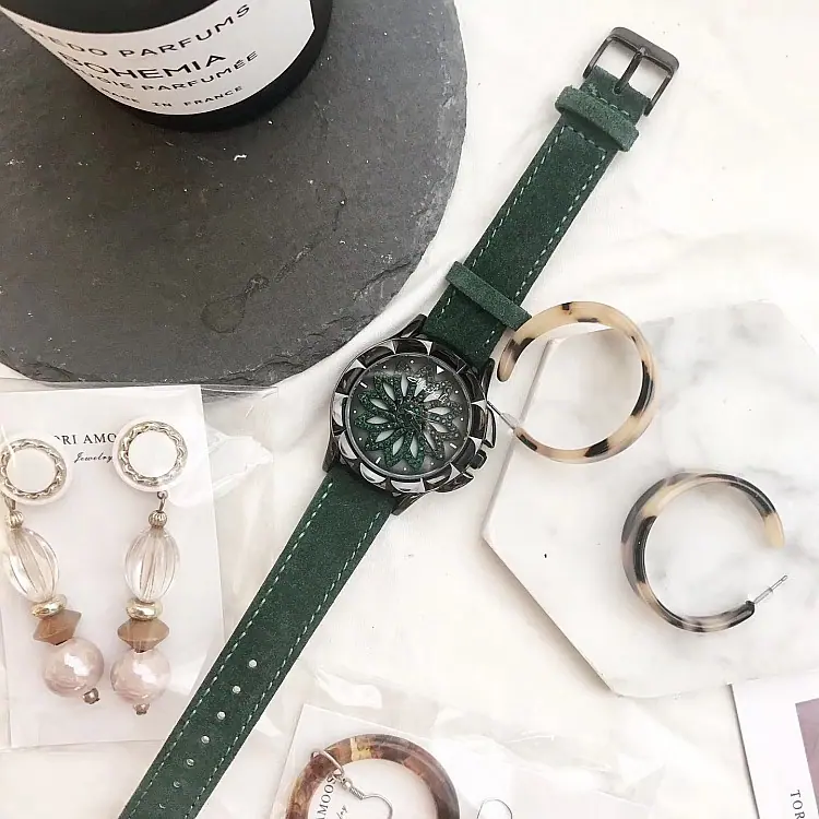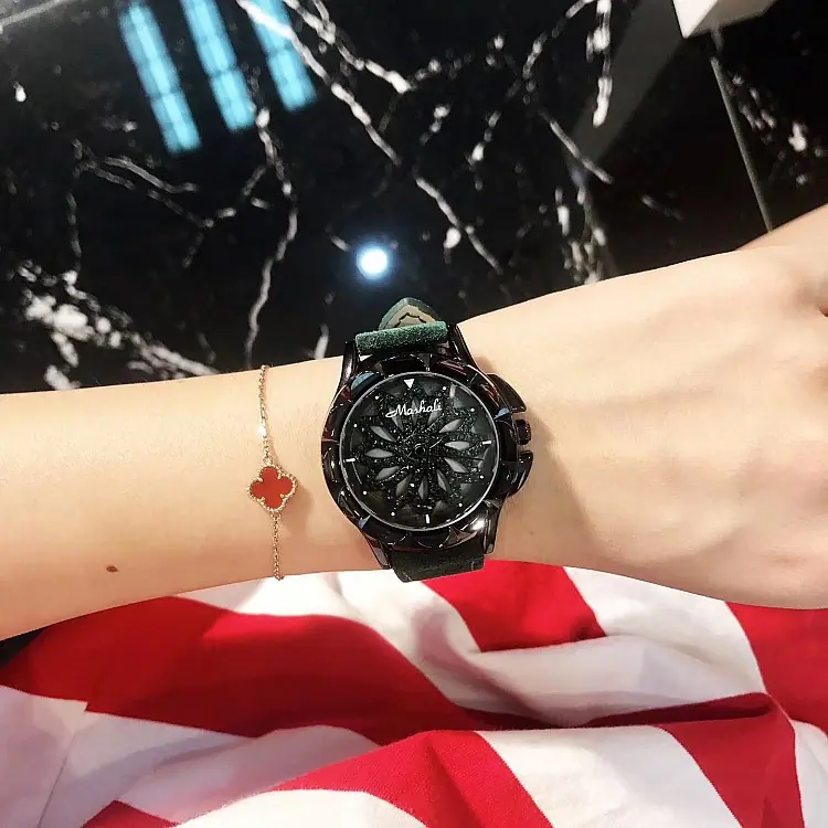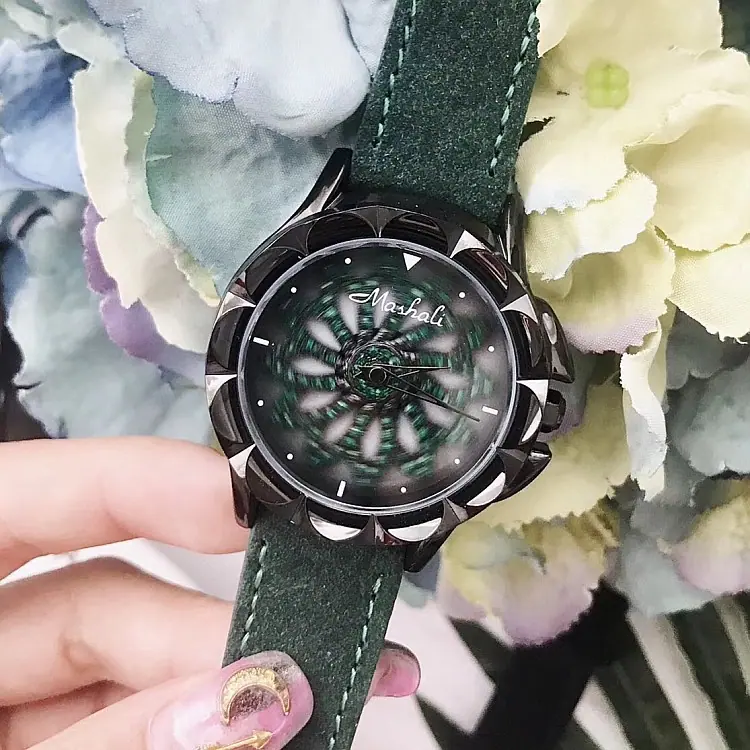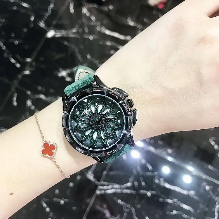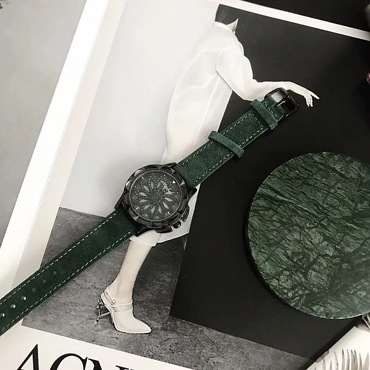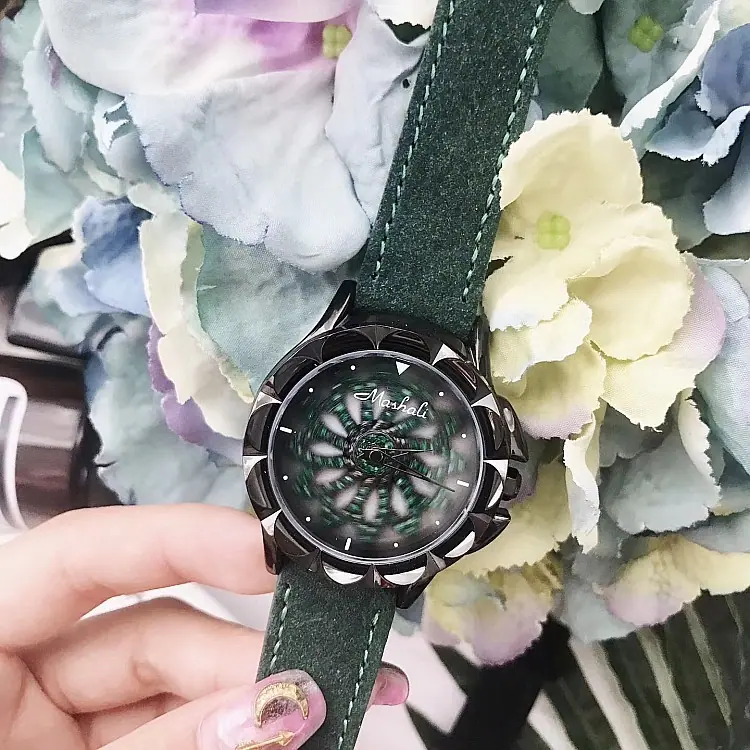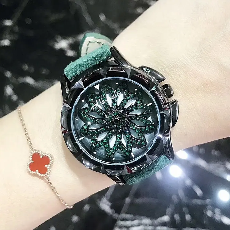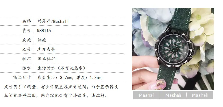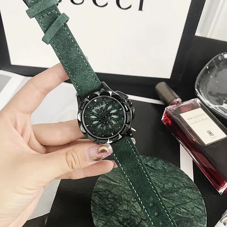 Introdução: Mashali, lança o modelo de chassi verde, com um chassi giratório, pulseira de camurça genuína, uma combinação indubitavelmente elegante, folheação IPG a vácuo, movimento importado do Japão, boa qualidade.