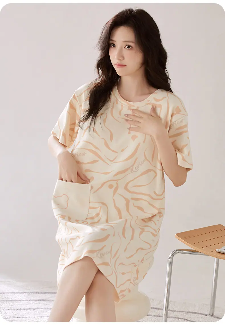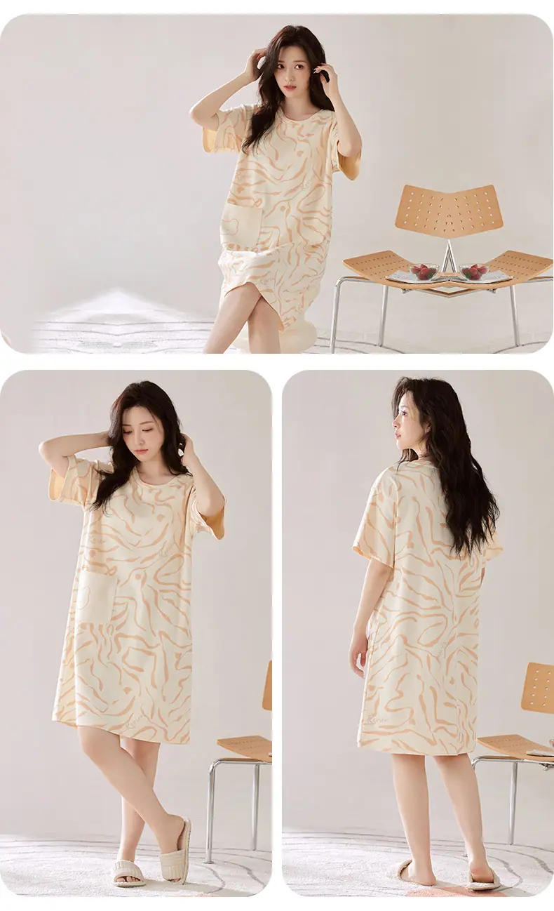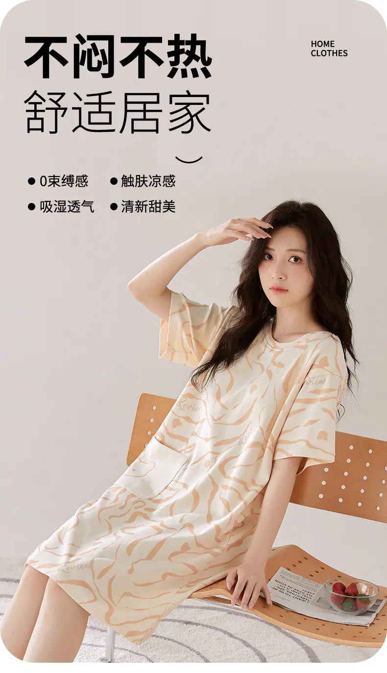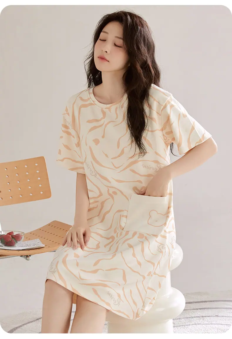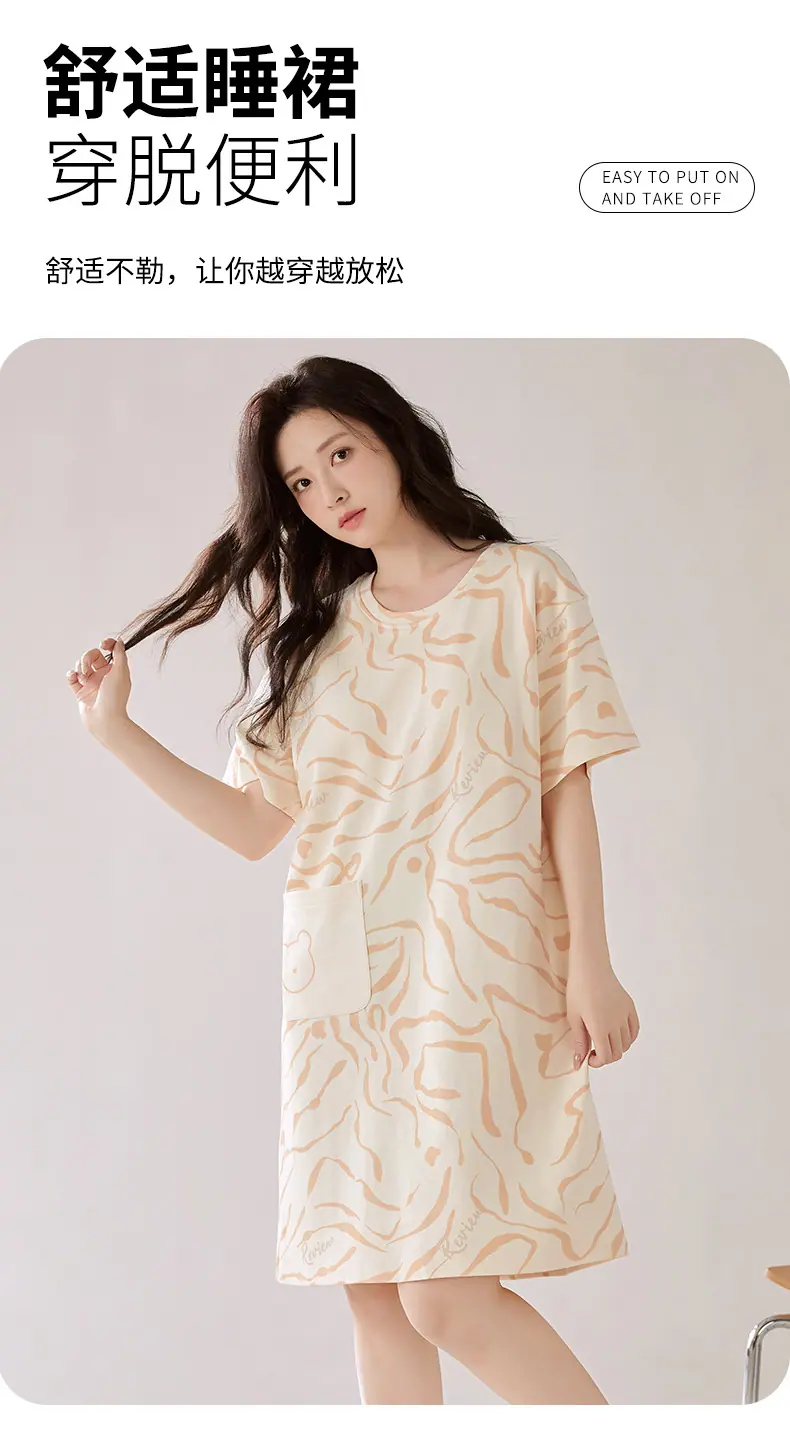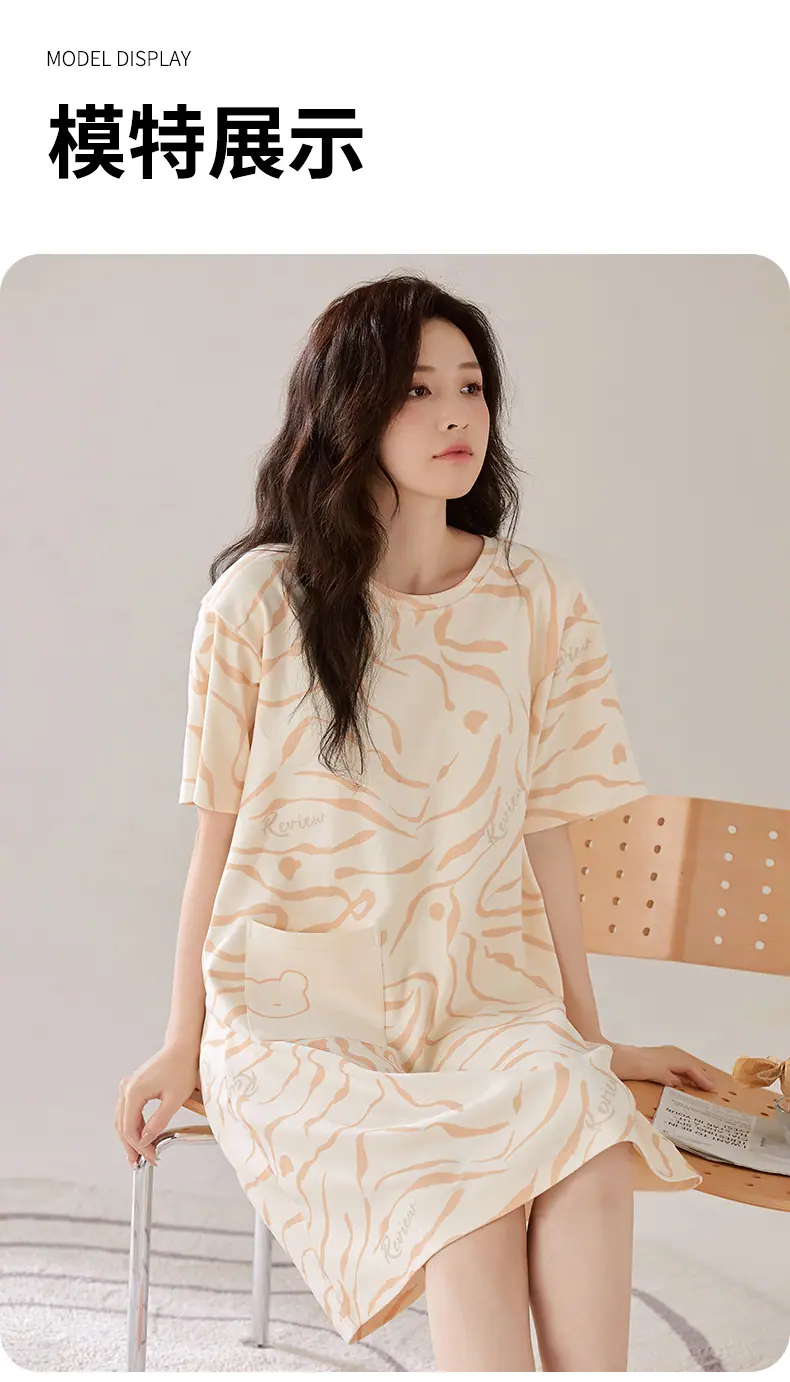 Compre Camisola de Algodão Puro Feminina Manga Curta com Bojo Doce Roupa de Dormir Verão Fina Feminina Comprimento Médio Saia Doméstica Pijama Amigável à Pele no atacado no Joom.pro