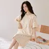 Camisola de Algodão Puro Feminina Manga Curta com Bojo Doce Roupa de Dormir Verão Fina Feminina Comprimento Médio Saia Doméstica Pijama Amigável à Pele