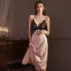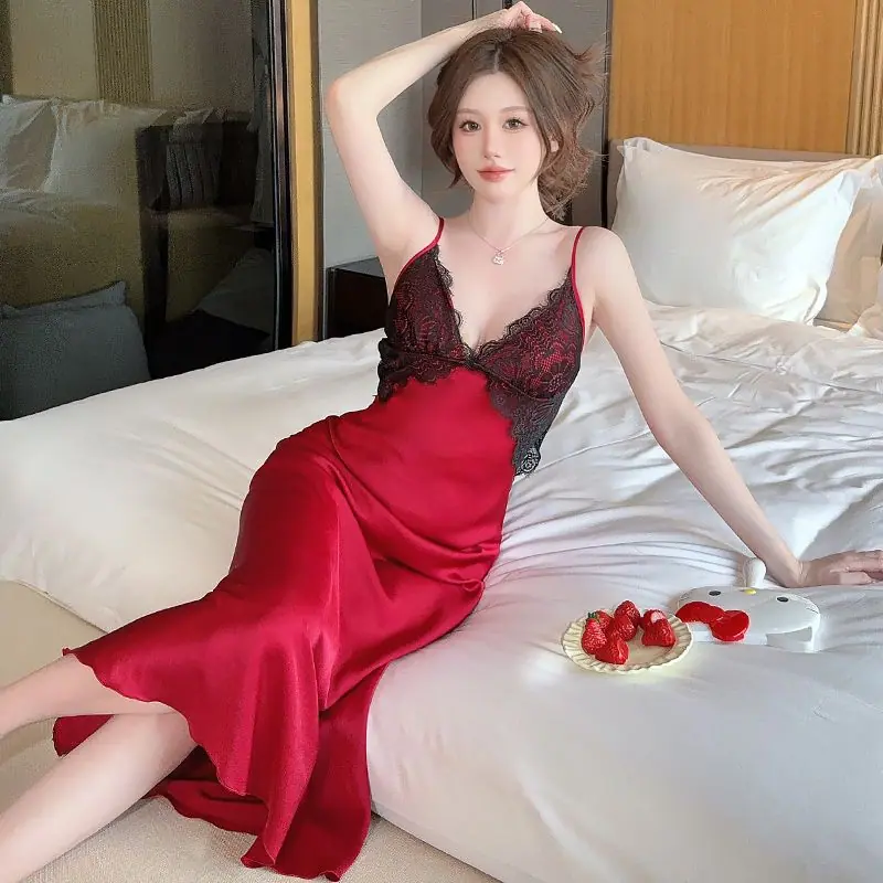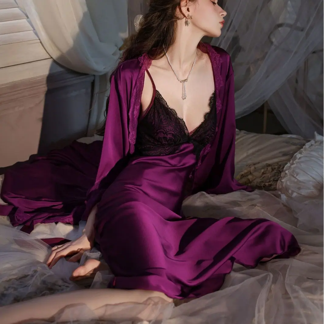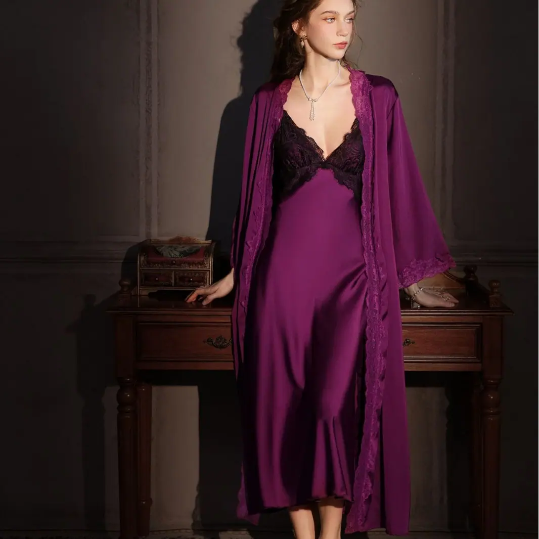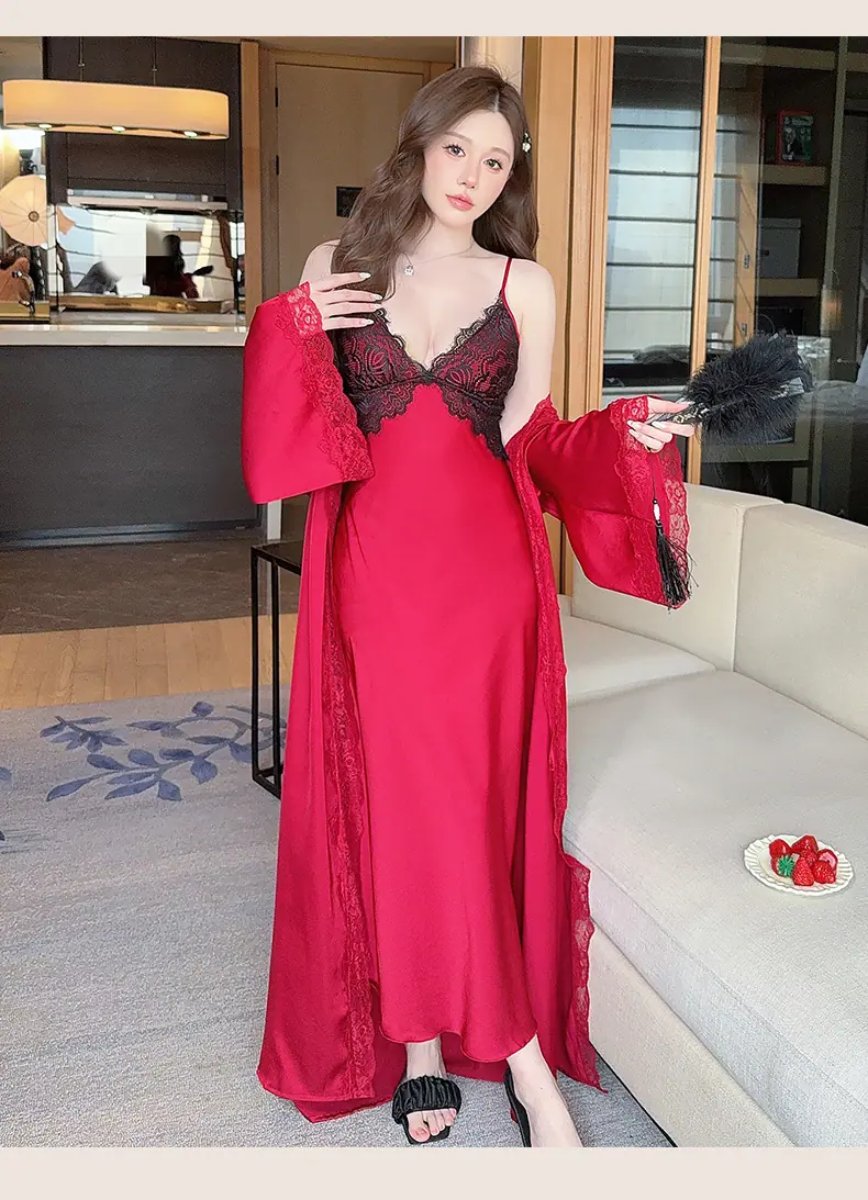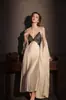 Tecido: Cetim de seda, com bojos (removíveis) Conjunto de duas peças: Camisola de noite + Robe externo Tamanhos: M-L-XL M (80-100 libras) L (100-115 gatos) XL (115-135 libras)