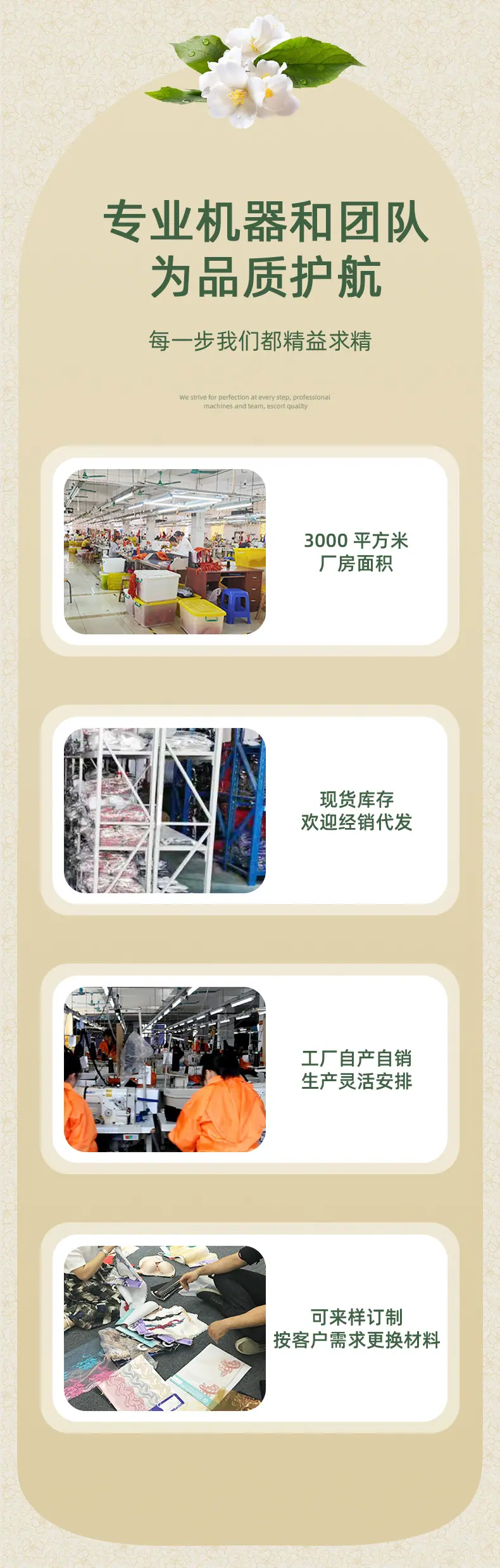Foshan Aimi Garments Co., Ltd. integra desenvolvimento, design, produção, armazenamento e vendas, e pode fornecer serviços de personalização de modelagem baseados em amostras e desenhos. Com uma planta de produção de 1100 metros quadrados, uma equipe profissional de desenvolvimento e design de 5 pessoas e 3 modelistas, a fábrica Zhimei Garments possui um sistema de gestão de qualidade completo e científico. A integridade, força e qualidade do produto da Foshan Aimi Garments Co., Ltd. são reconhecidas pela indústria. Amigos de todas as esferas da vida são bem-vindos para visitar, orientar e discutir negócios.。