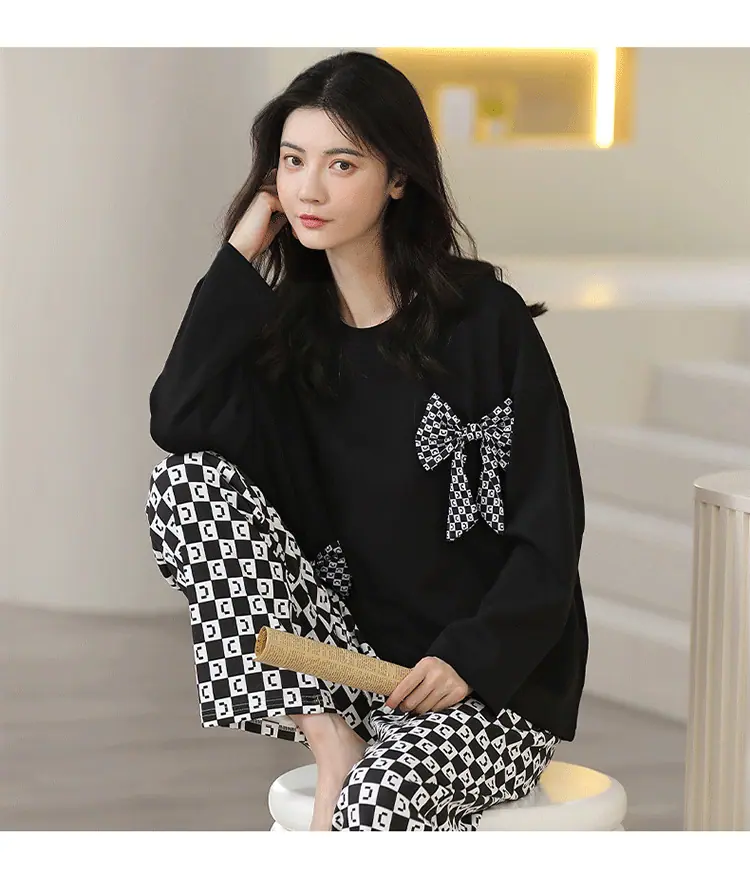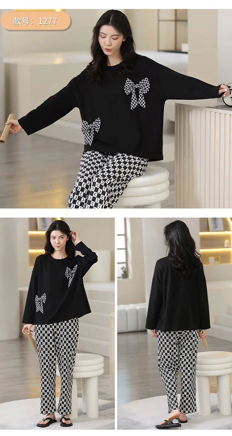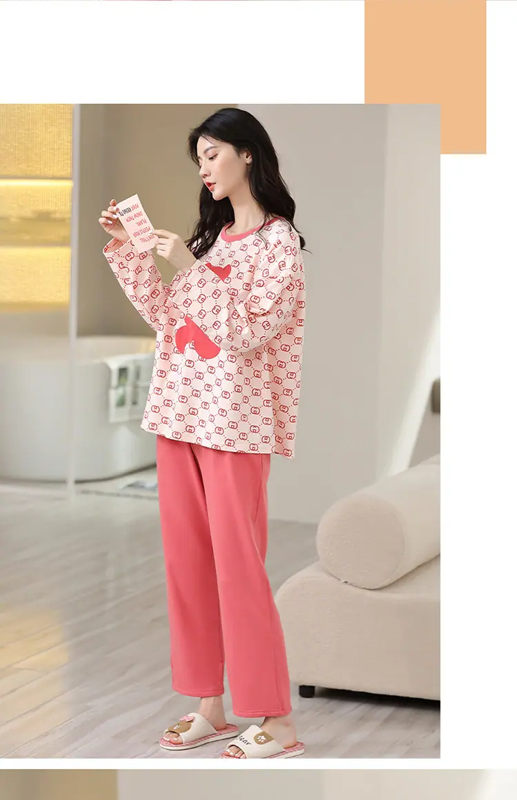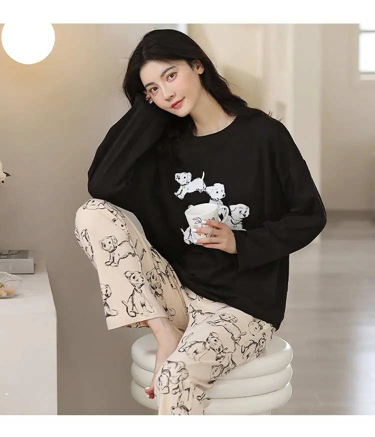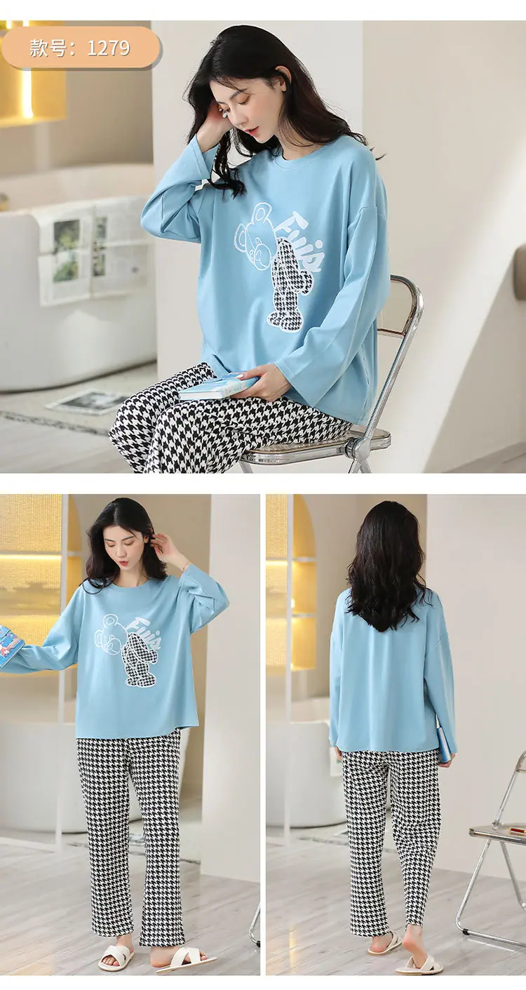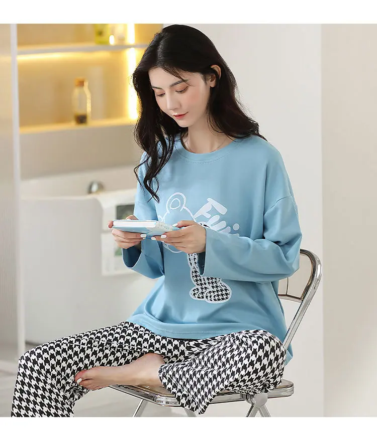 Compre Pijama Urso Desenho Animado Feminina Manga Longa Algodão Roupa de Exterior Pulôver Gola Redonda Feminino Algodão Casual Roupa de Casa terno no atacado no Joom.pro